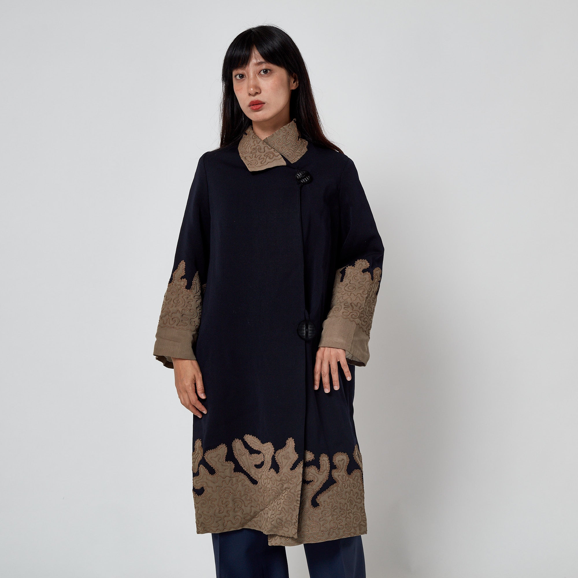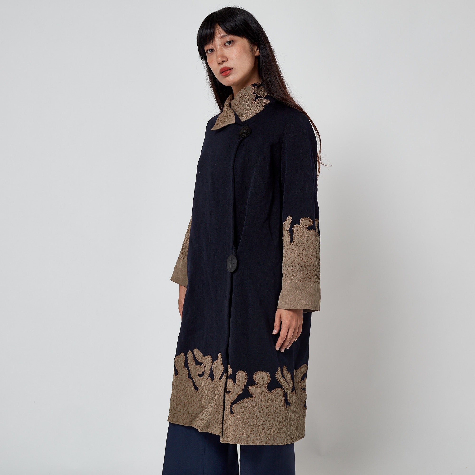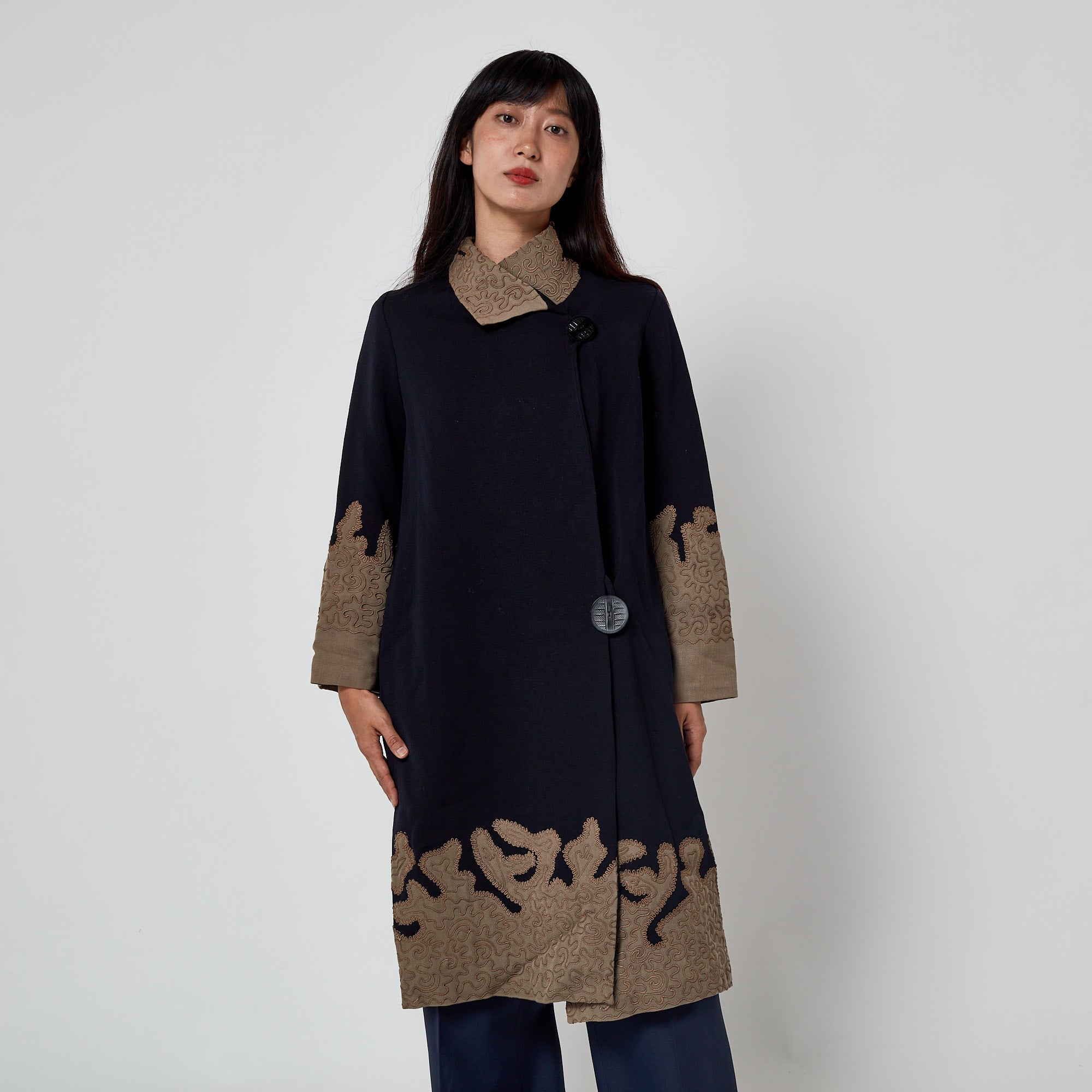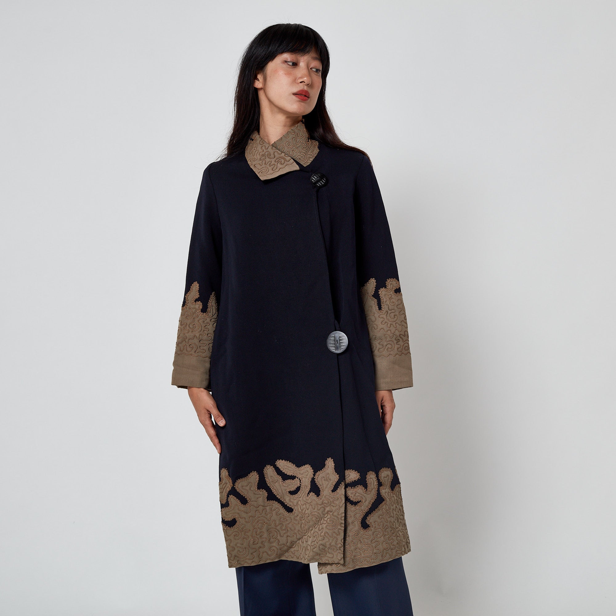 1920s Navy and Khaki Flapper Coat with Soutache Work