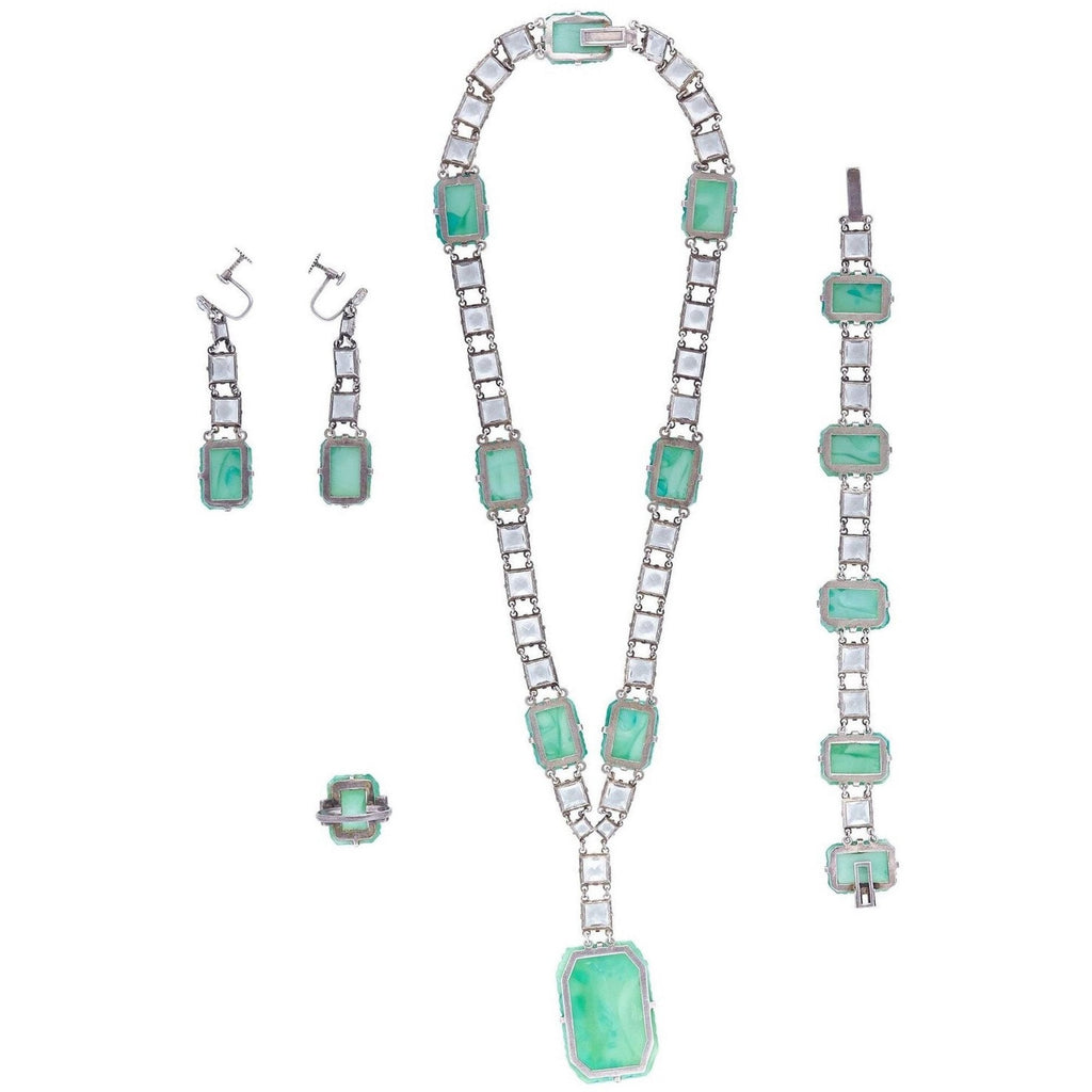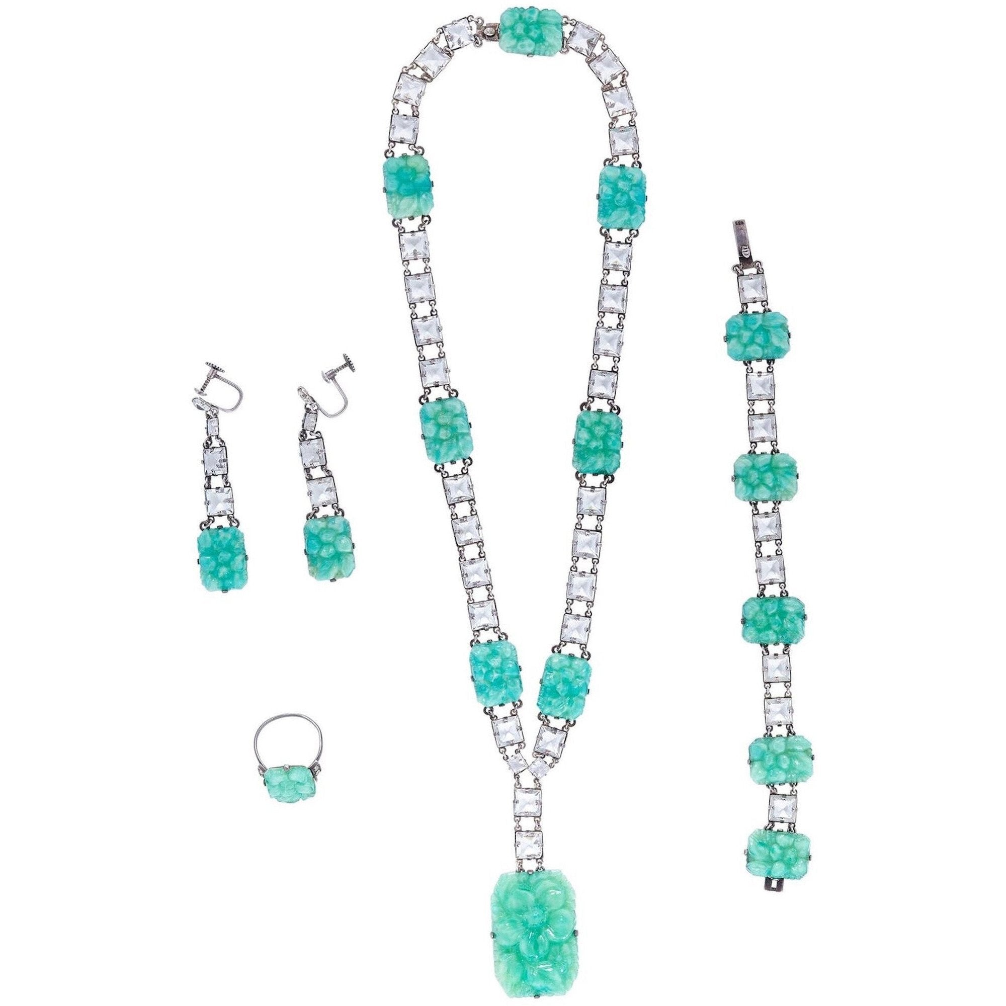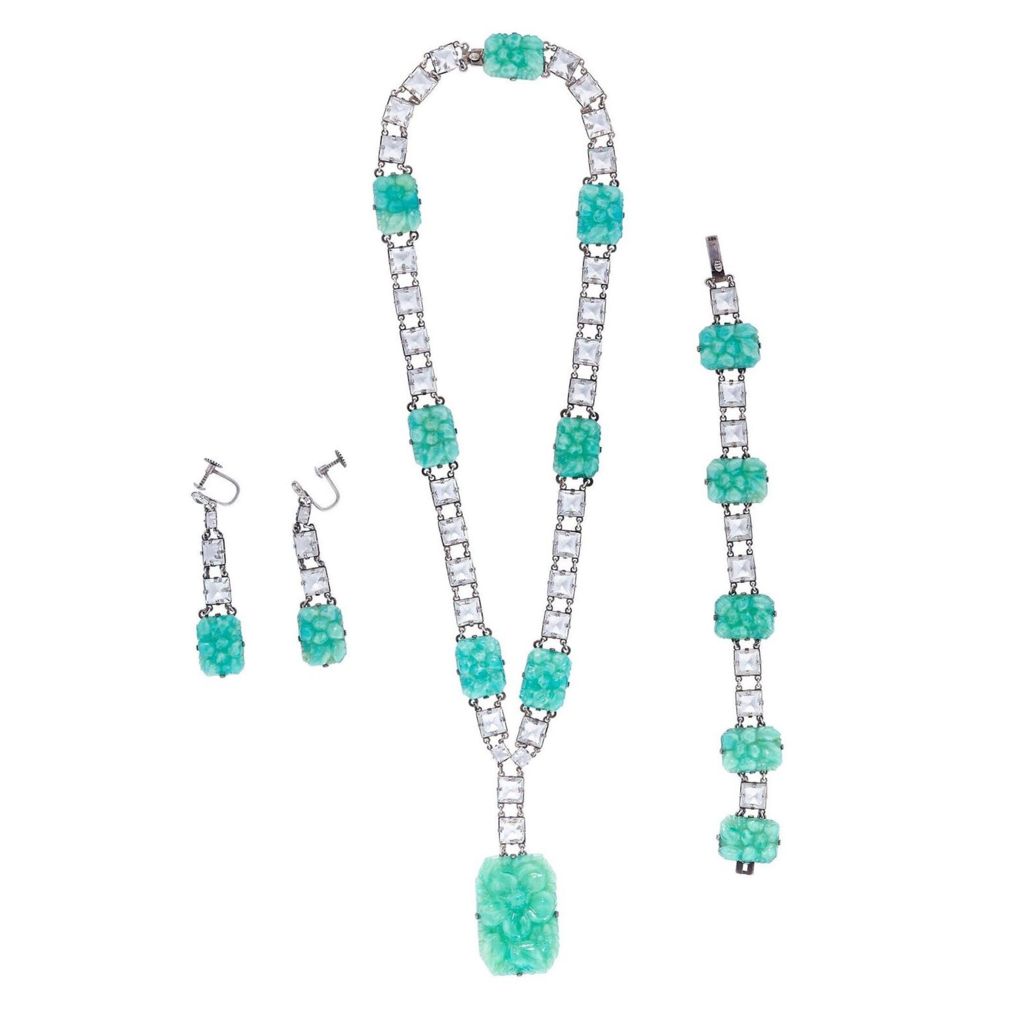 1930s Silver & Peking Glass Art Deco 4 Piece Jewellery Set With Rock Crystals