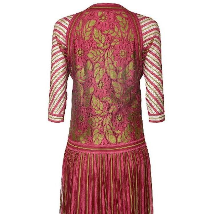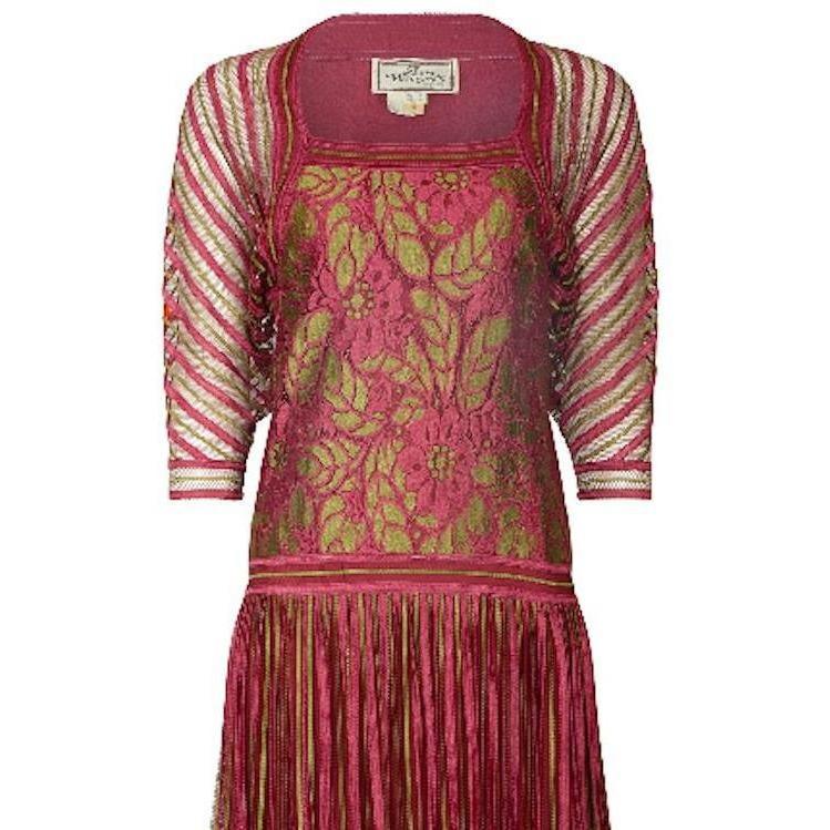 1970s Janice Wainwright Pink and Gold 1920s Style Flapper Dress