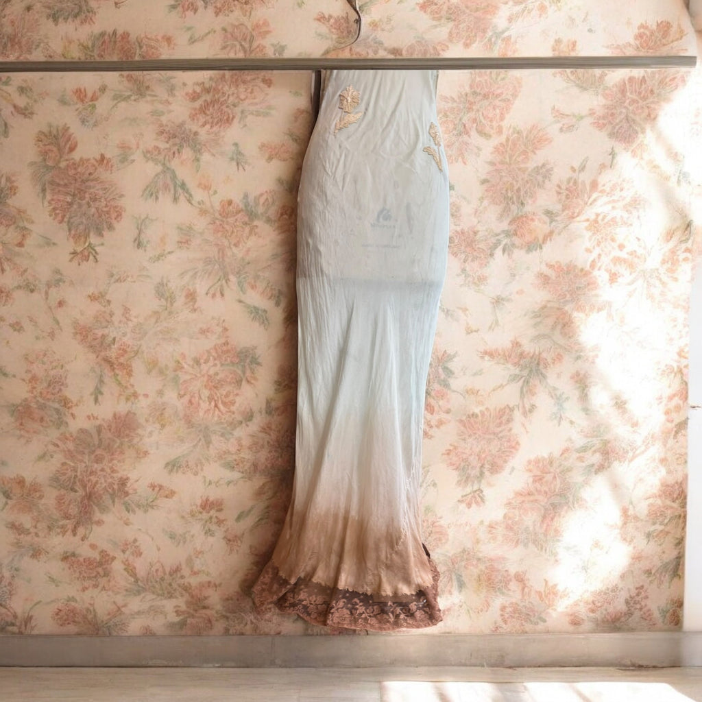 Flora, 20s silk and lace bias cut dress hand dyed in ombré