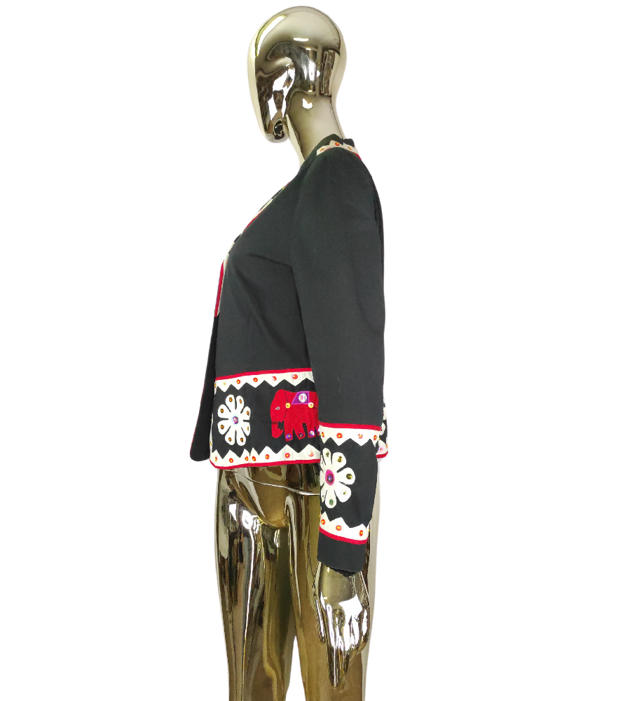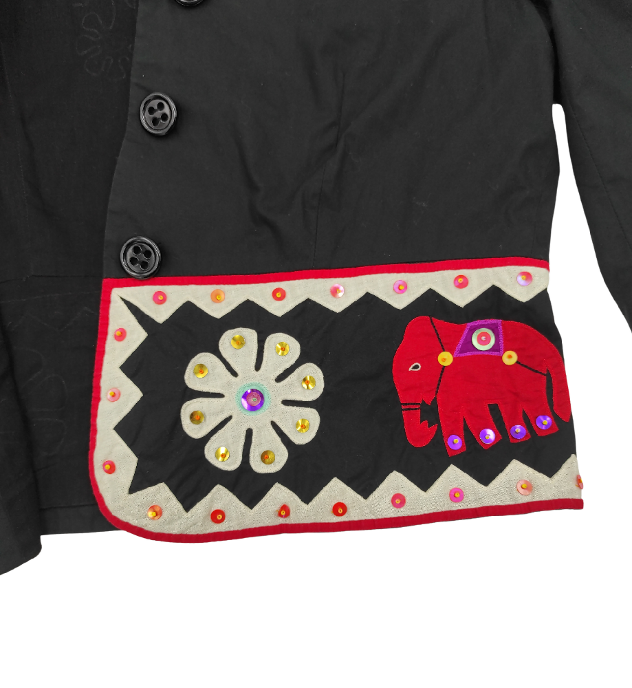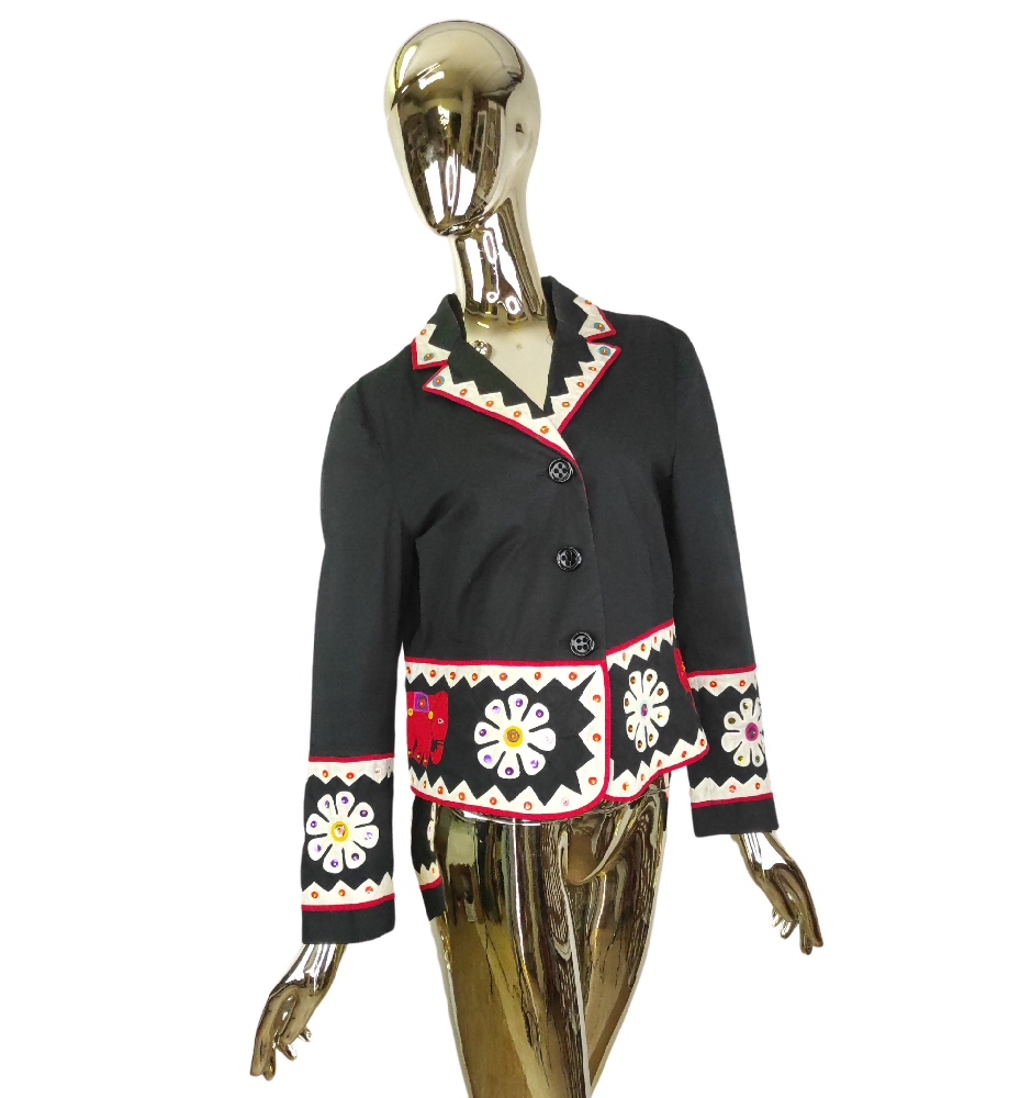 MOSCHINO CHEAP AND CHIC SNOWFLAKE AND ELEPHANT DECOR BLACK BLAZER