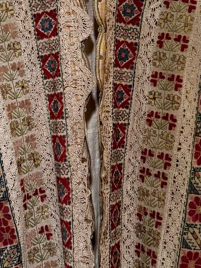 Talia, reworked 20s Greek needlepoint and Edwardian beaded appliqué