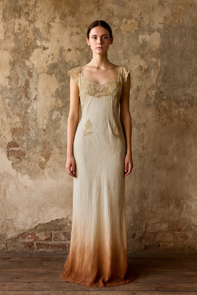 Flora, 20s silk and lace bias cut dress hand dyed in ombré