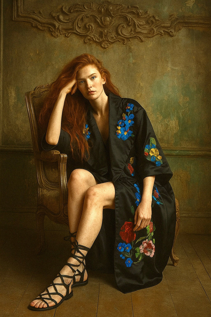 Arianna, 20s silk and lace buttoned long sleeve coat