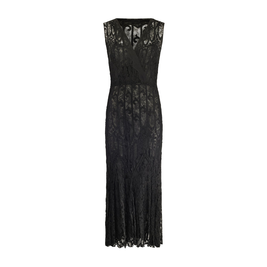 1930s Black Lace Sleeveless Dress with Wrap Over Neckline