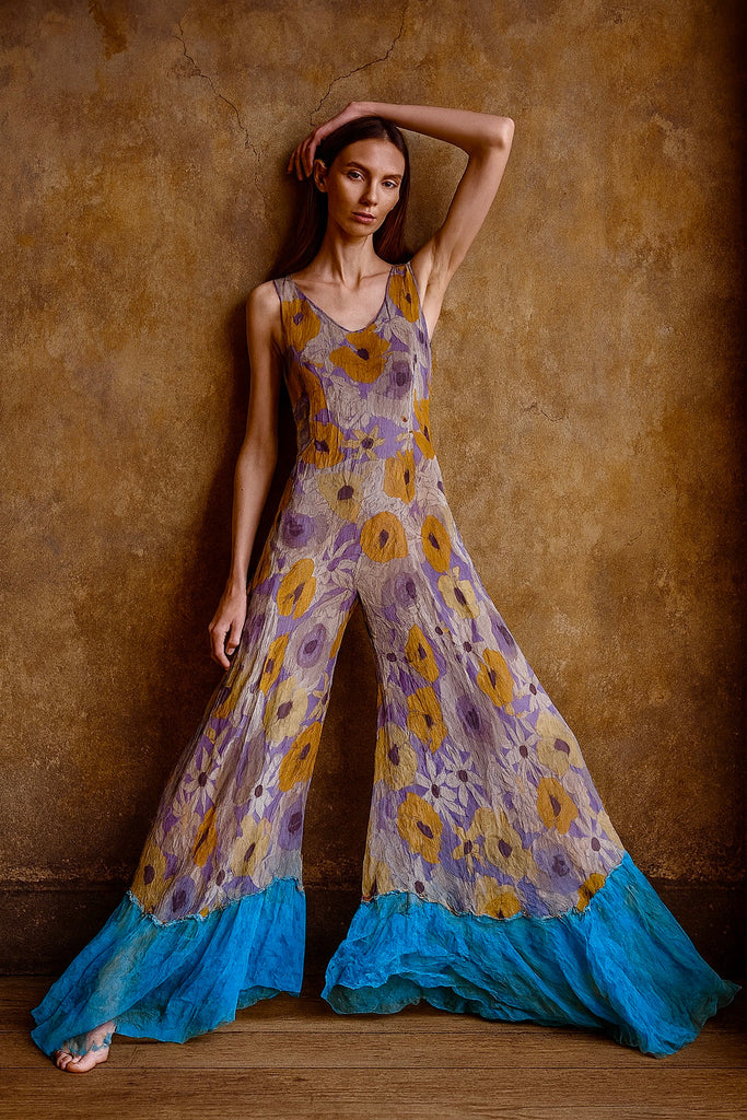 Sonia, reworked 30s silk floral flaired jumpsuit