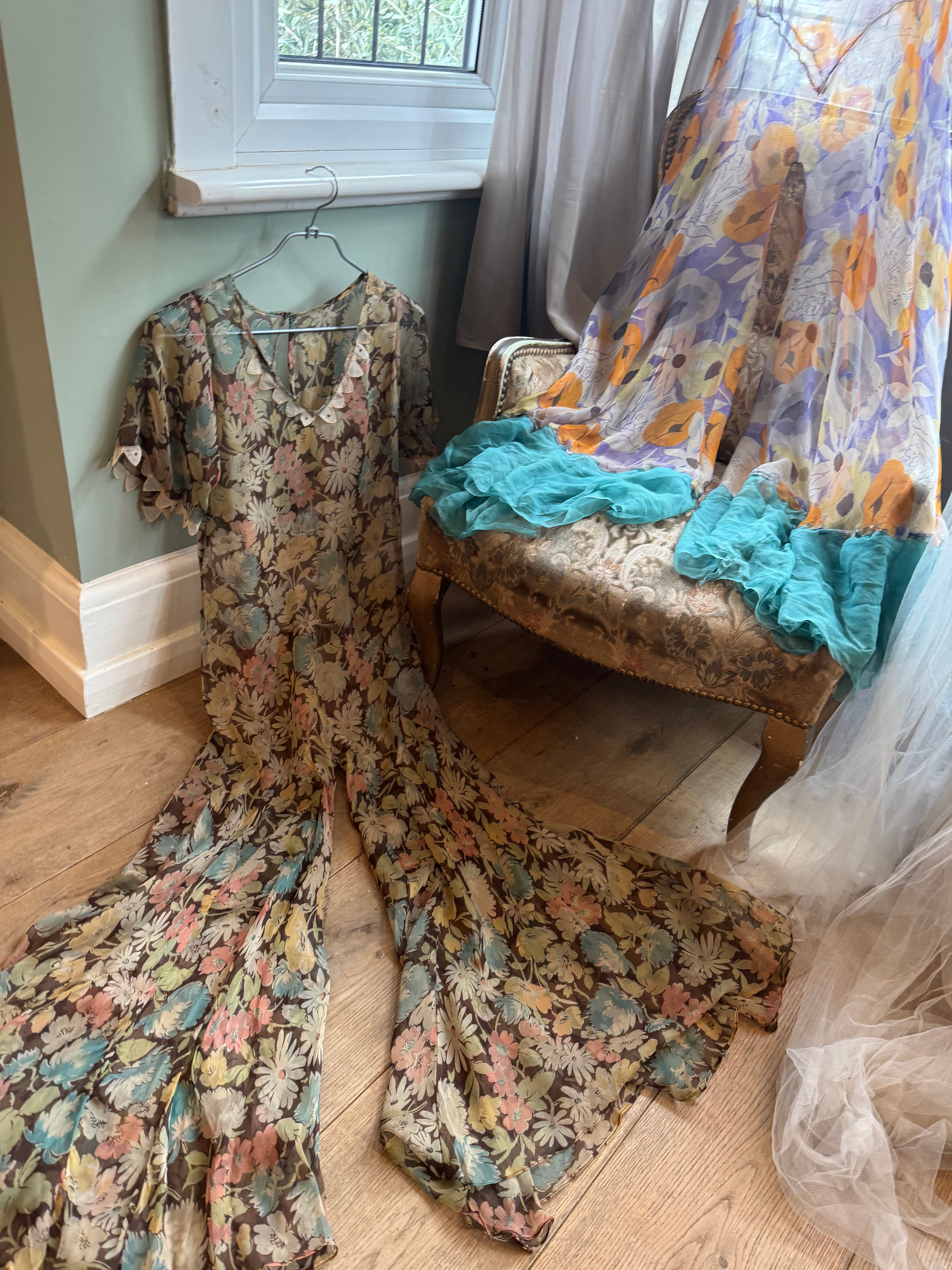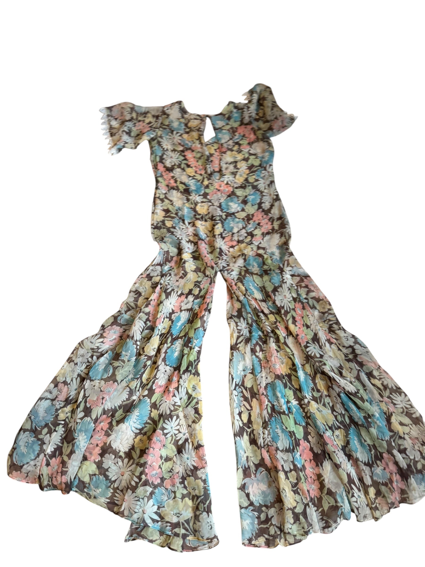 Georgie, reworked 30s floral chiffon flair jumpsuit