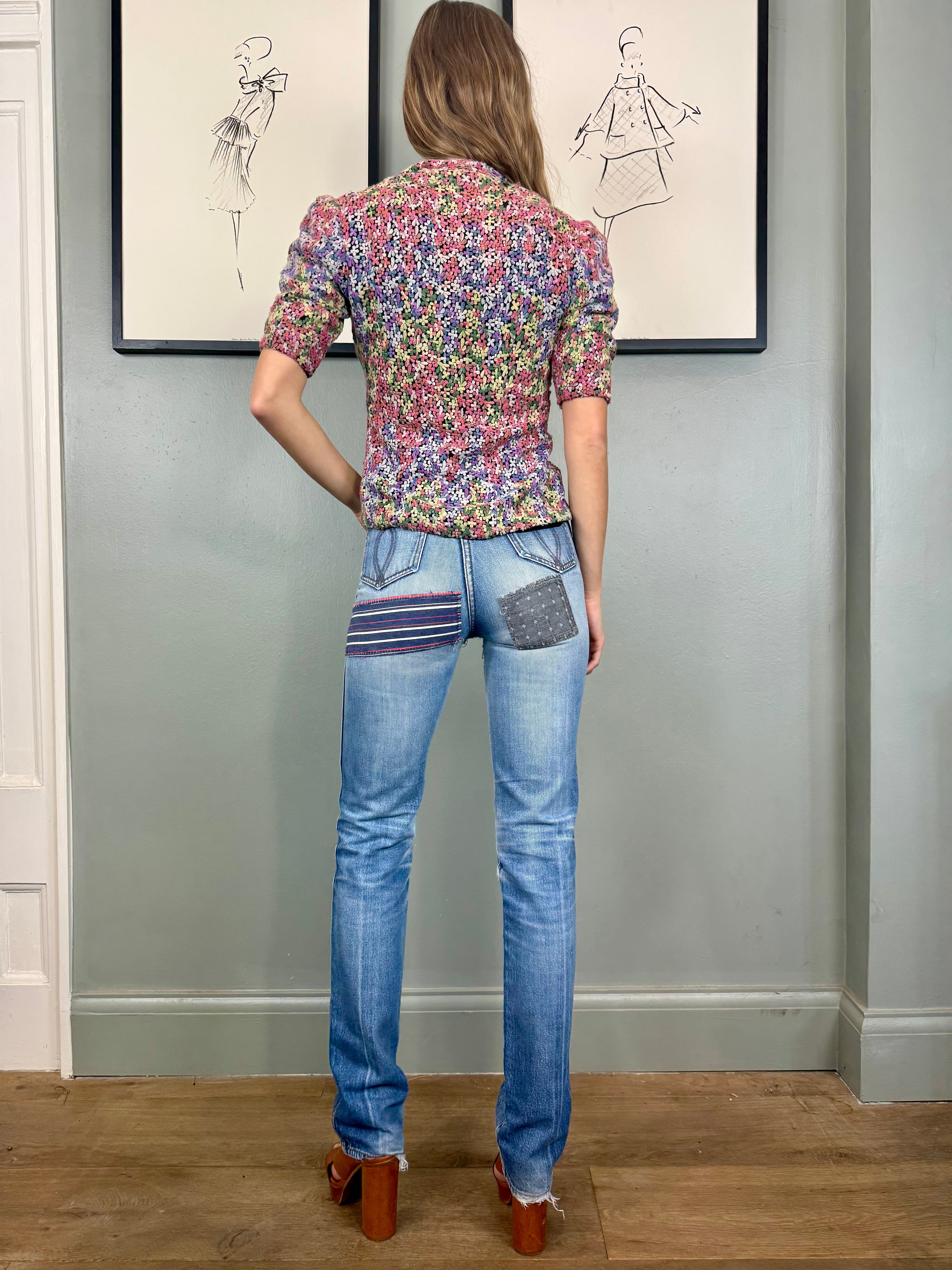Expertly crafted and designed, this 30s floral embroidered jacket boasts a single breasted style with lapels and a fitted silhouette. Its pretty and unique 30s design features dense and gorgeous small floral embroidery in an ombré pattern, making it a lovely and eye-catching addition to any wardrobe. Has brass etched buttons and is lined in black silk.