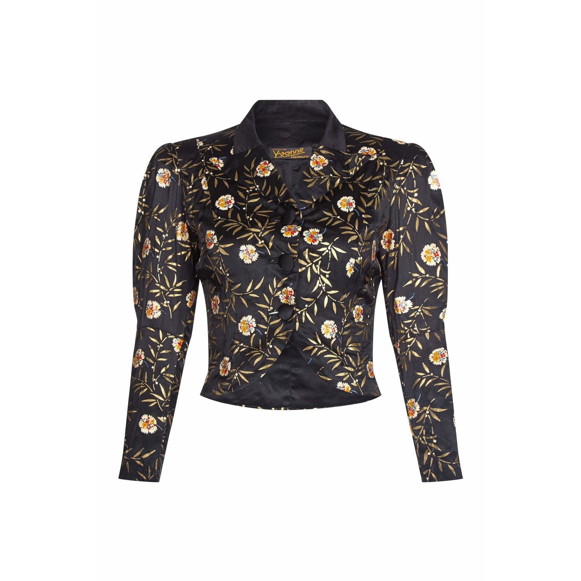 Yvonne of Cherbourg 1930s Black Hand Painted Silk Cropped Jacket