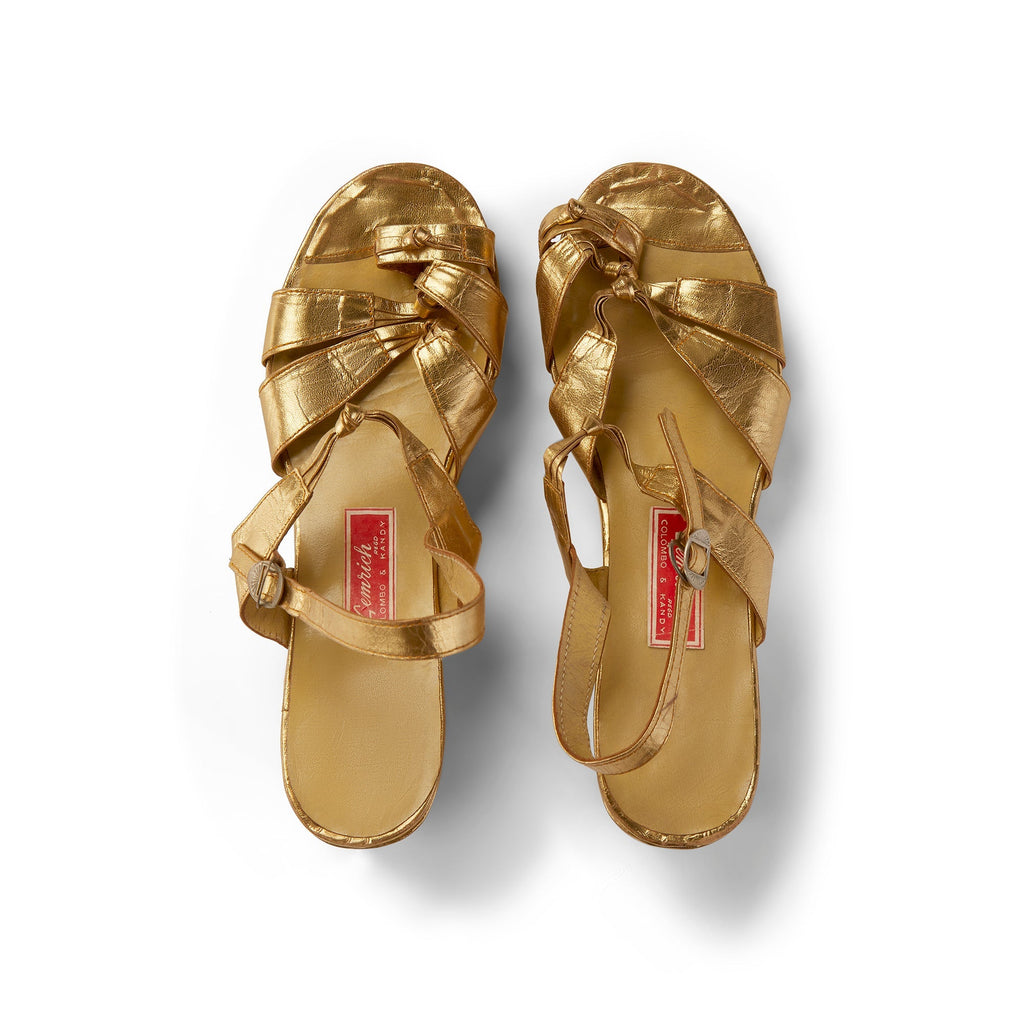 These highly wearable shoes are labelled with the words “Gemrich - Colombo & Kandy” in white font on a red label. They are in very good to excellent vintage condition with only very minor wear noted in keeping with their grand old age. There is virtually no loss to the gold leather and they look like they have never been worn outside. These are around a UK size 4 to 4.5, EU 37 to 37.5 or US 6 to 6.5.