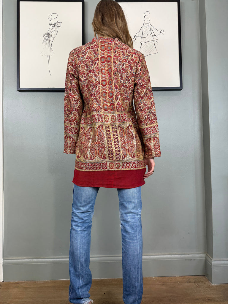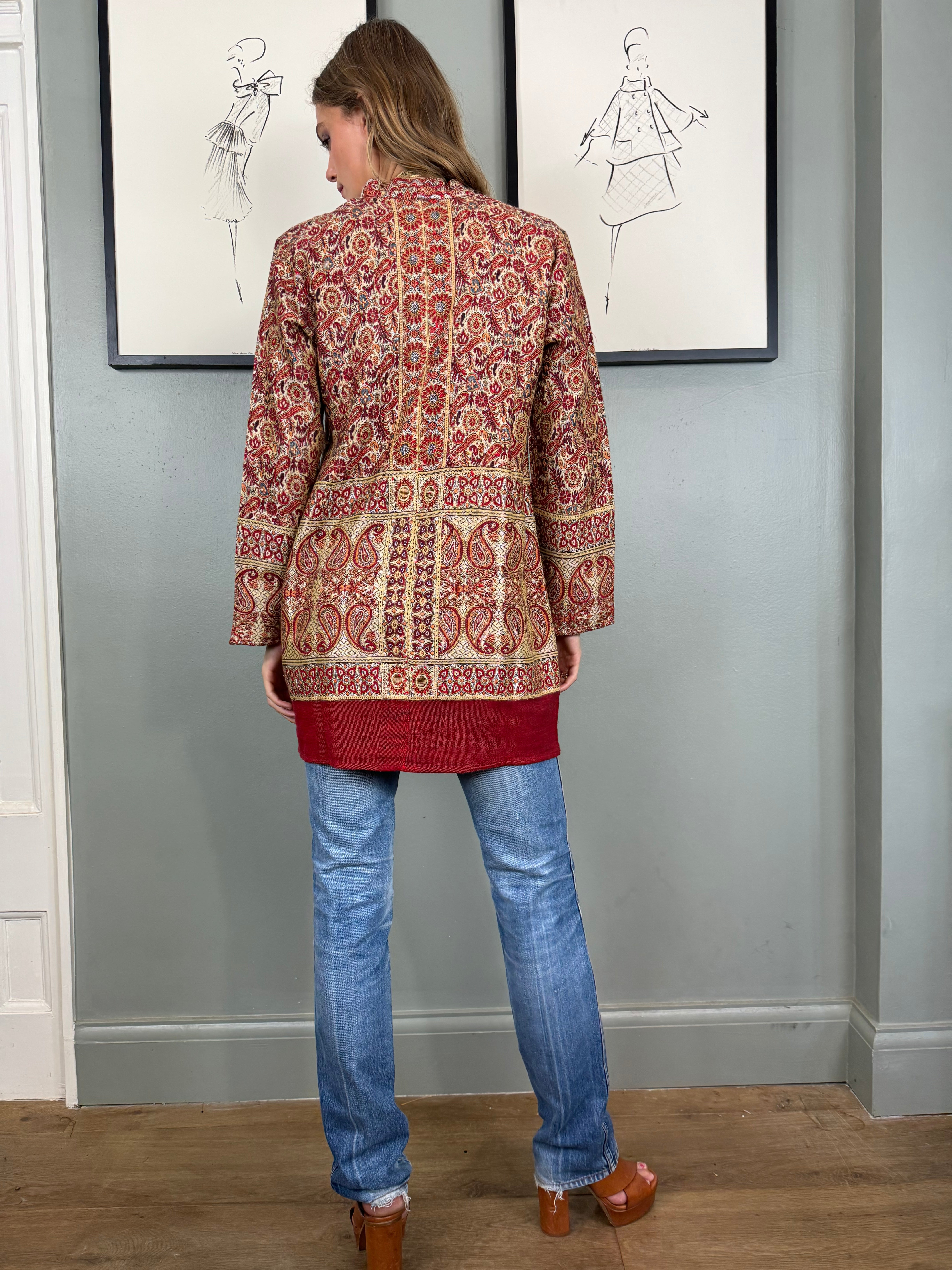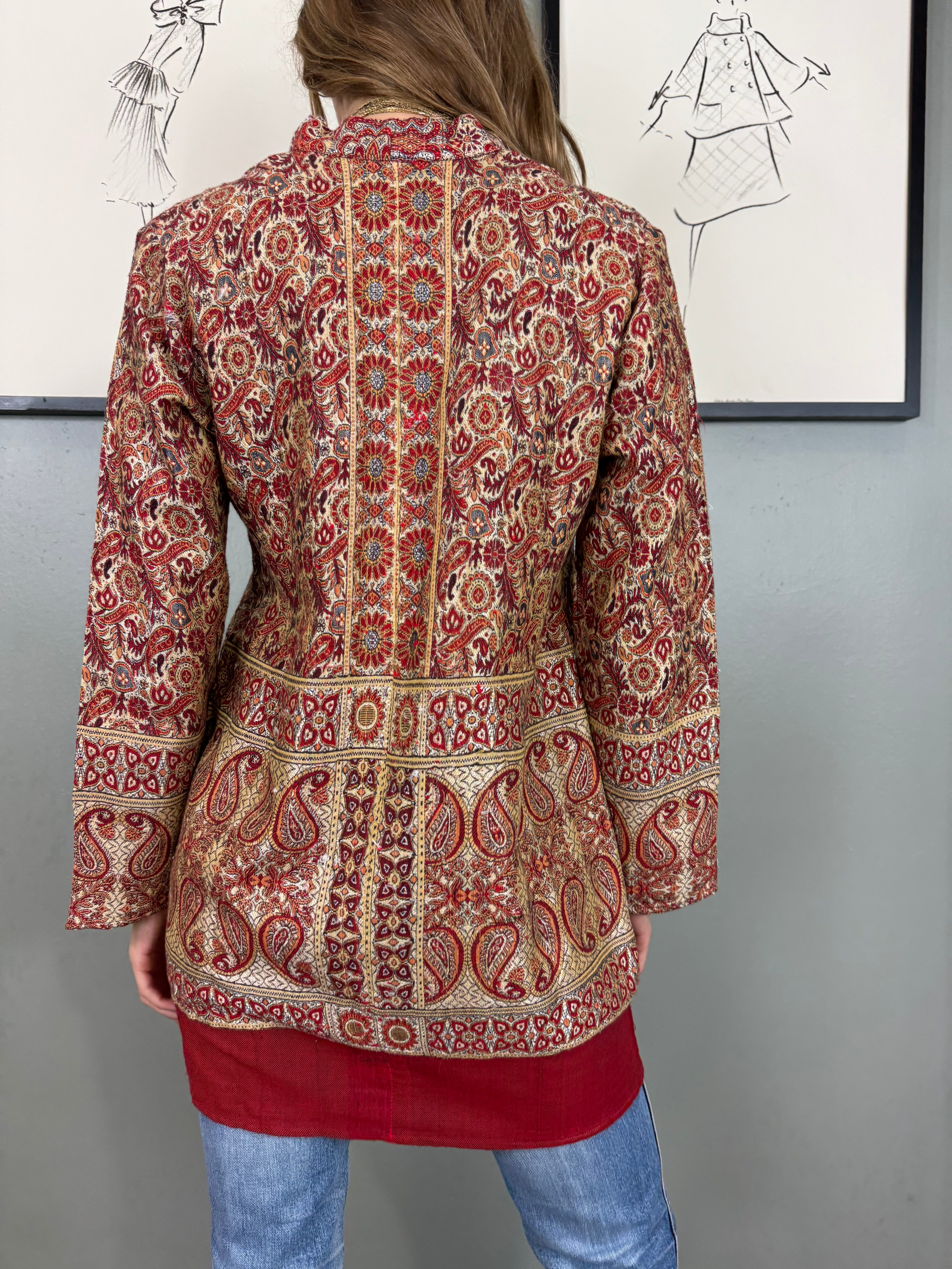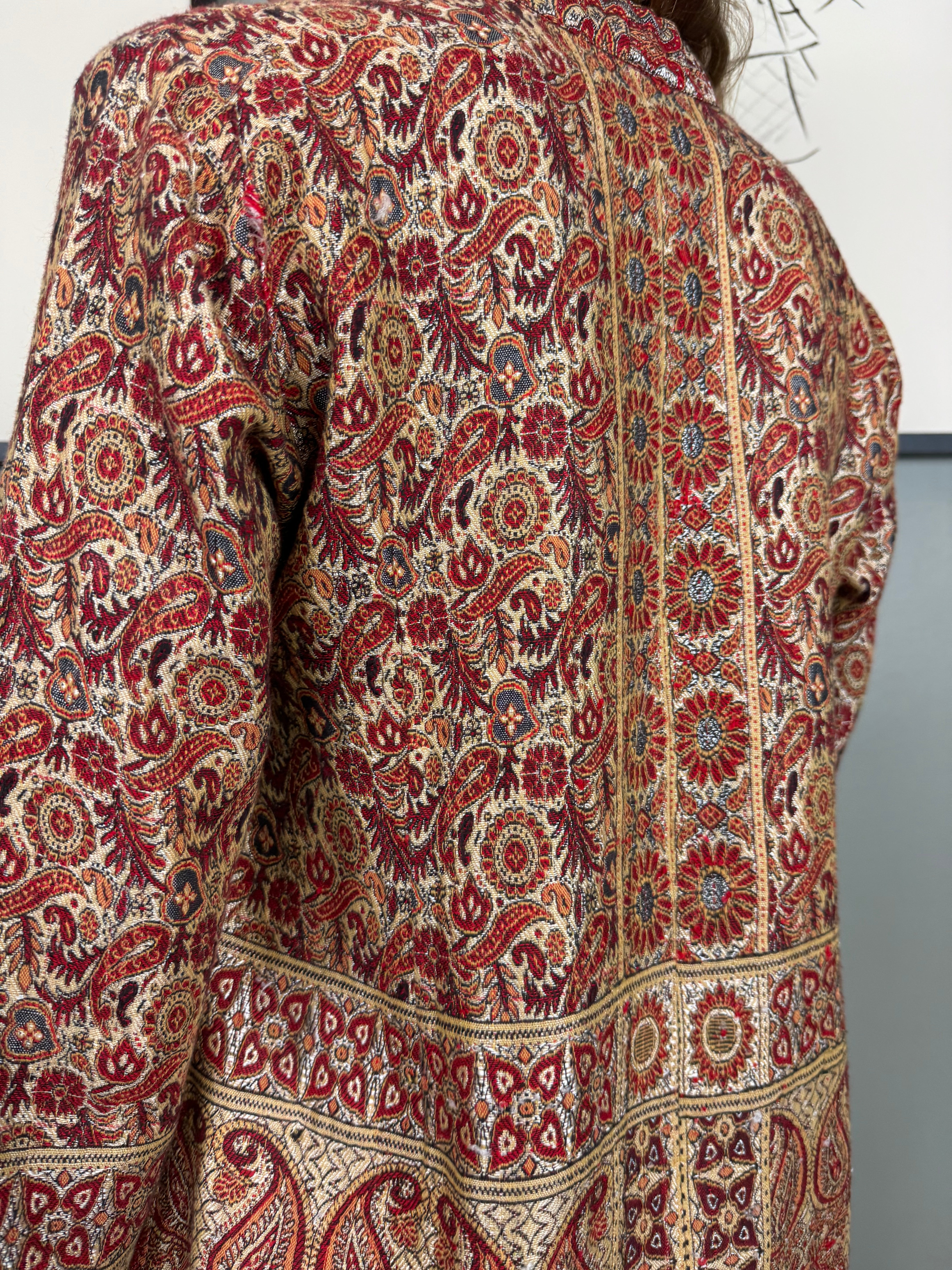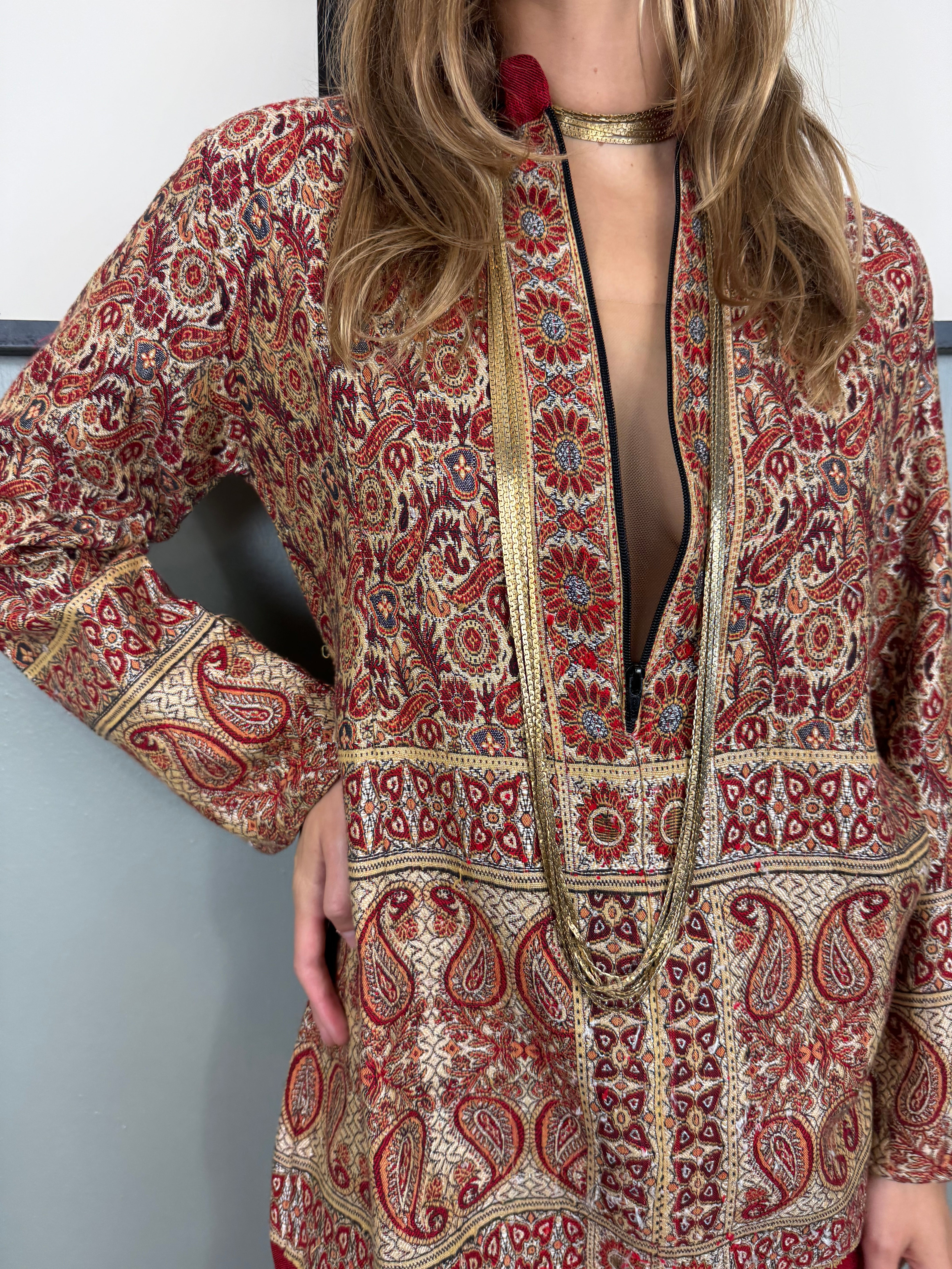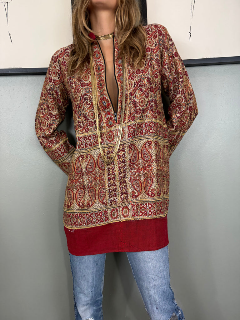 Expertly crafted with a fine, soft wool blend, the Eros paisley tunic boasts a classic 40s floral print and a sleek front zip. With long sleeves and a flattering straight fit, stay stylish while staying comfortably chic.