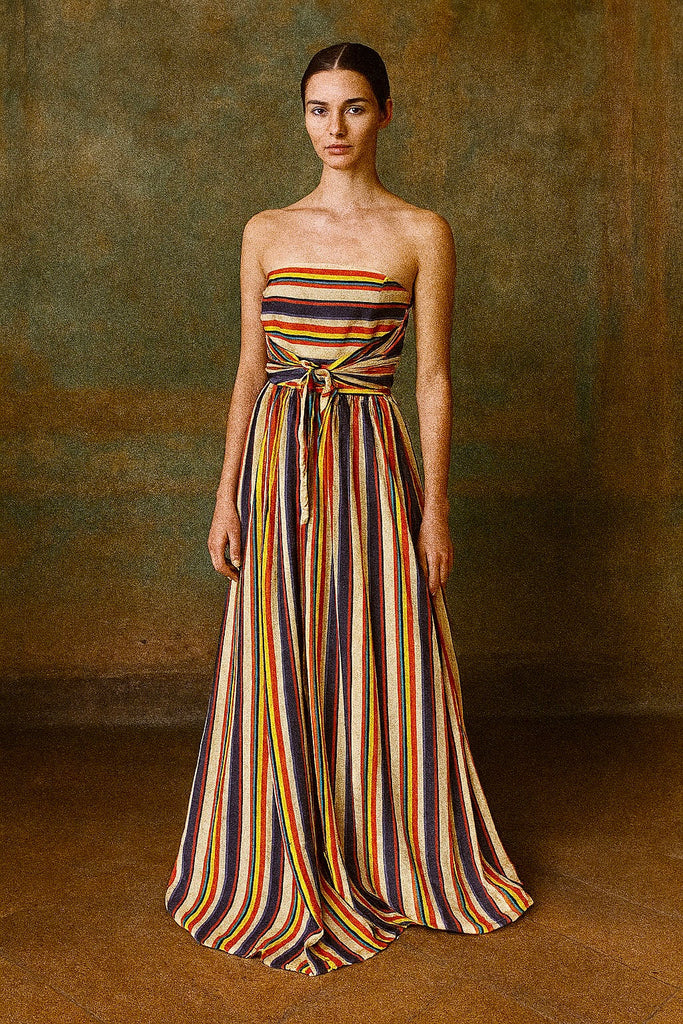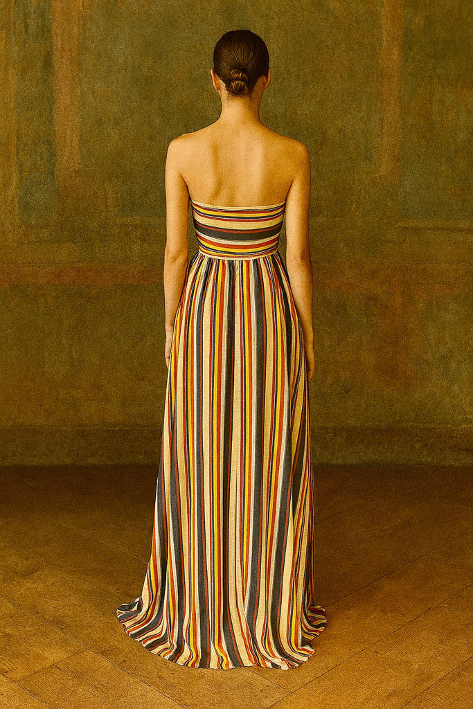 Tori, 40s striped silk long bustier dress