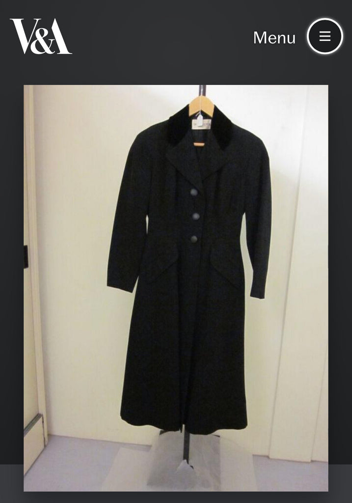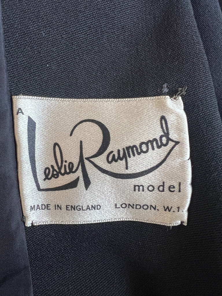 This 1950s structured wool riding coat was made by British ready to wear designer Leslie Raymond. It was retailed in the famous Harrogate department store, Cresta, a regional branch of Marshall and Snelgrove of London. The V&A has a very similar documented coat from this designer which retailed in another high-end department store of the day - Dickins and Jones.