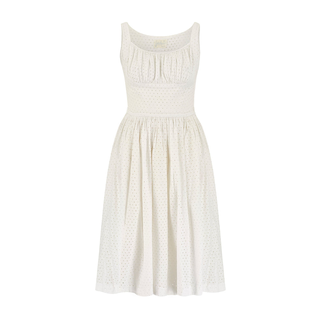 1950s Josselyne of Paris White Cotton Eyelet Dress