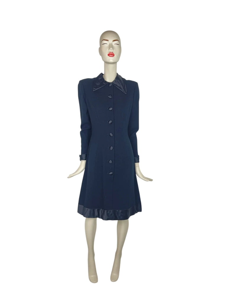 ✨ Vintage 1960s–70s Pauline Trigère Black Wool Dress with Satin Trim – Fits UK 8 ✨