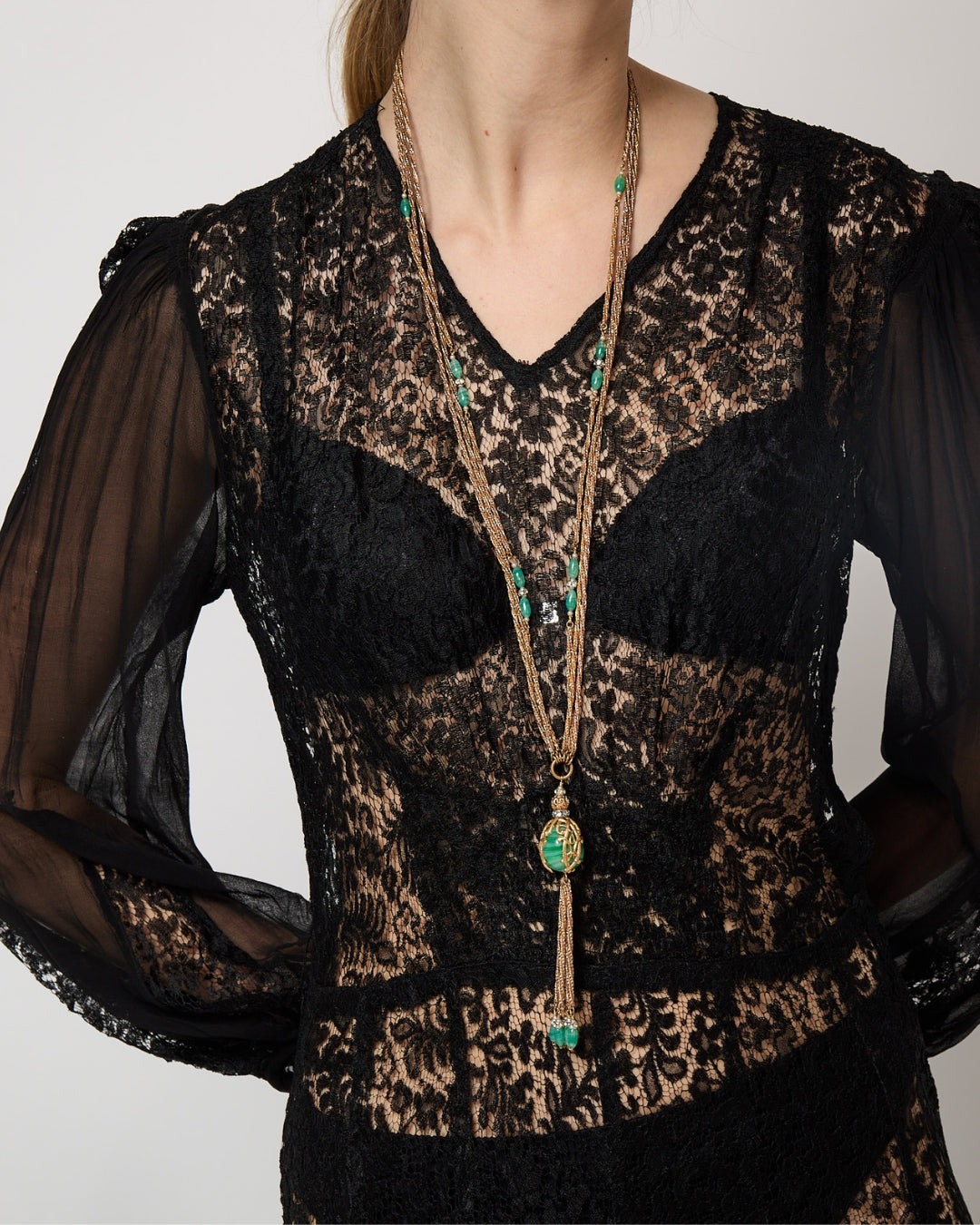 1960s French Couture Quadruple Chain Oriental Style Necklace