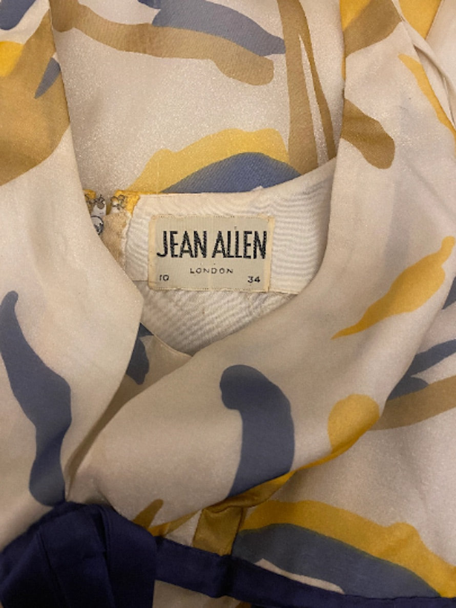 In really superb vintage condition with no faults of any note, this would make a fantastic dress for a summer wedding or soiree. Best fit for a UK 8-10 or US 4-6. Jean Allen was a high end British label manufacturing dresses to be sold in department stores from the 1950s through to the 1970s. Our model is a UK 6-8 and 5ft 4in (163cm) and this dress was a little roomy on her bust but otherwise fit her well.