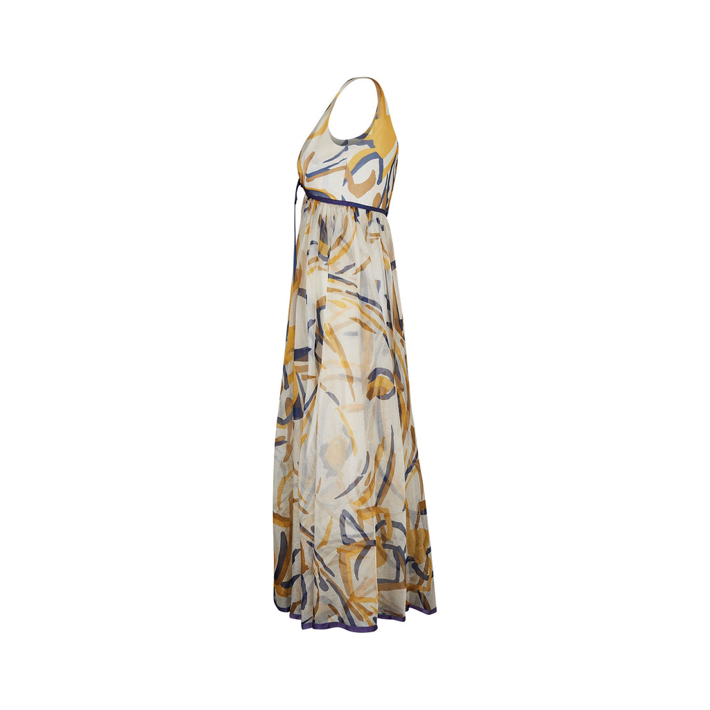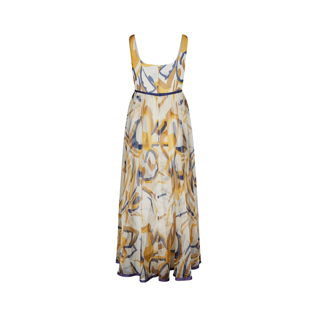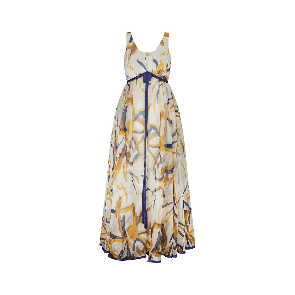 1960s Jean Allen Organza Abstract Maxi Print Dress