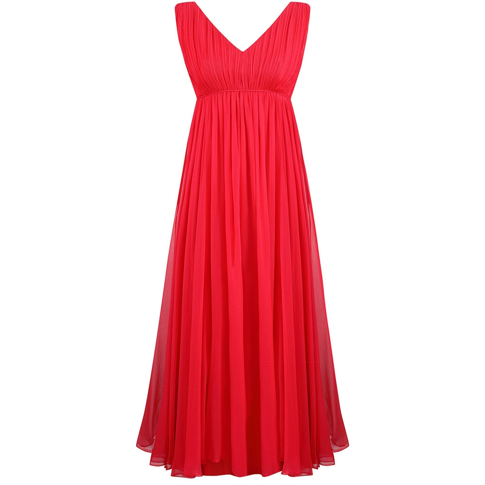 This vivacious 1960s red silk chiffon empire line dress is by American designer Levino Verna and is in beautiful vintage condition with a vibrant, contemporary feel. This piece has wonderful simplicity and has no embellishment bar a piped seam at the waistband. There is a finely pleated chiffon overlay in bright crimson with a shallow V neckline both at the front and reverse and a full ankle length skirt cascading from the empire waistline. The nature of the fabric creates a beautiful fluidity of movement when worn, making this piece a marvellous choice for dancing. The dress is lined in silk crepe and a thick layer of cotton blend fabric. There is a zip fastening at the centre reverse with a hook eye fastening to secure. Would best fit up to US size 6, UK size 10.