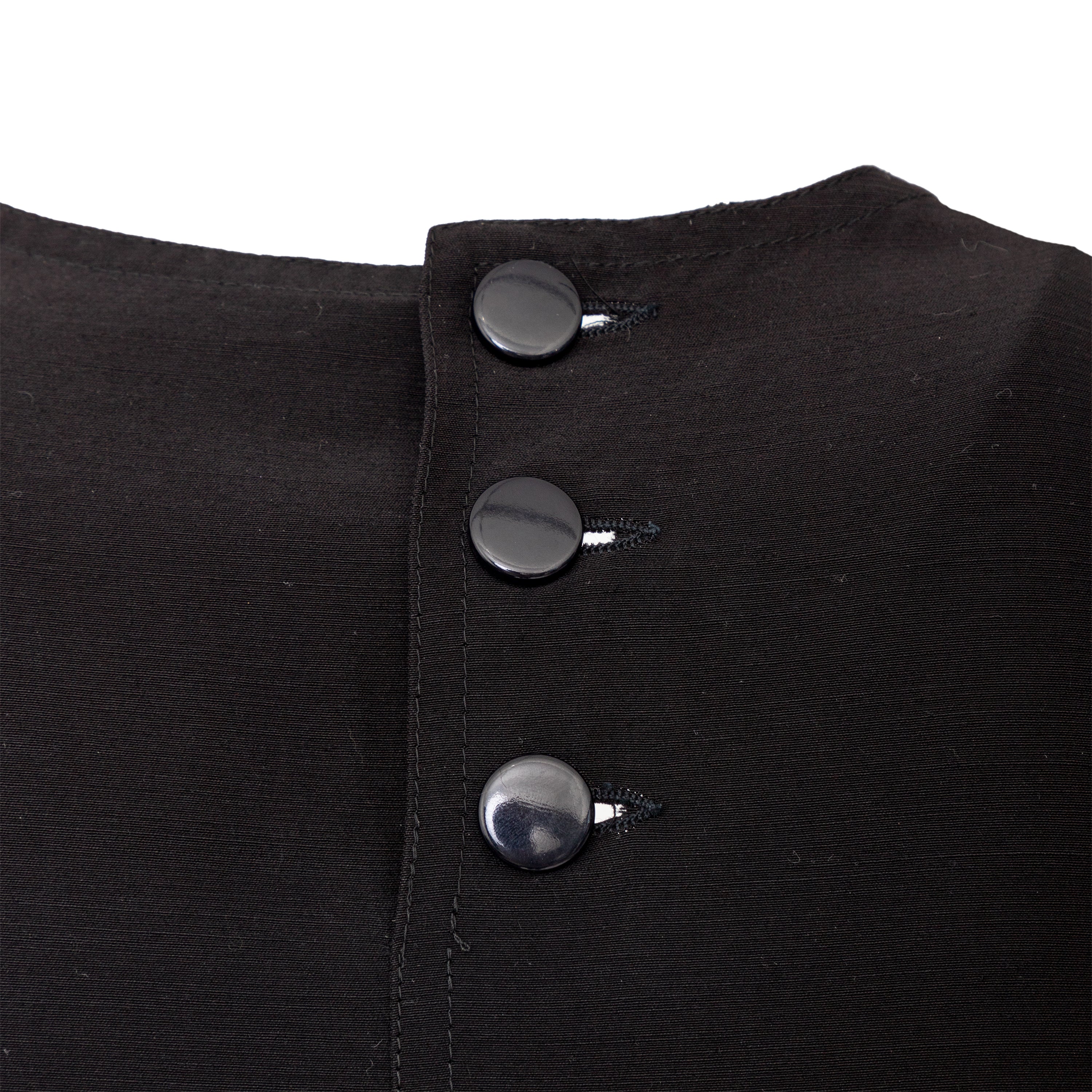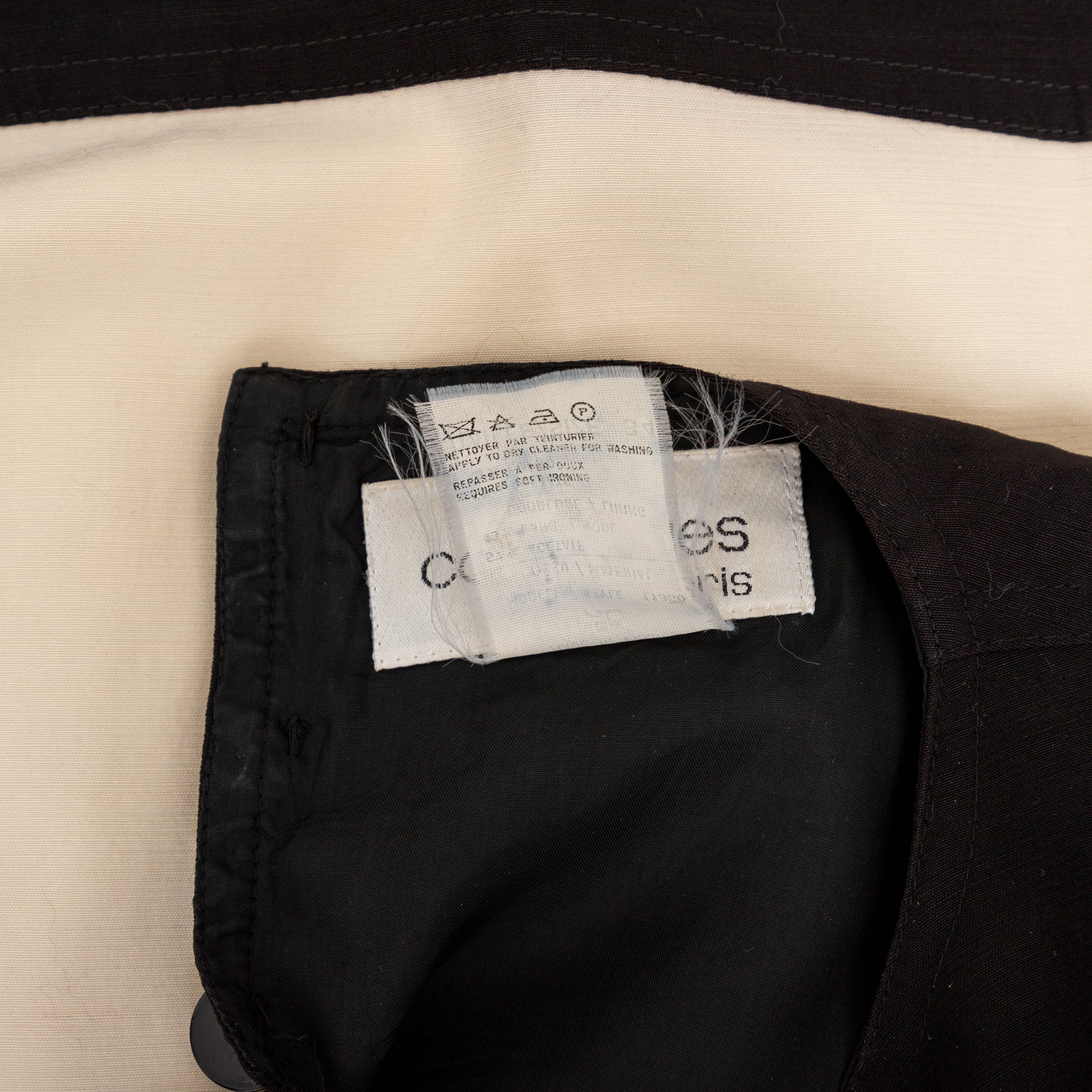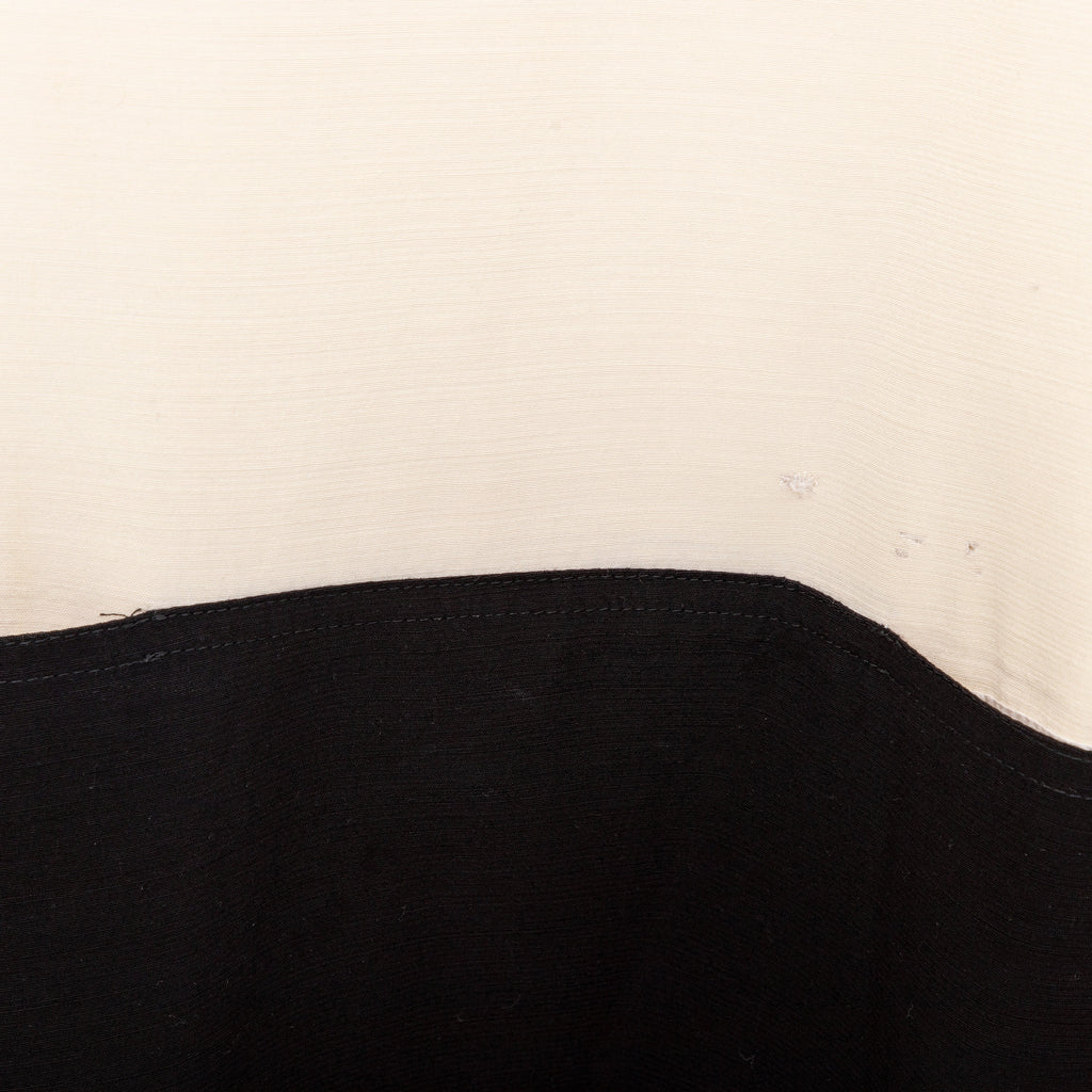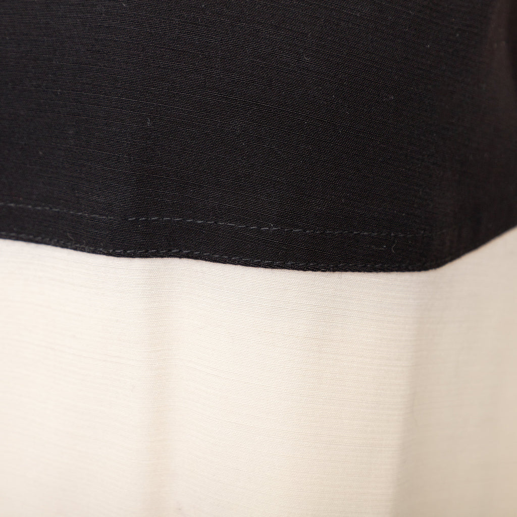 This vintage midi dress by Courrèges features a playful and bold colorblock design with wide, contrasting stripes. The standout feature is the round cutout on the front, adding a unique and eye-catching detail. With short sleeves and a classic round neckline, this dress combines the sleek, minimalist aesthetic of the 60s.