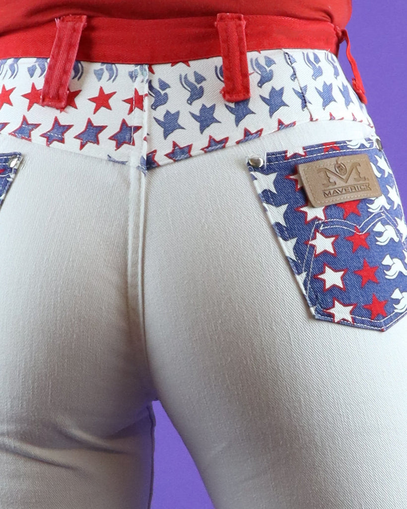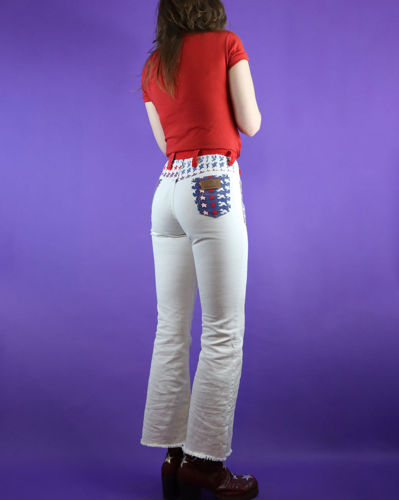 Vintage 1960s 1970s Maverick Set White Denim Flares Star Peace Dove Hippie Vest