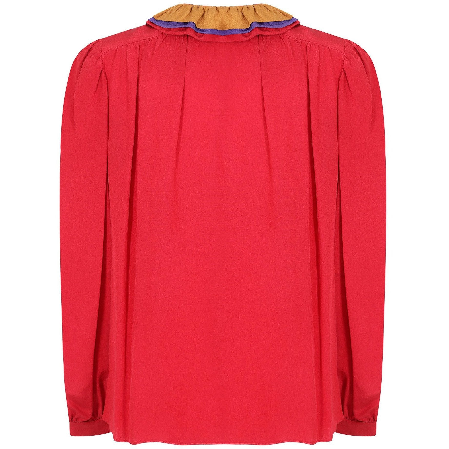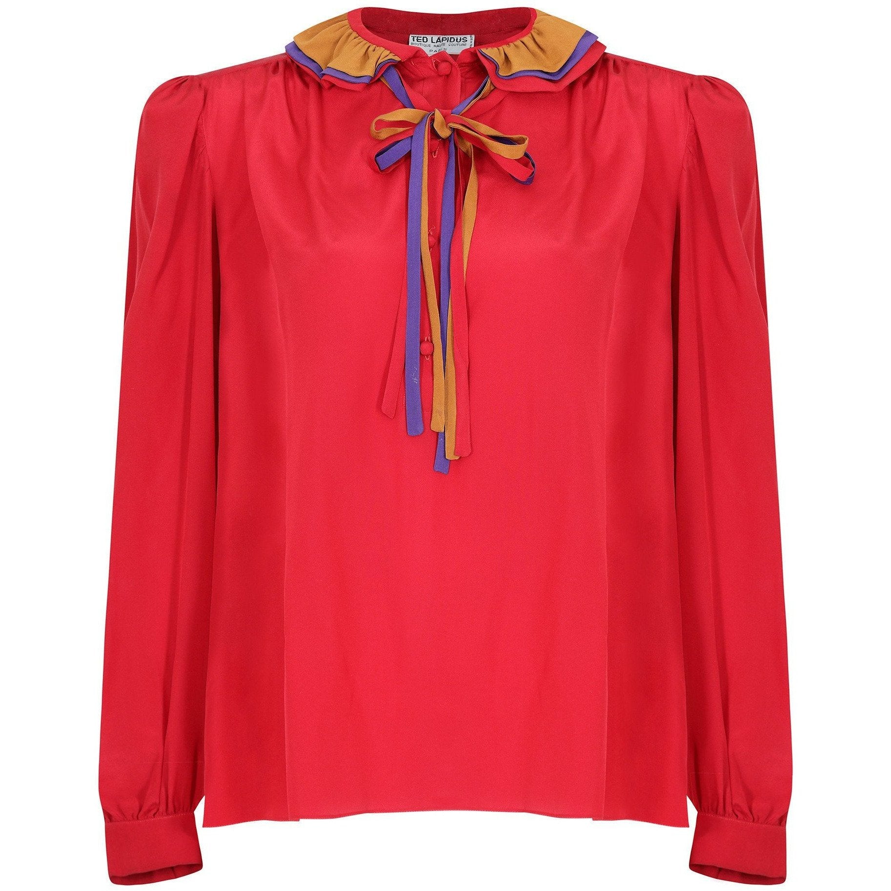 1970s Ted Lapidus Silk Red Blouse with Ruffle Collar