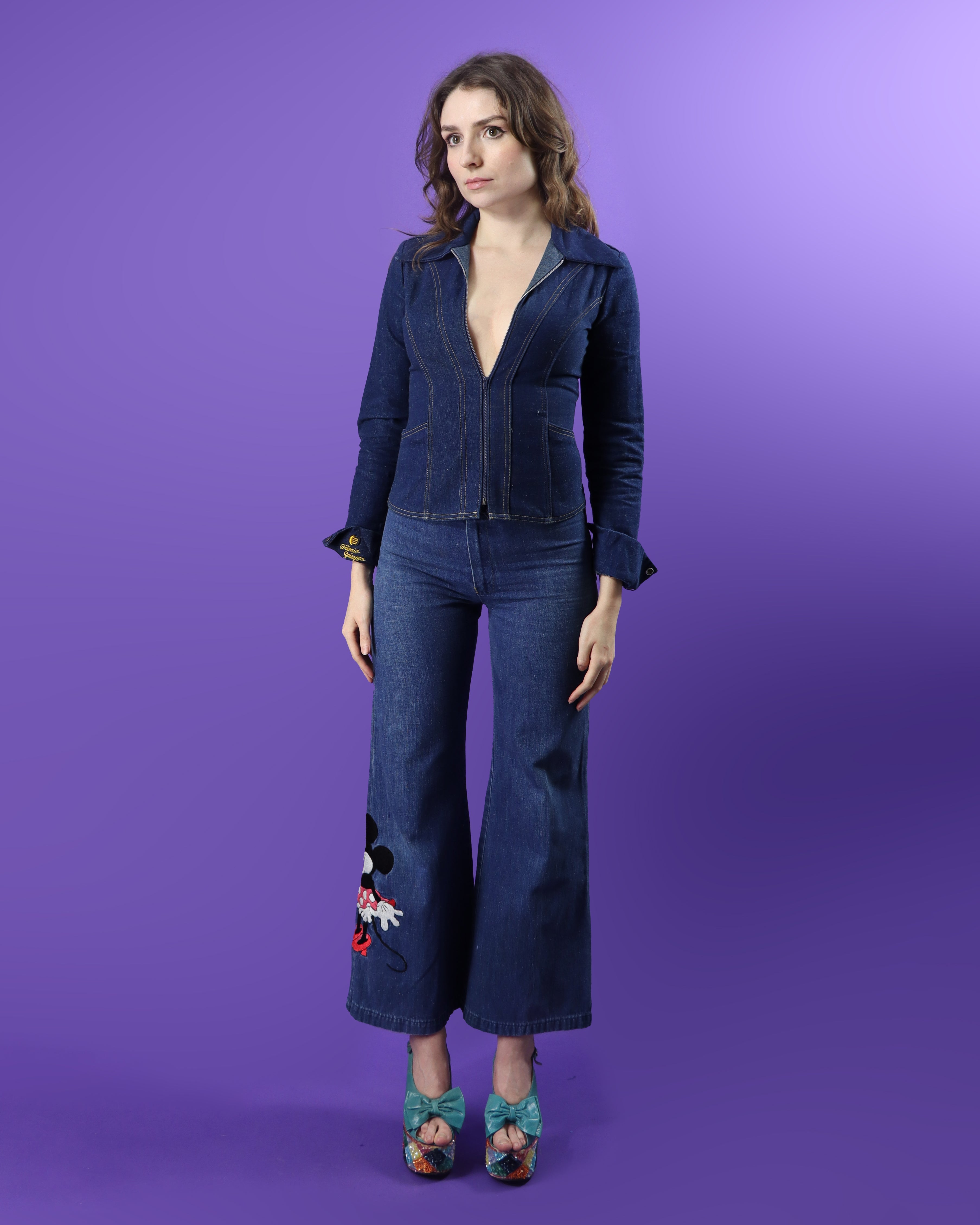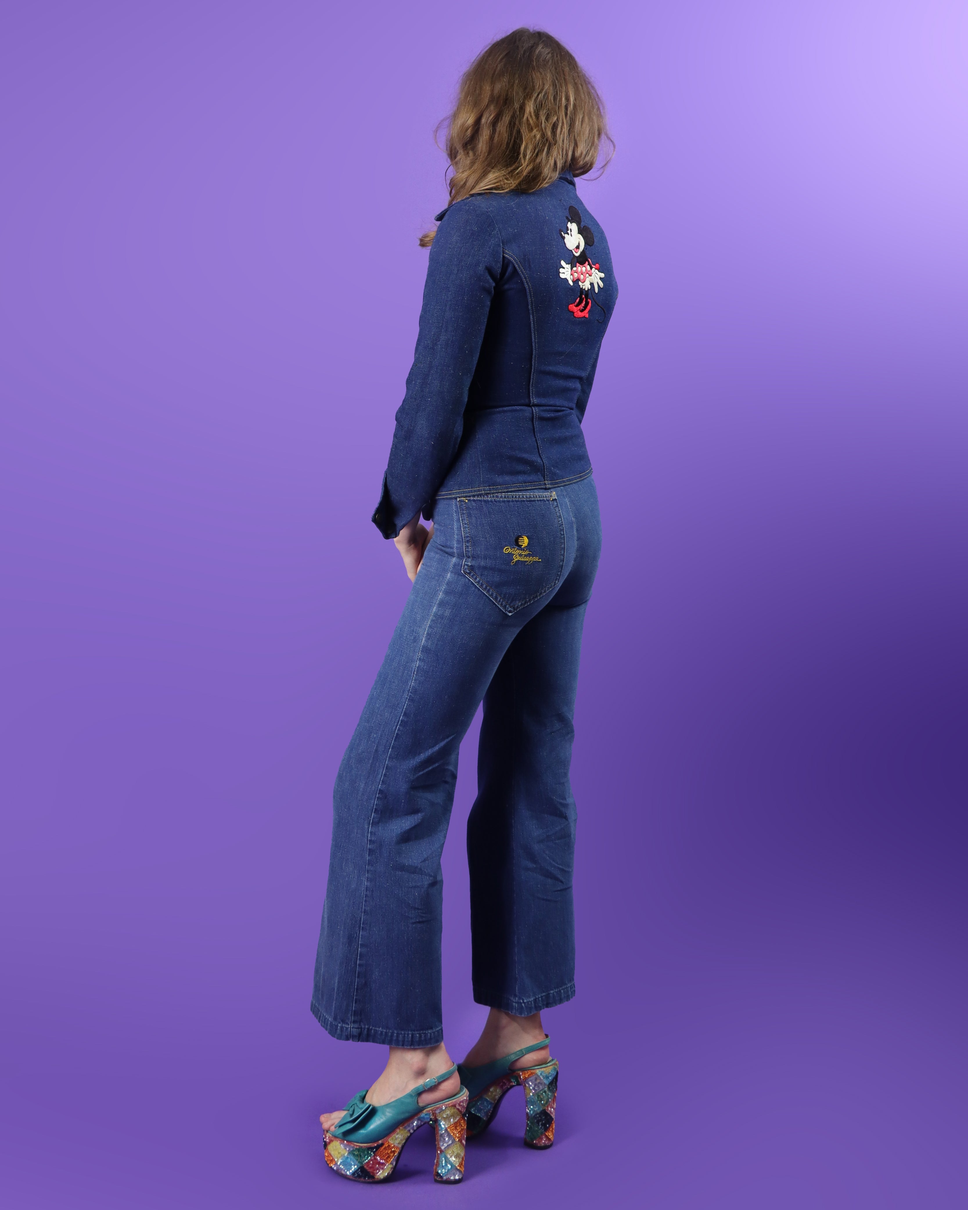 RARE Vintage 1970s Antonio Guiseppe Minnie Mouse Disney Denim Suit Set Flares