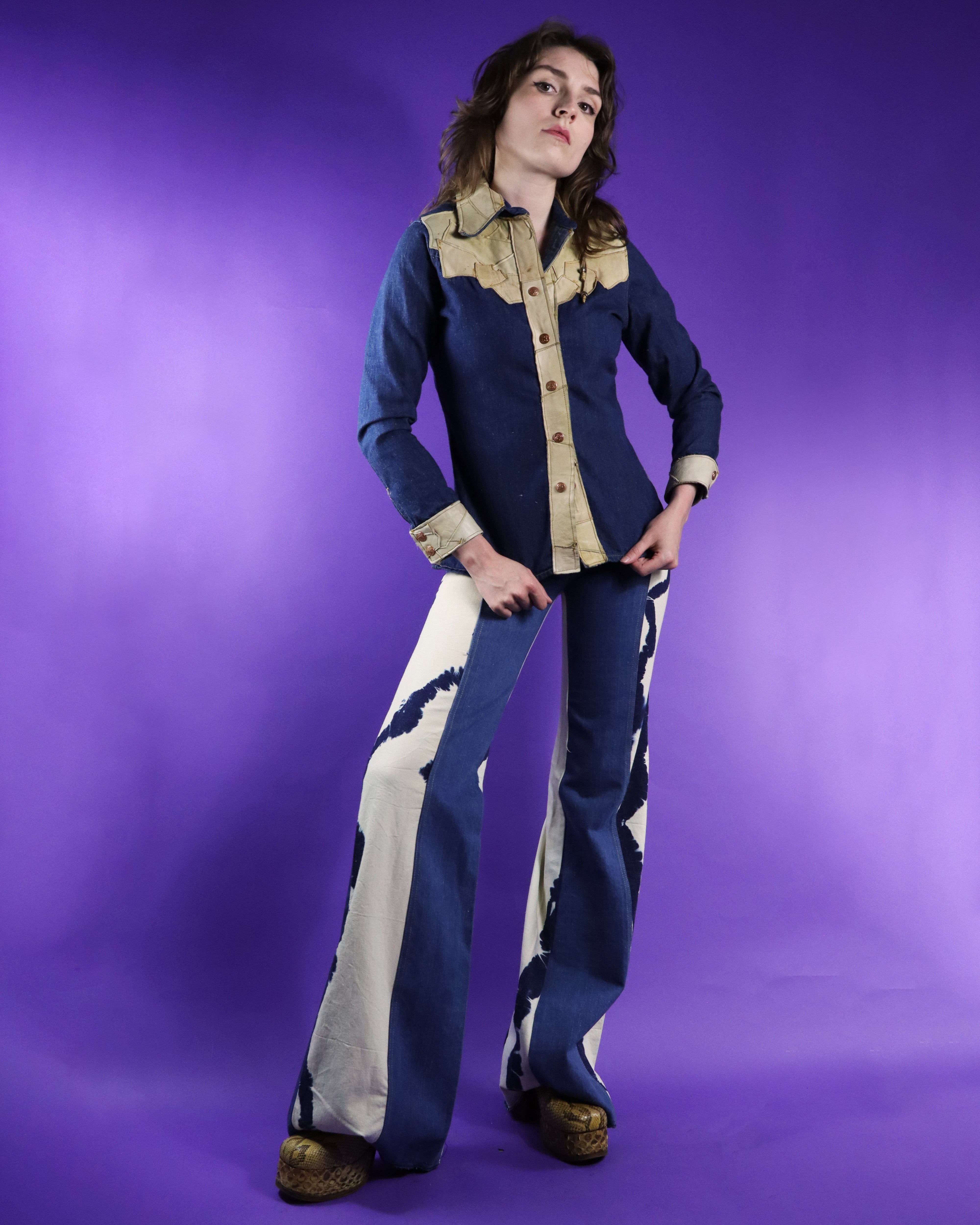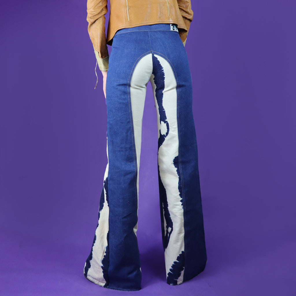 Vintage 1970s Antonio Guiseppe Tie Dye Saddleback Denim Flares