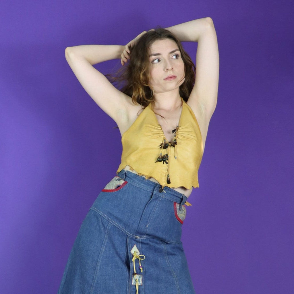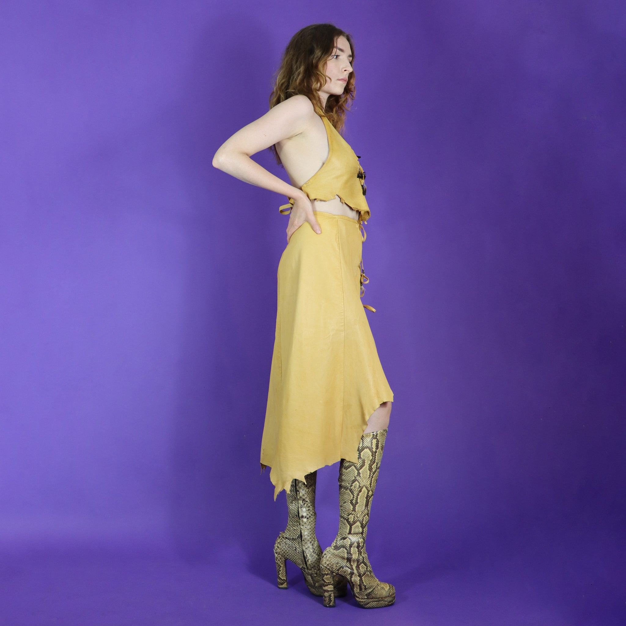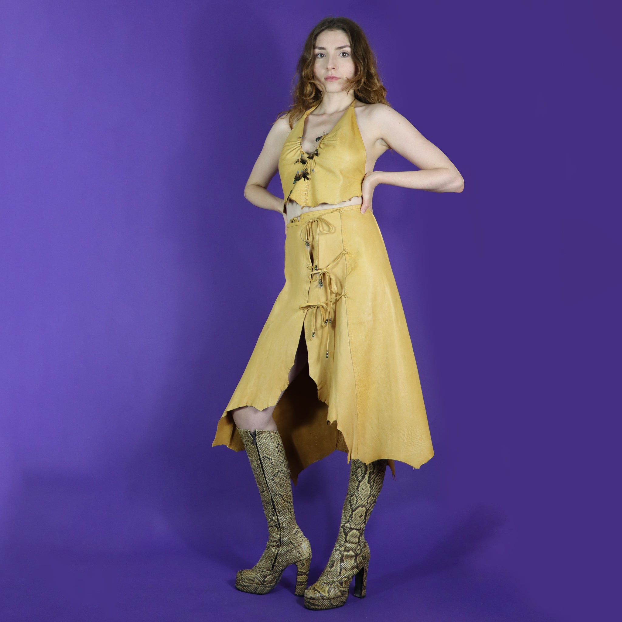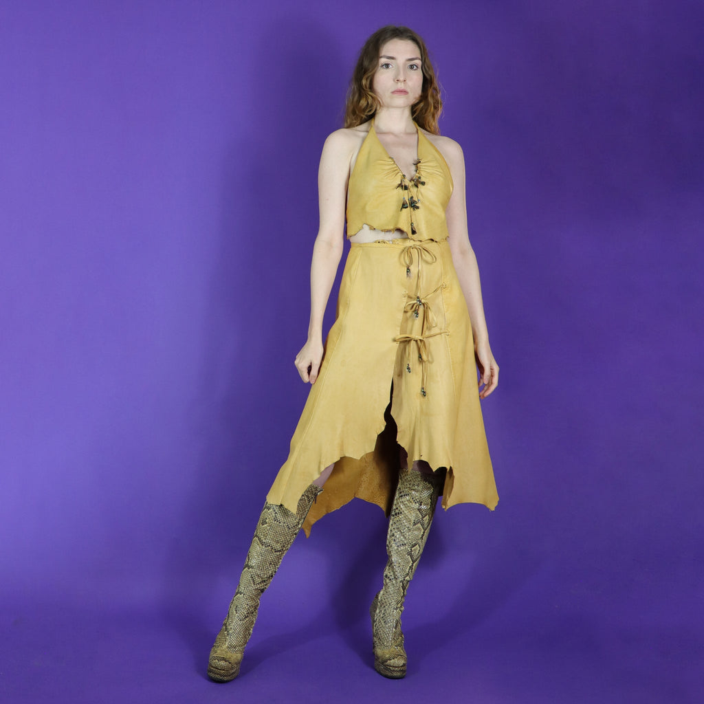 Vintage 1970s Hippie Buckskin Skirt & halterneck Top Set