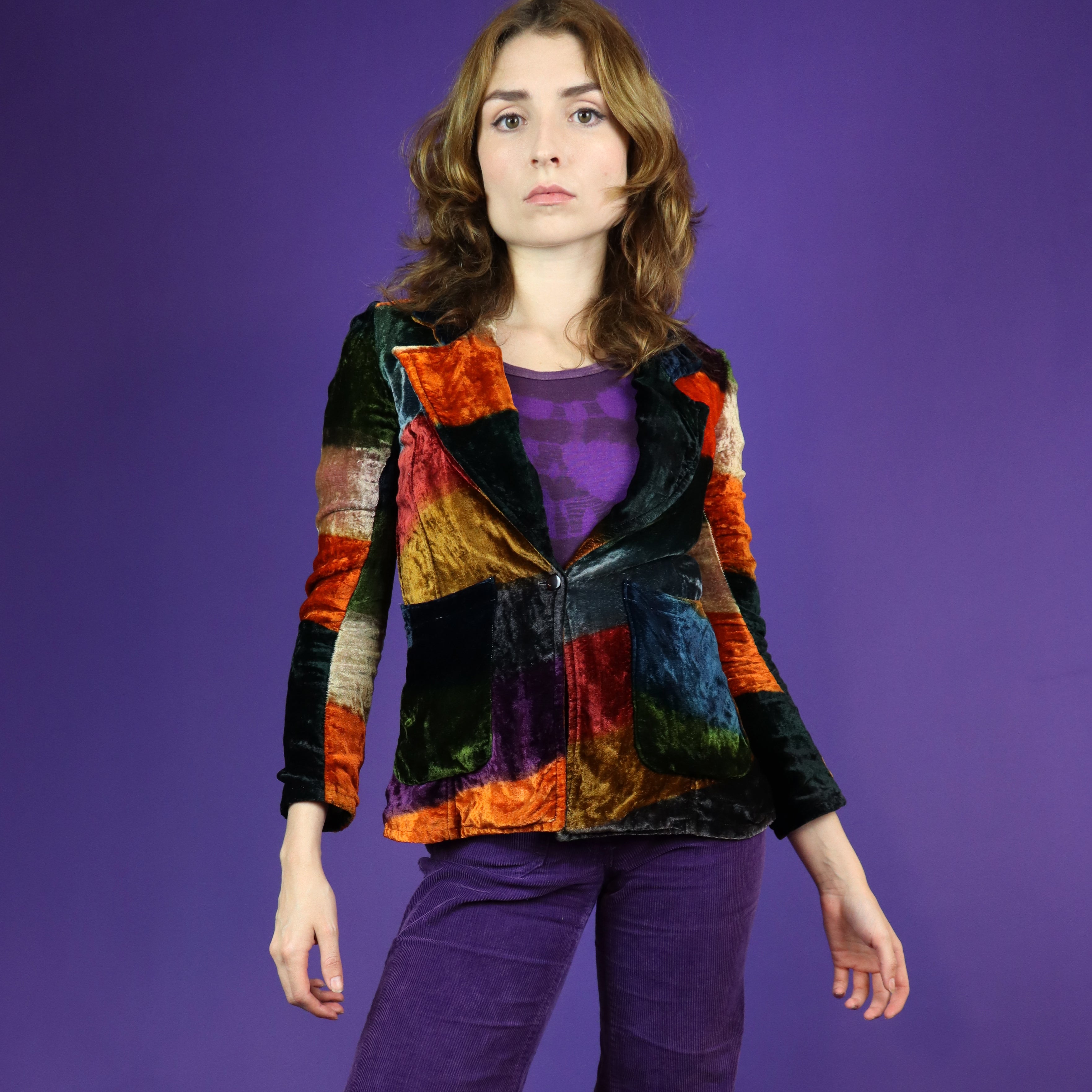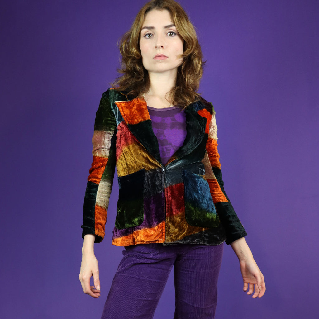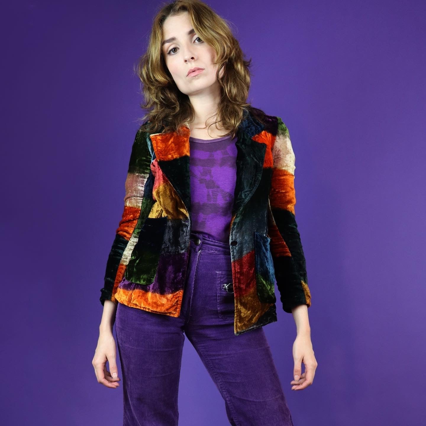 Vintage 1970s Multi Colour Crushed Velvet Blazer by Southsea Bubble