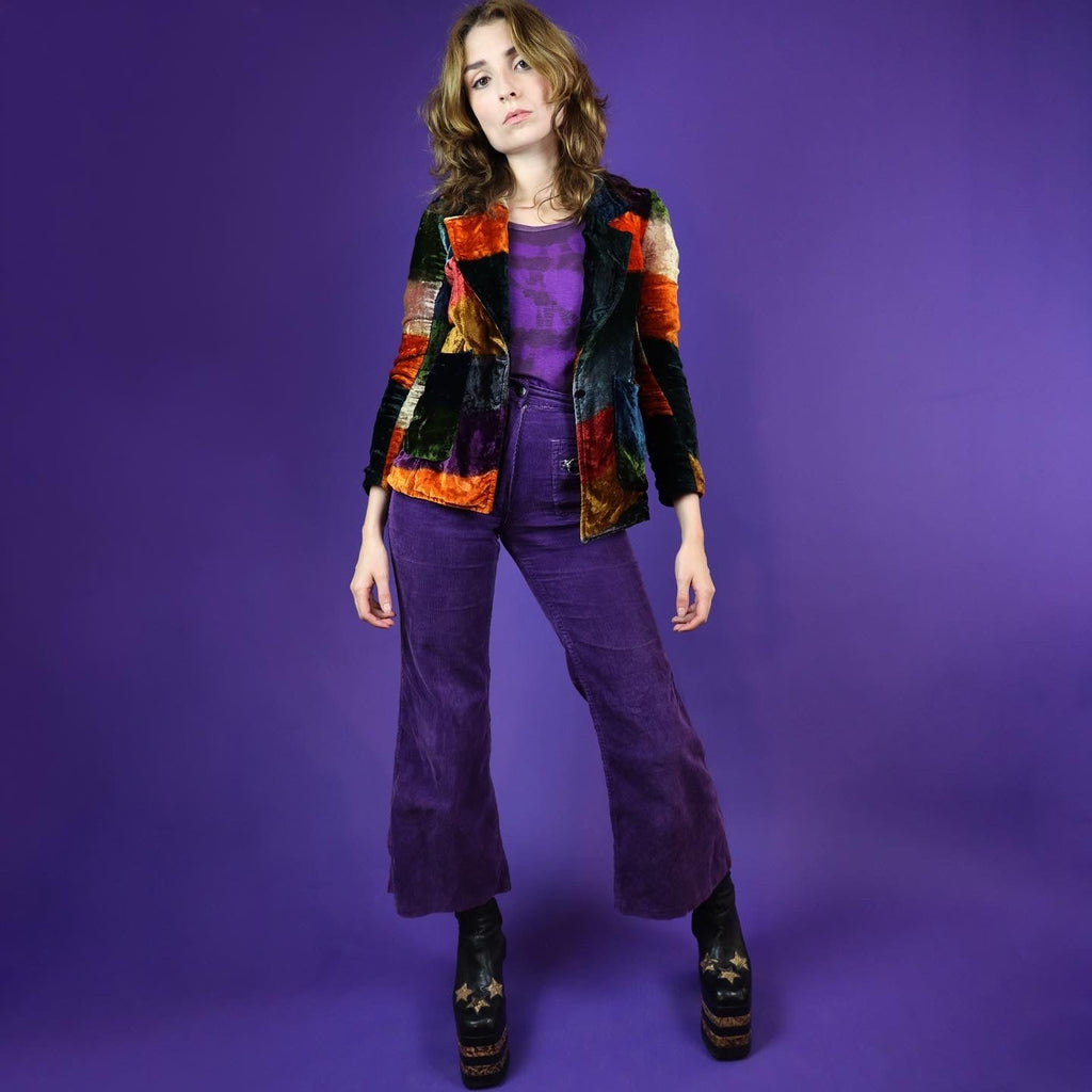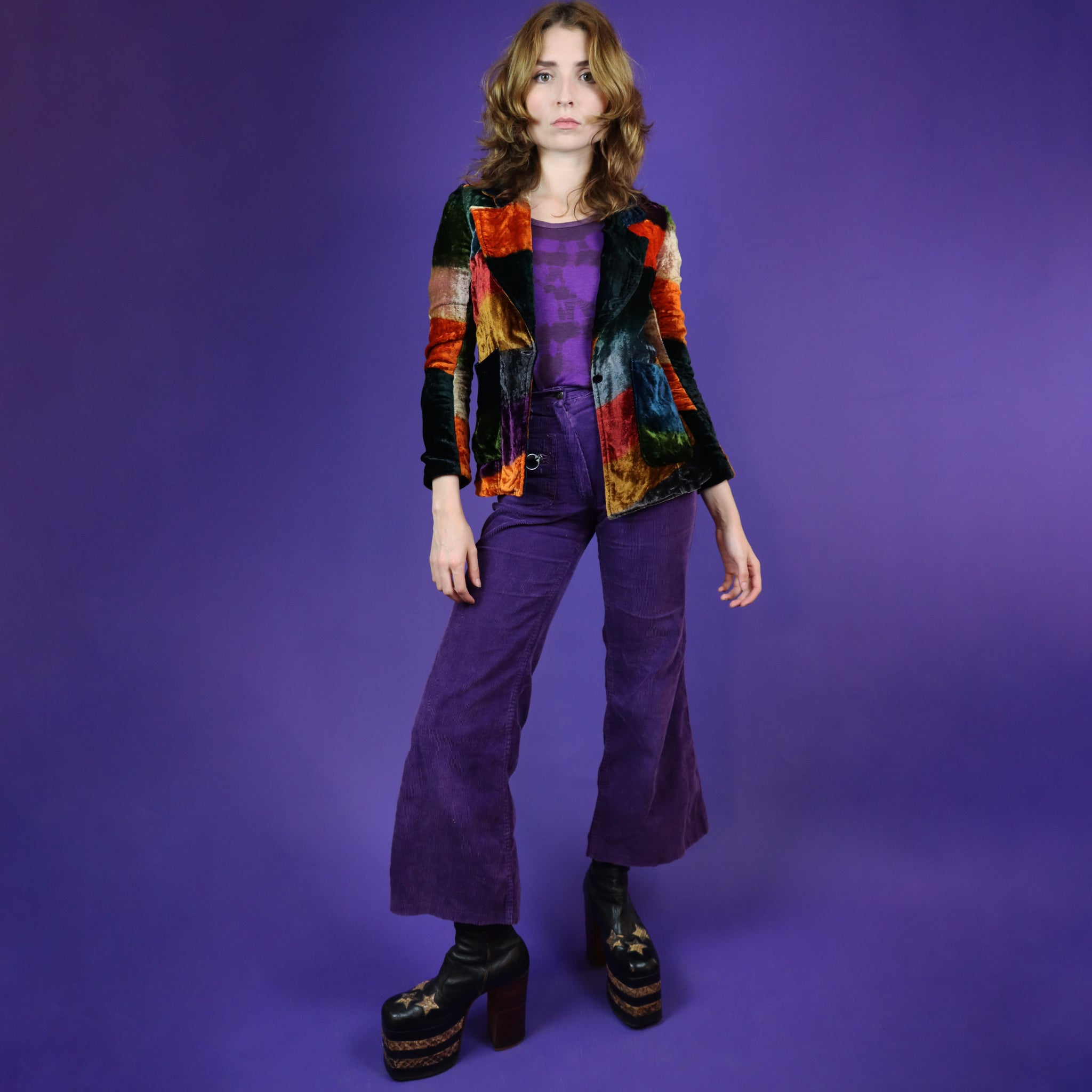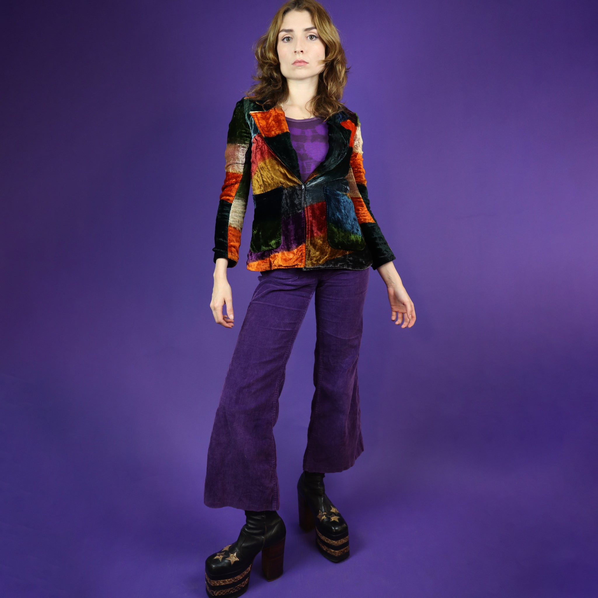 Vintage 1970s Multi Colour Crushed Velvet Blazer by Southsea Bubble