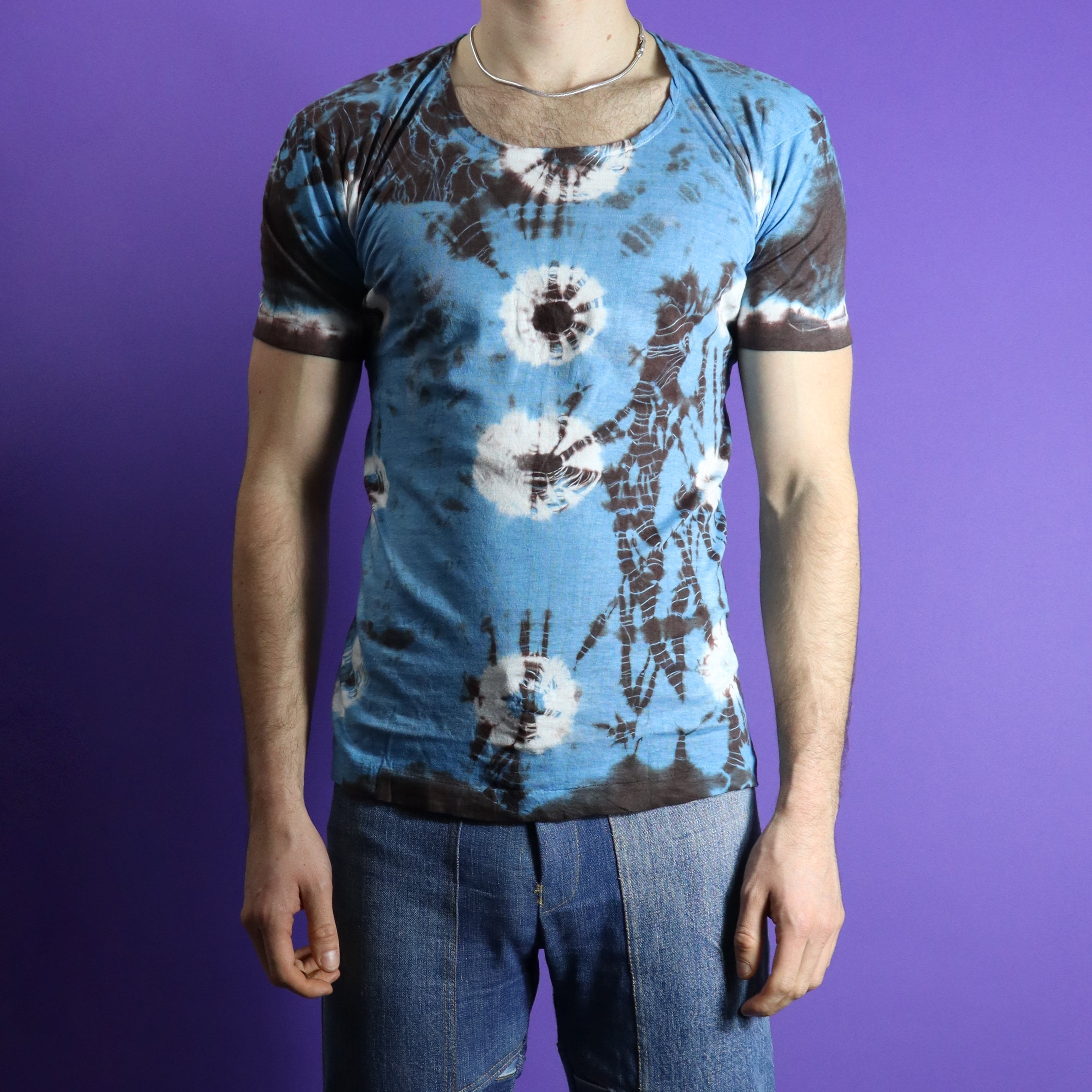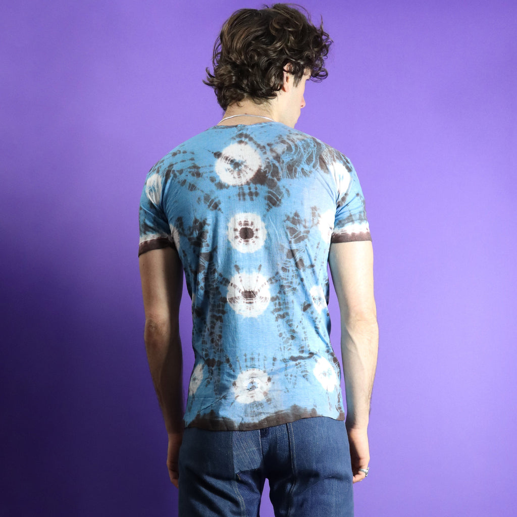 Vintage Deadstock 1970s Indian Cotton Tie Dye T-Shirt Blue
