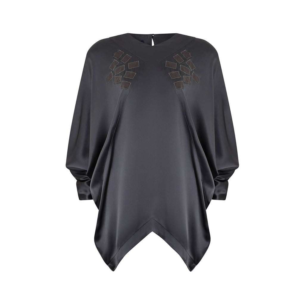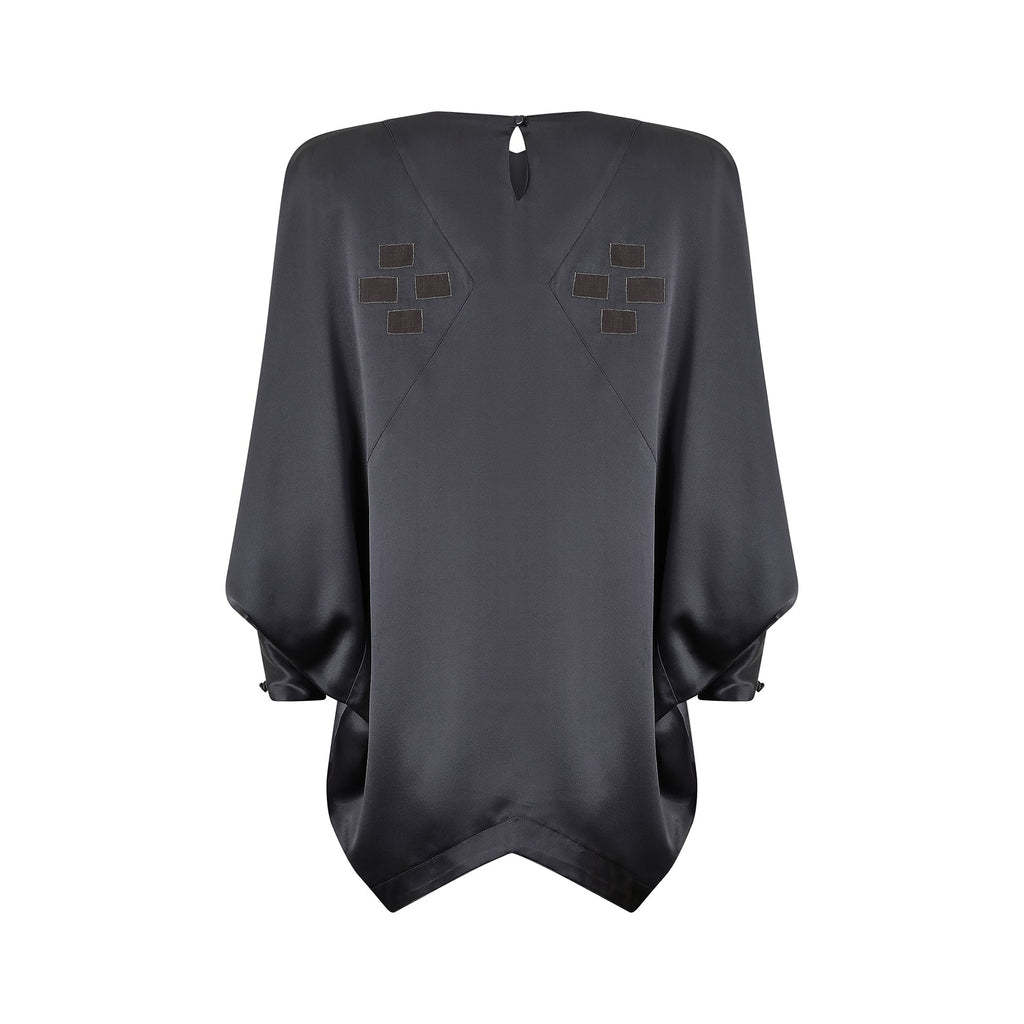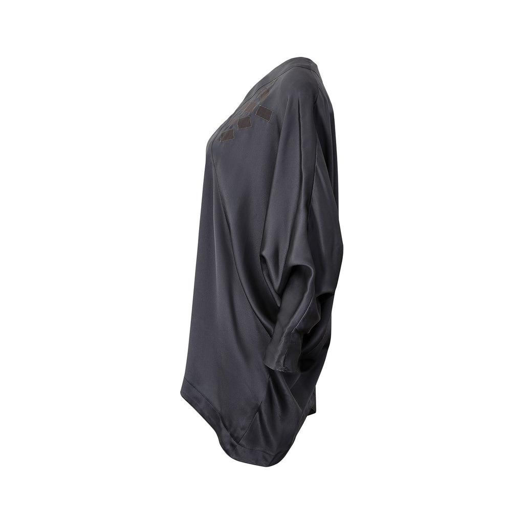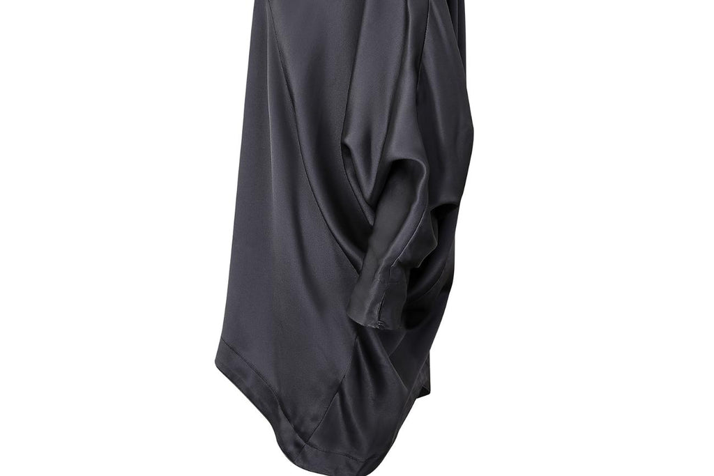 1980s Jean Muir Grey Silk Batwing Blouse