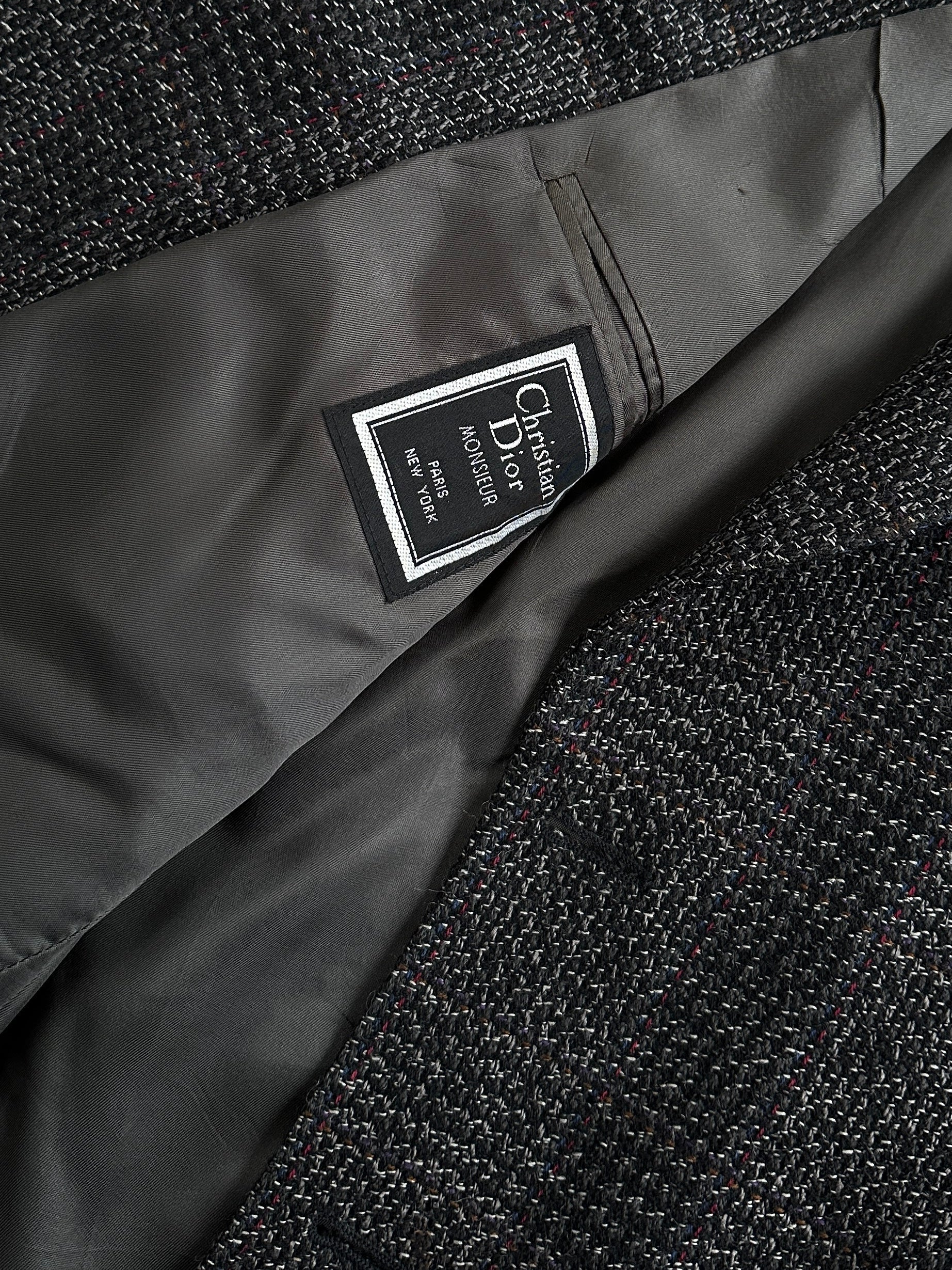 Christian Dior Monsieur 1980s blazer in textured grey tweed with a fine check. Tailored in the USA.