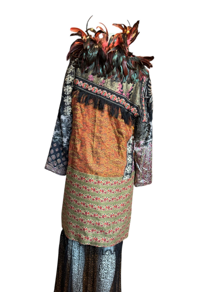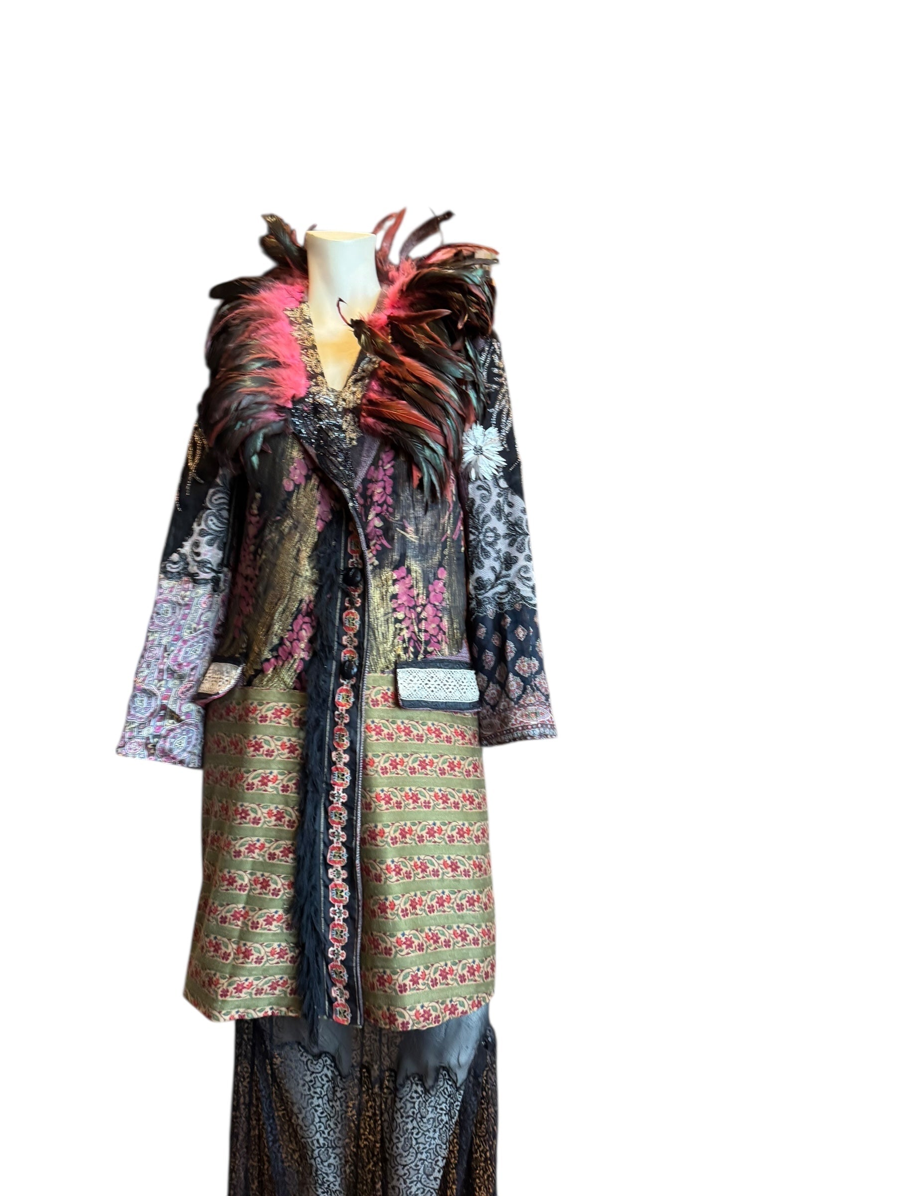 Hattie, reworked 80s patchworked double breasted feather coat