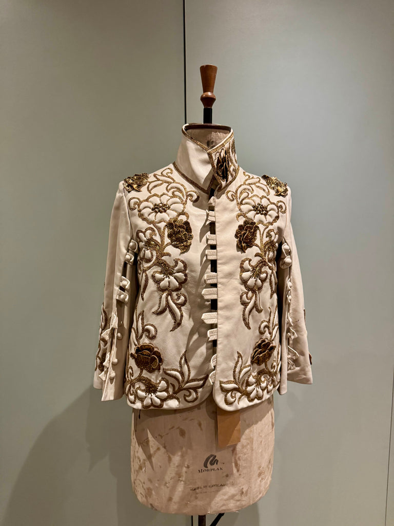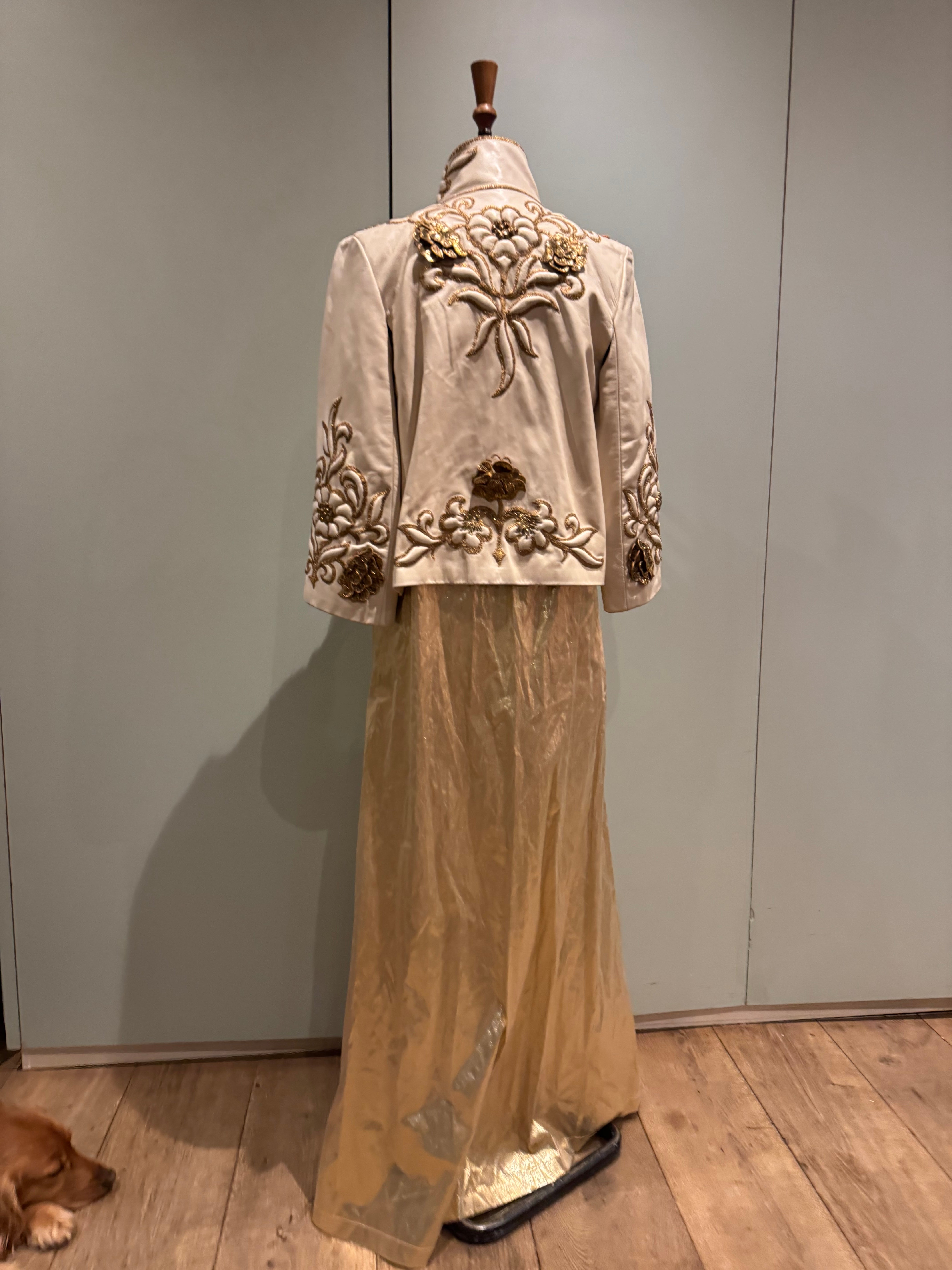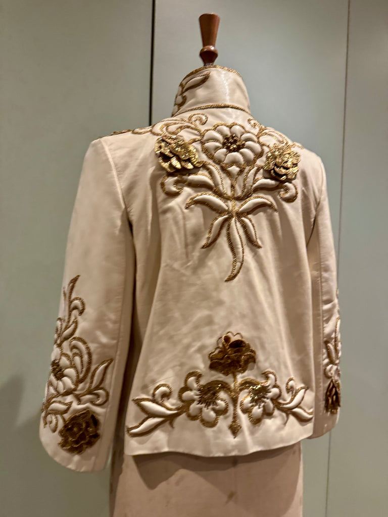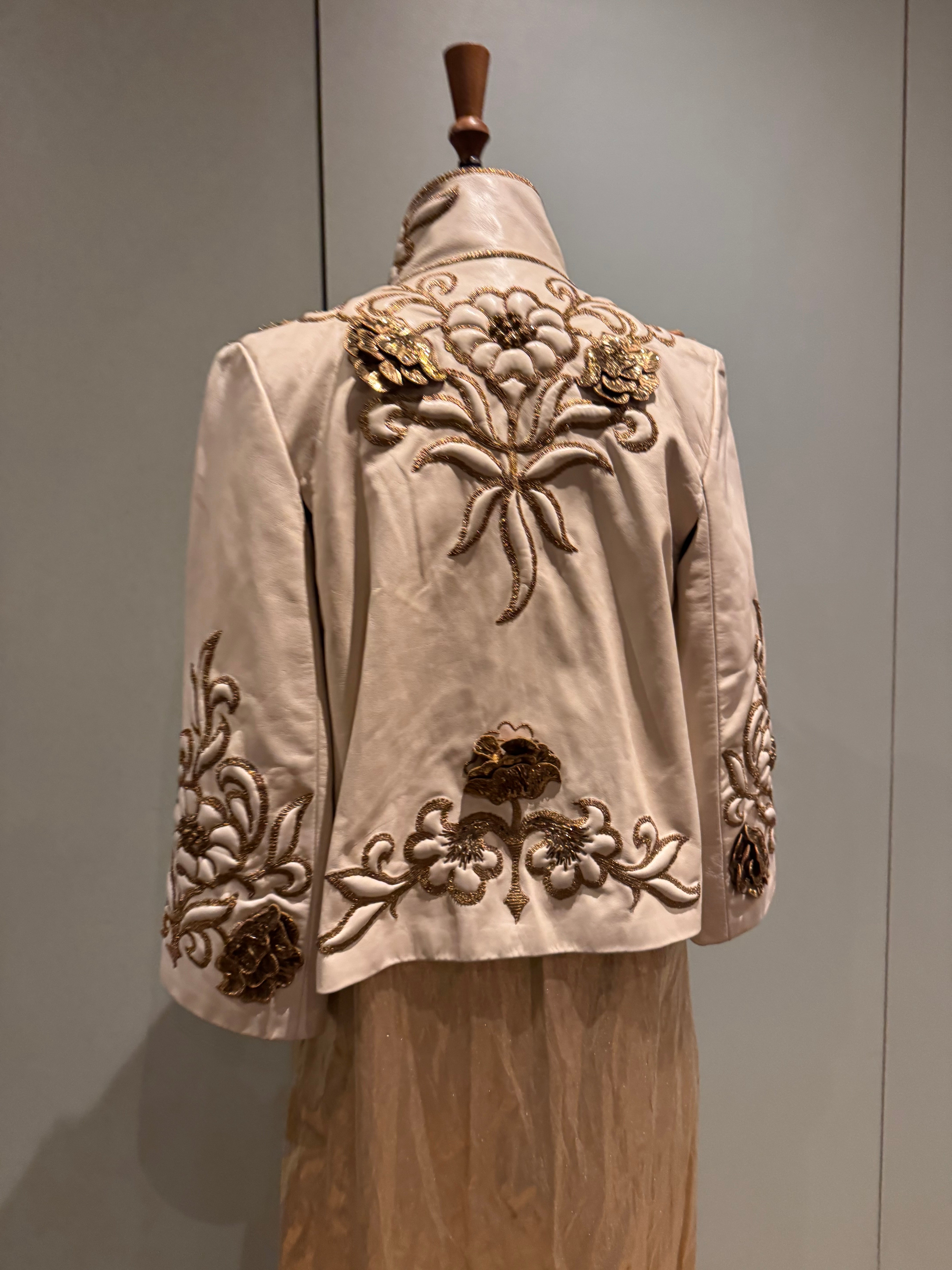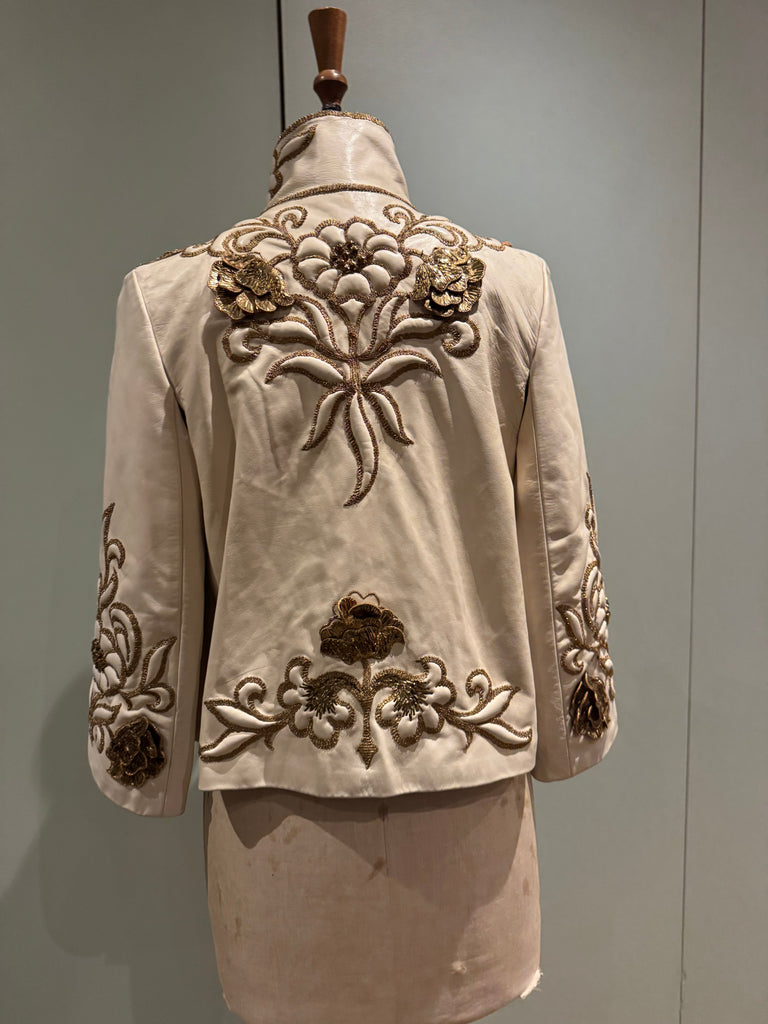 Jean-Louis Sherrer, 80s couture lather nappa cream leather jacket with gold thread quilted embroidery