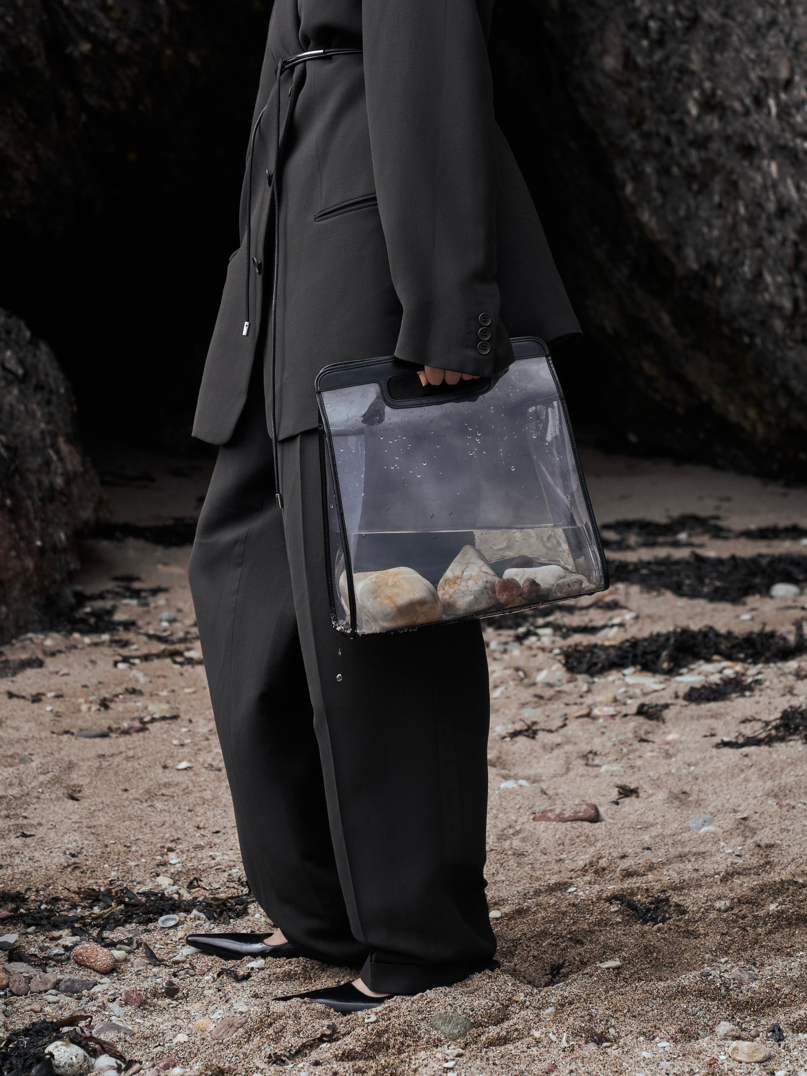 This Gucci 2 in 1 Leather & Vinyl Shoulder Bag boasts a retractable handle and comes with a vintage leather bag as well as a vinyl cover with a shoulder strap.