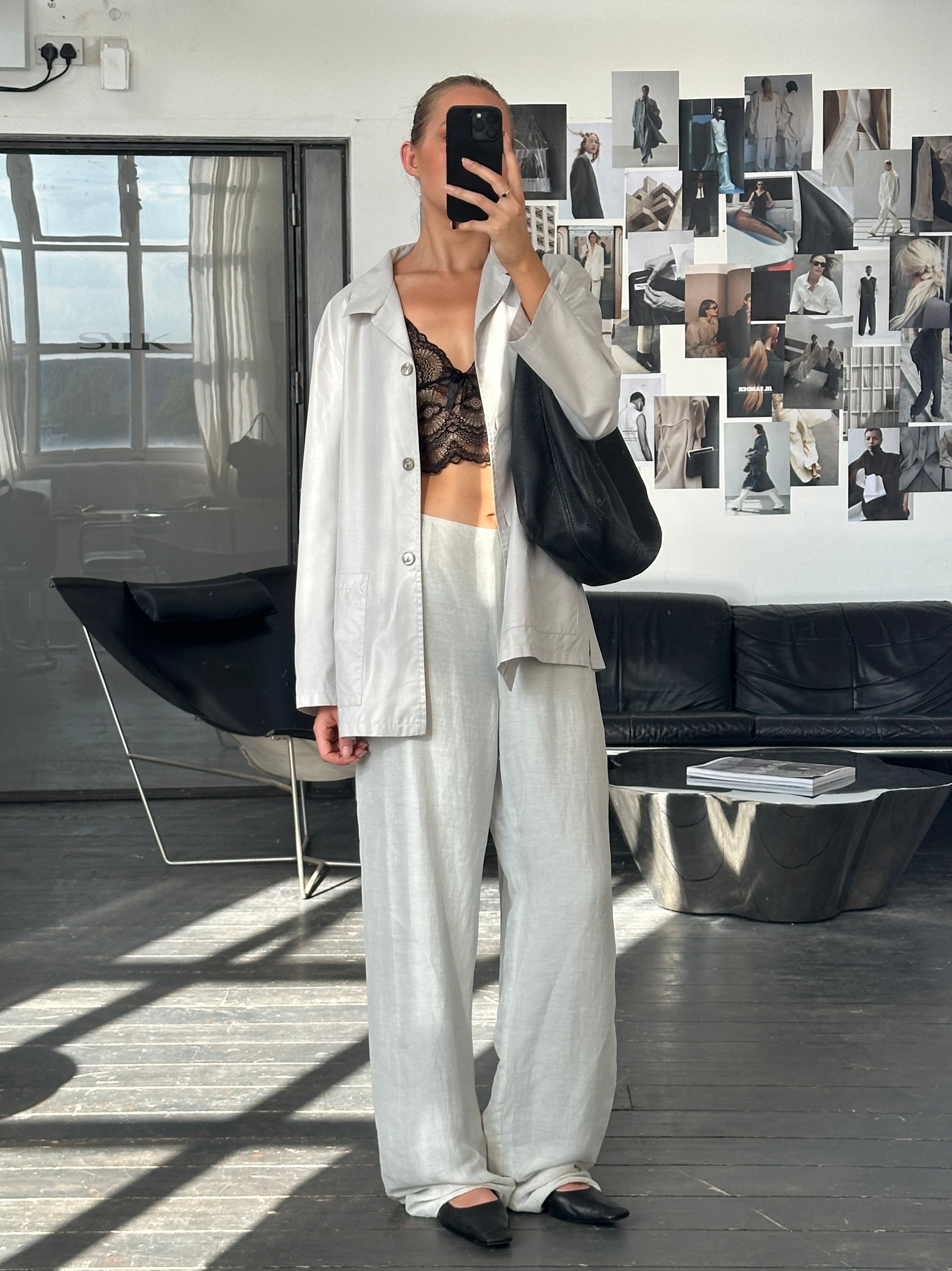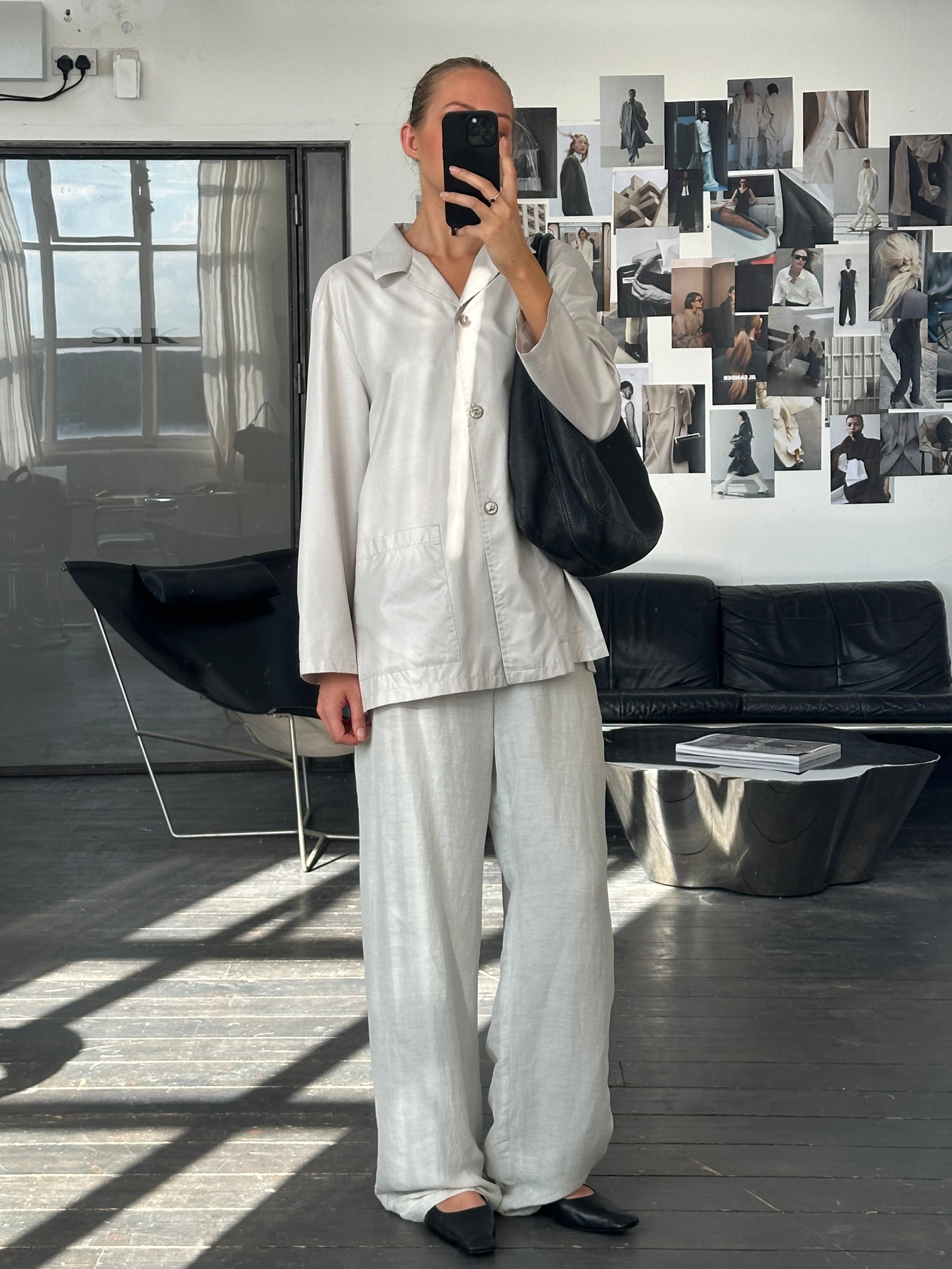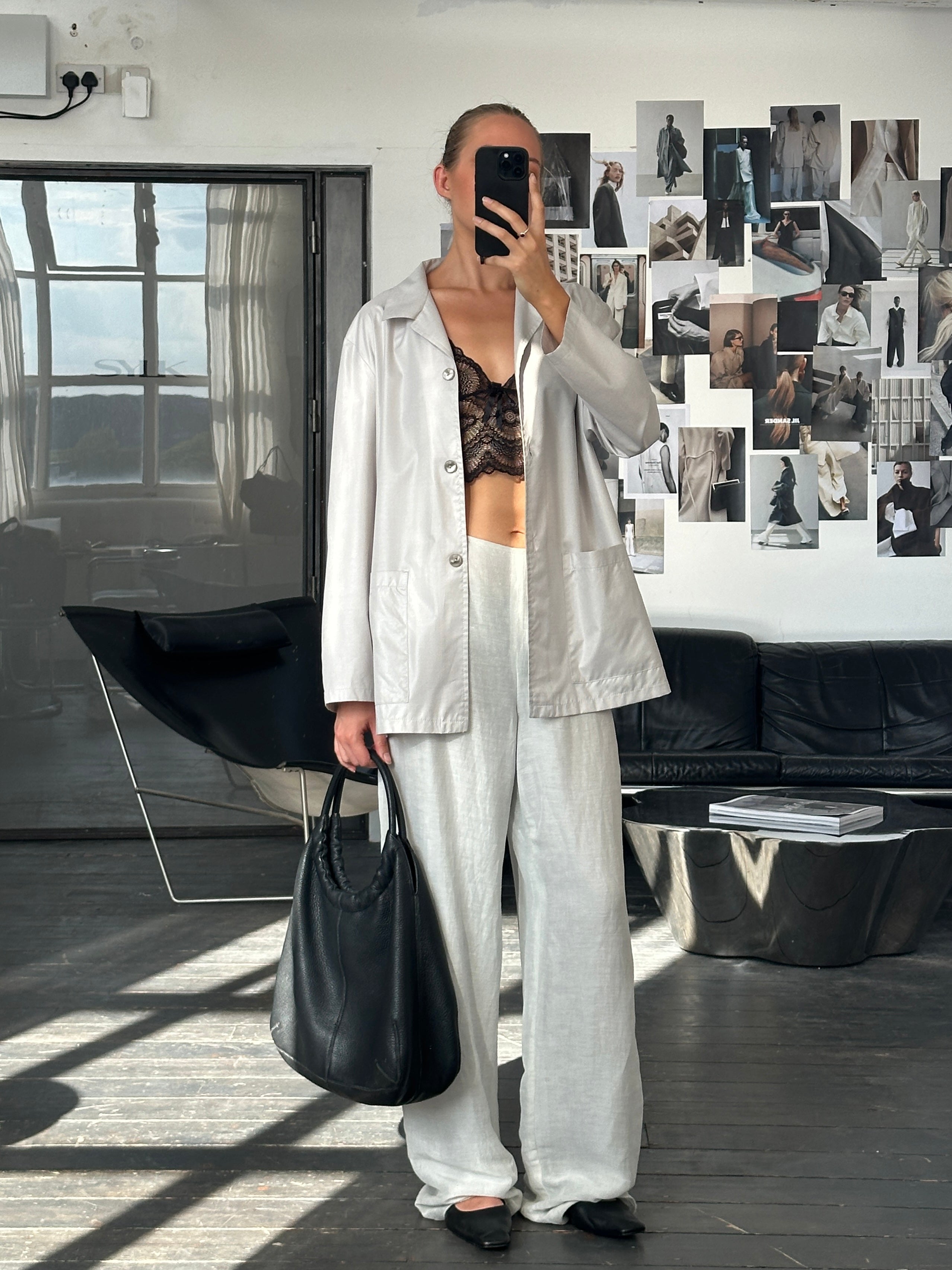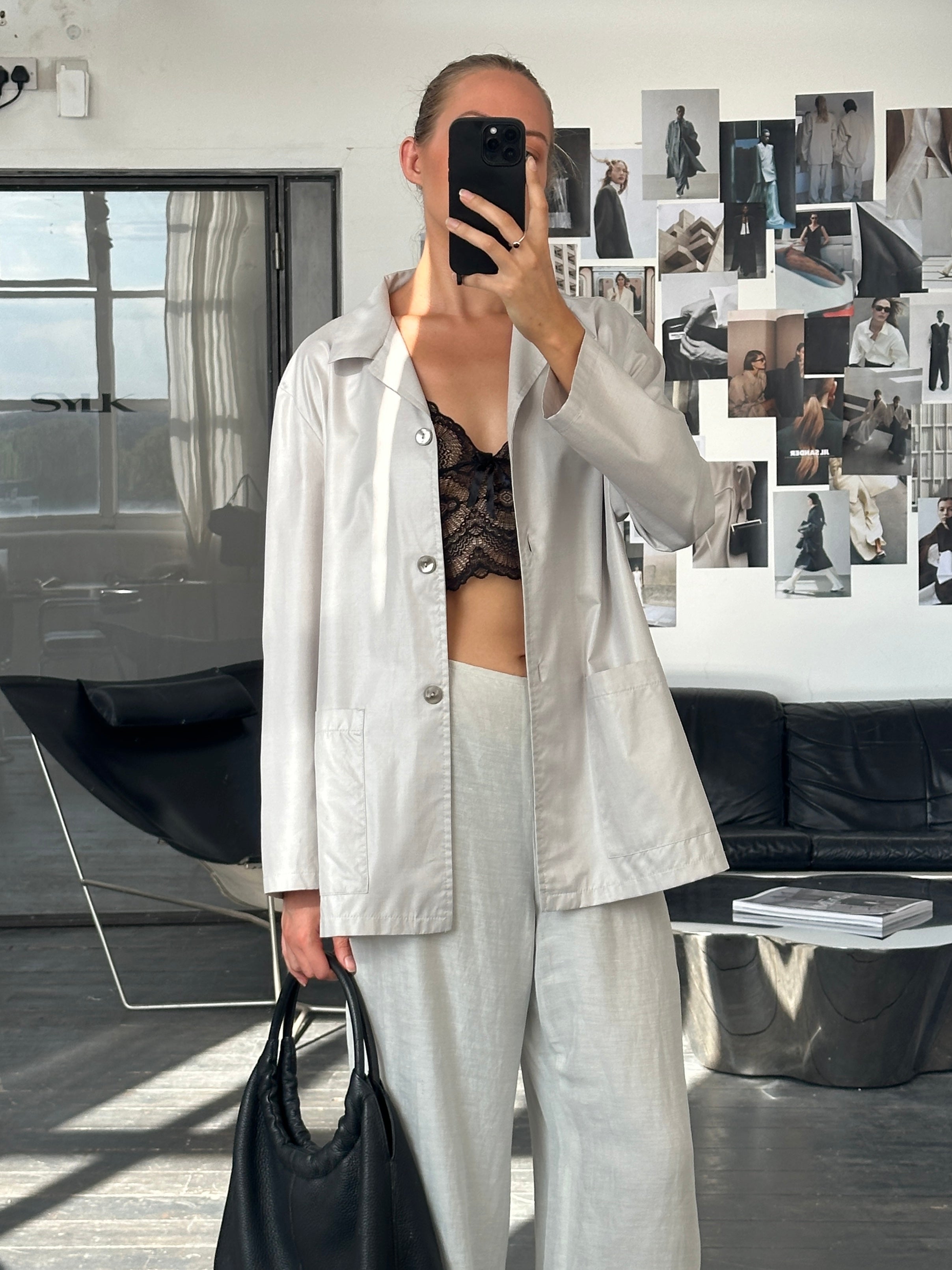 Minimal Italian tailoring in lightweight polyester — this Armony shirt-jacket blends 90s workwear influences with a clean, contemporary cut.