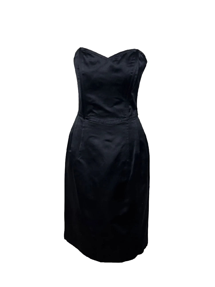 Jil Sander 90s Silk Black Strapless Midi Dress