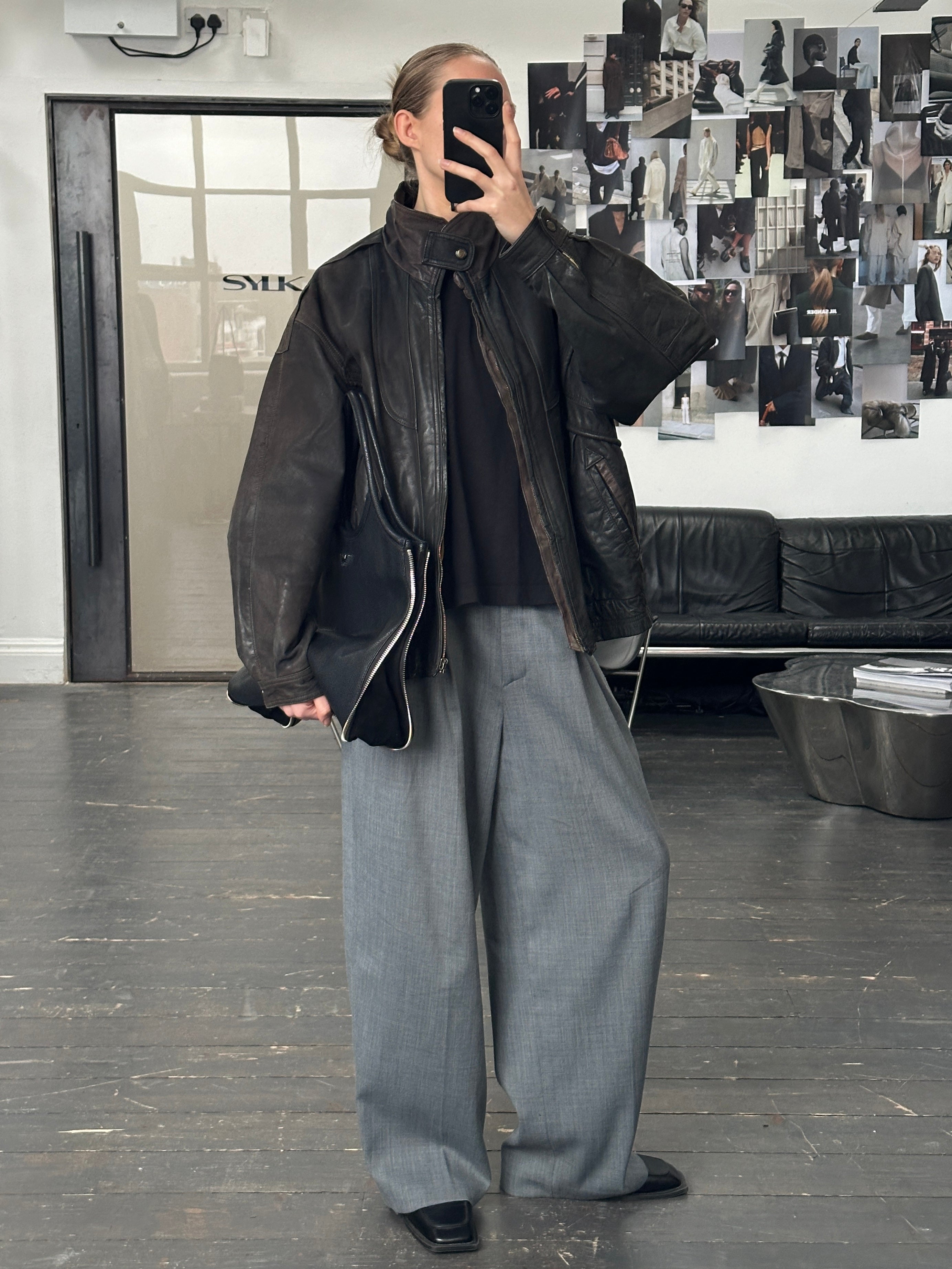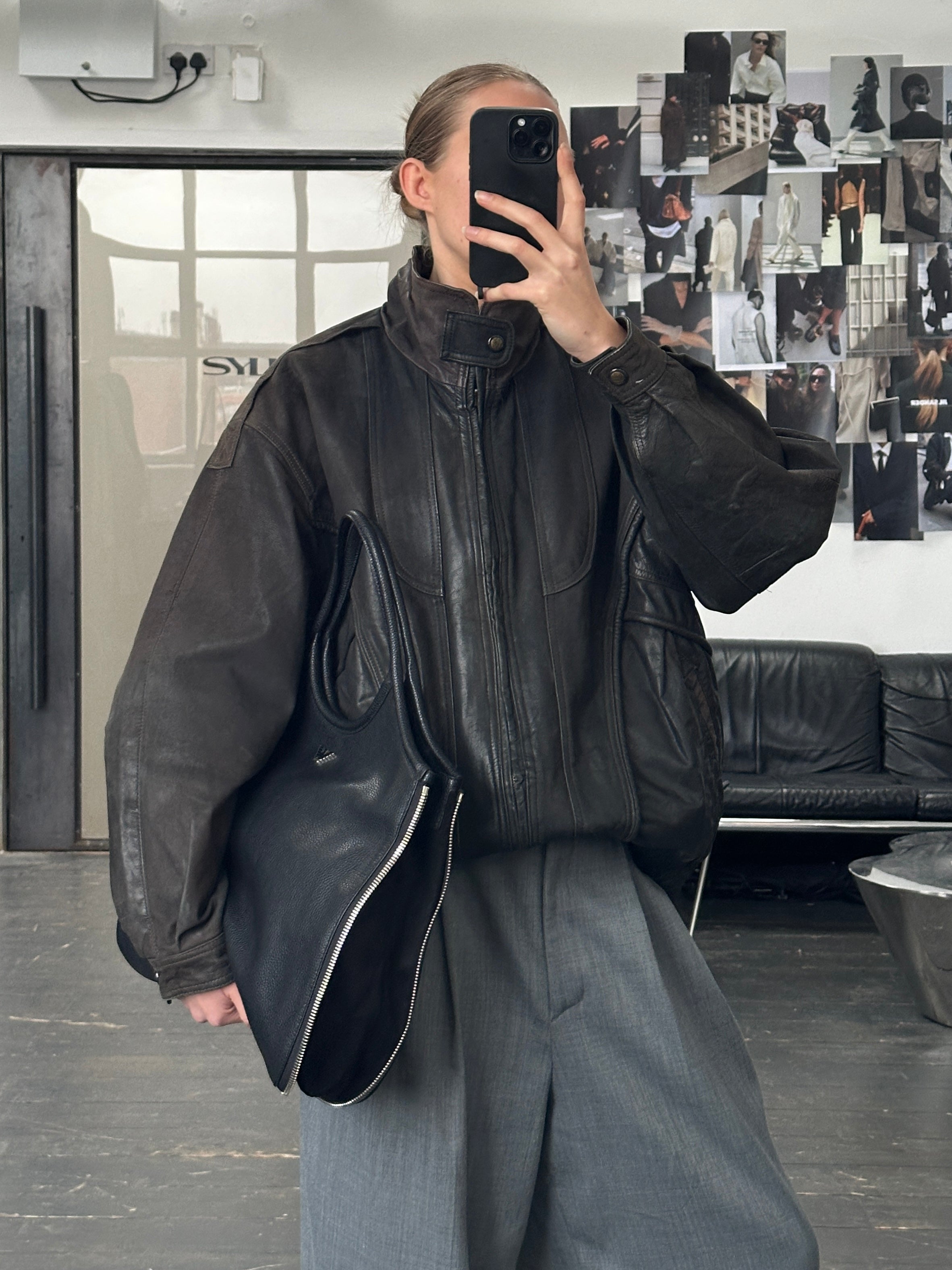 Vintage 1990s Aged Leather Bomber Jacket - XL