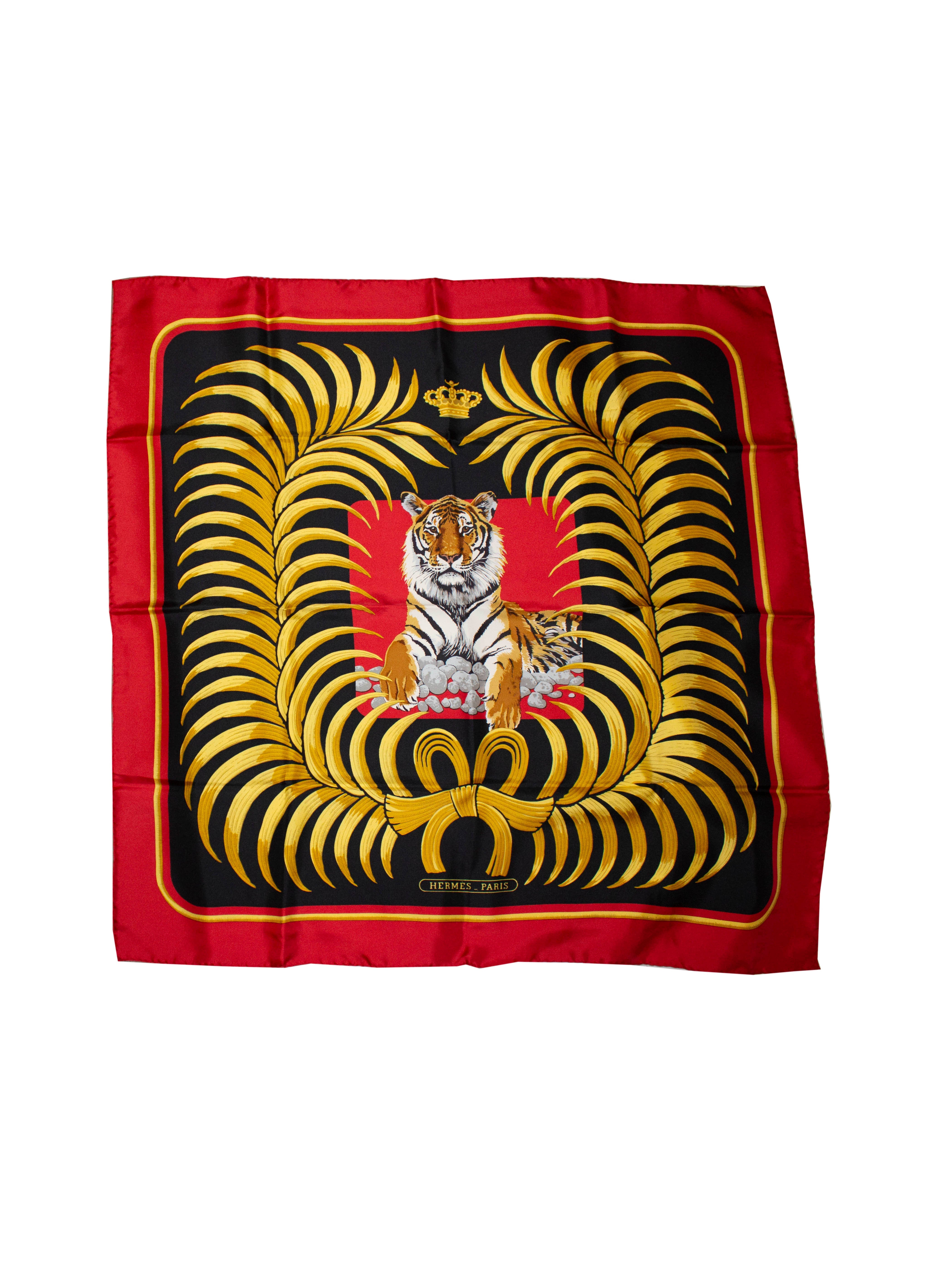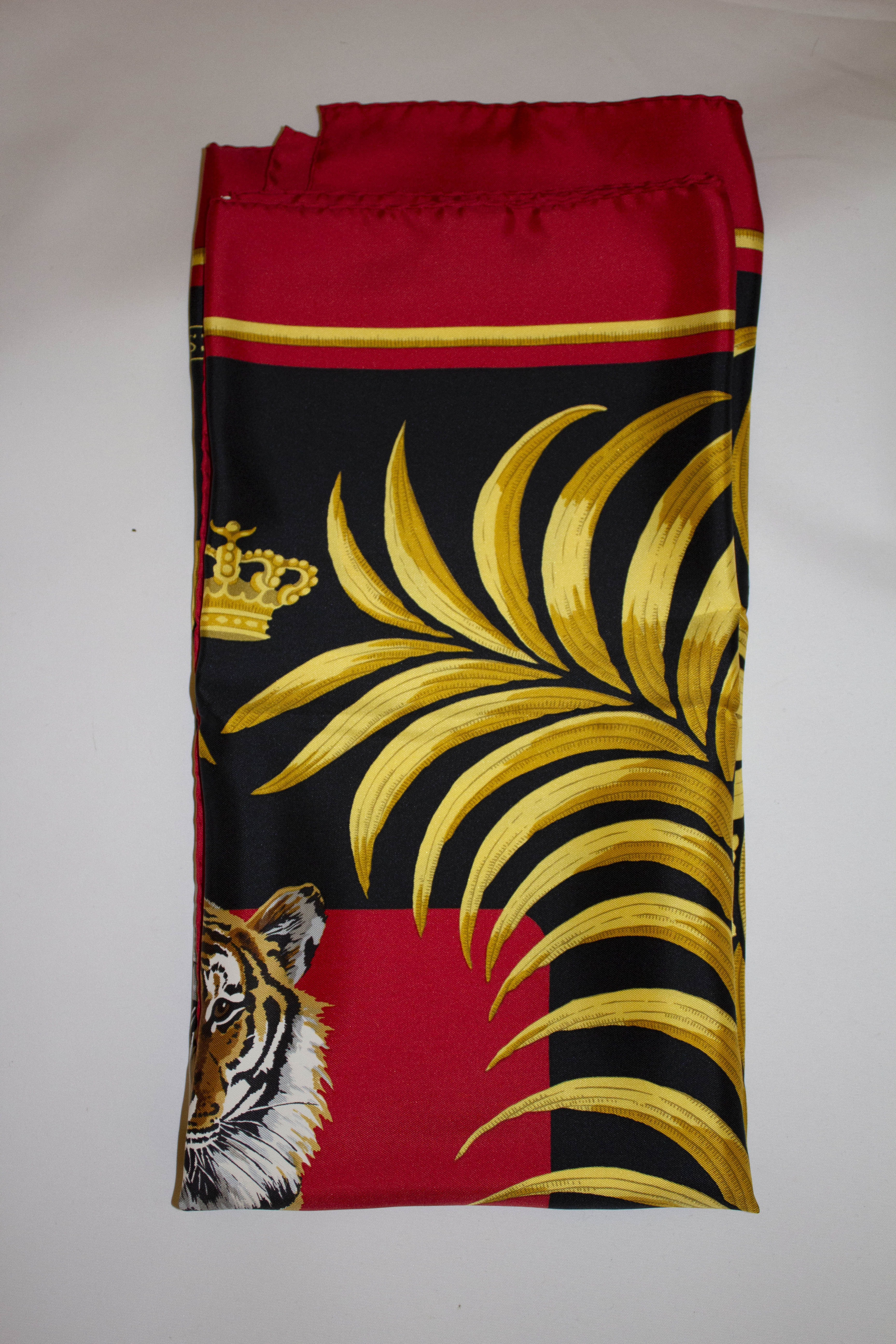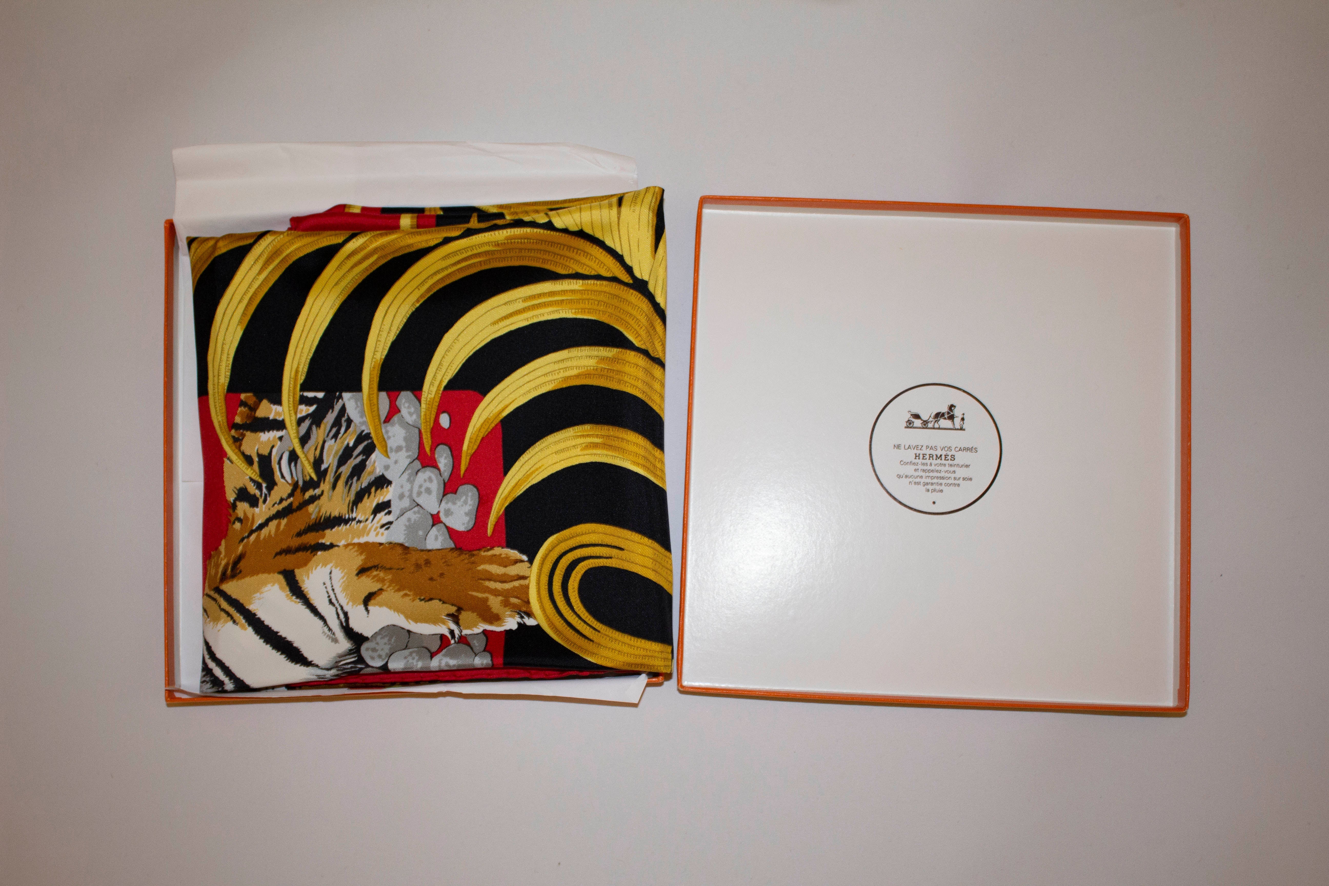 A stunning silk scarf by Hermes, design Tigre Royal  by Christiane Vauzelles. The scarf is unworn , in excellent condition and comes with the original box and tissue. It has a hand rolled border and measures, 35'' x 35''