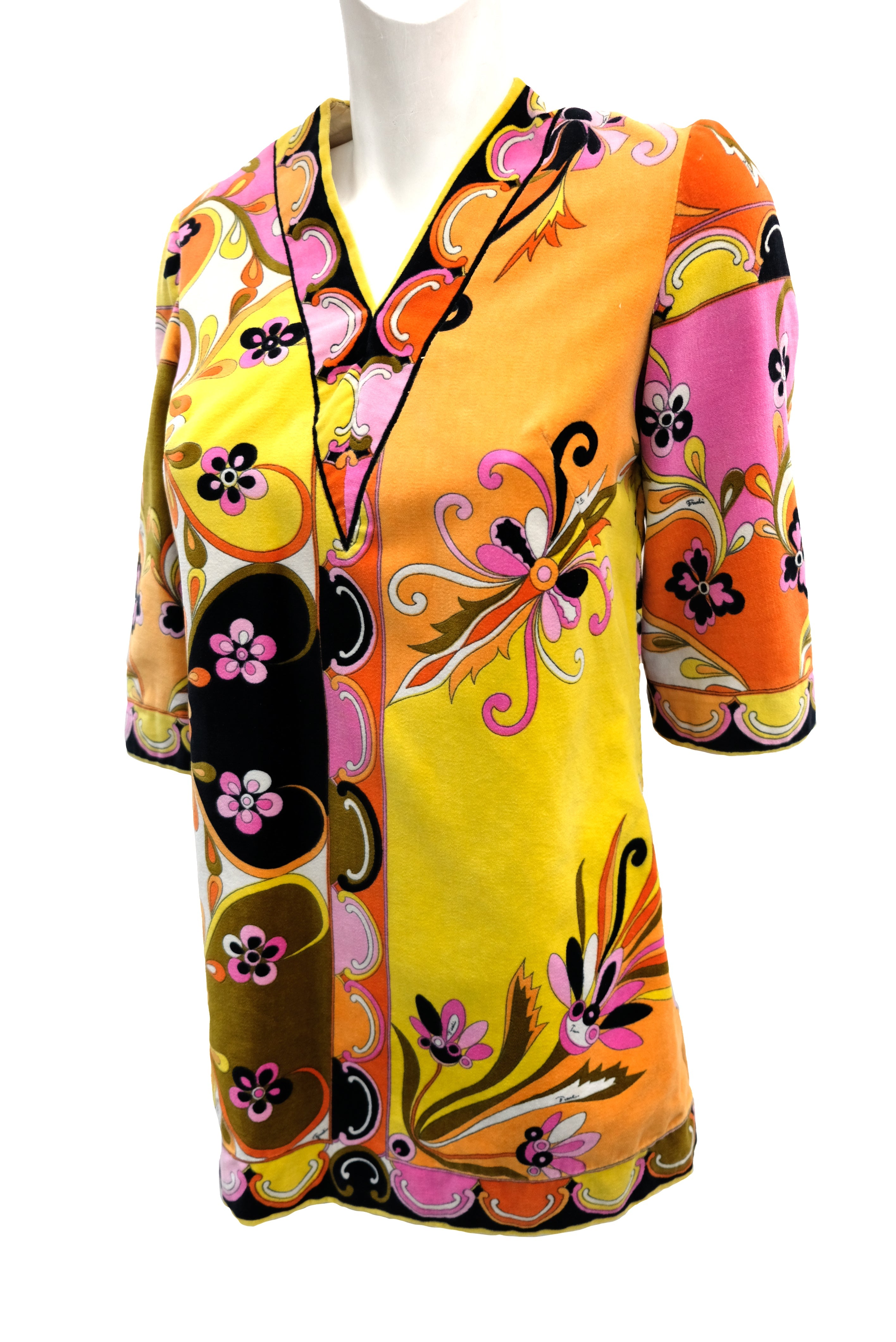 Emilio Pucci Vintage Psychedelic Velvet Tunic, UK8
