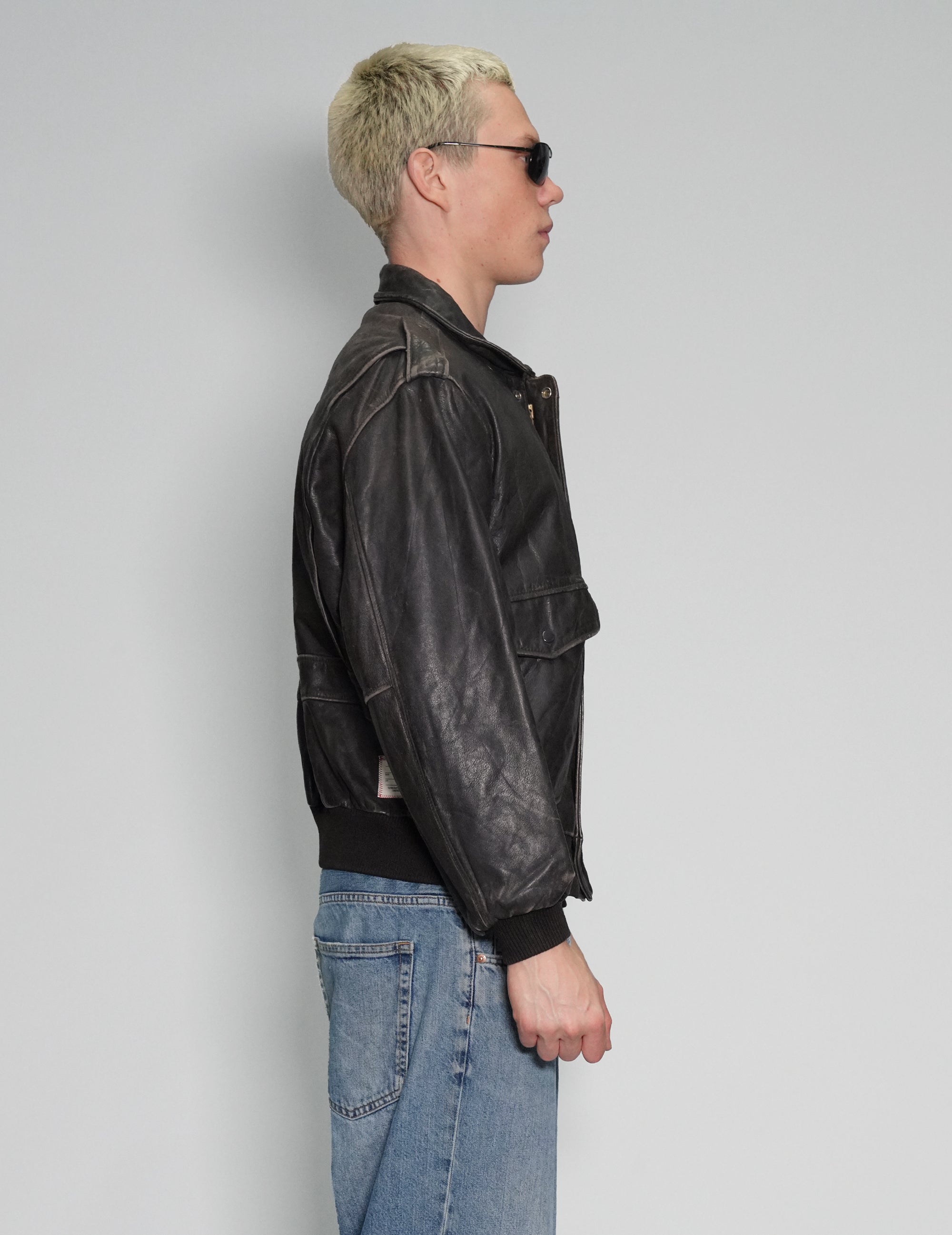 Vintage USAF-pattern bomber jacket, based on the A2 Bomber, created in WW2 for US Army Air Force pilots flying missions over Germany.