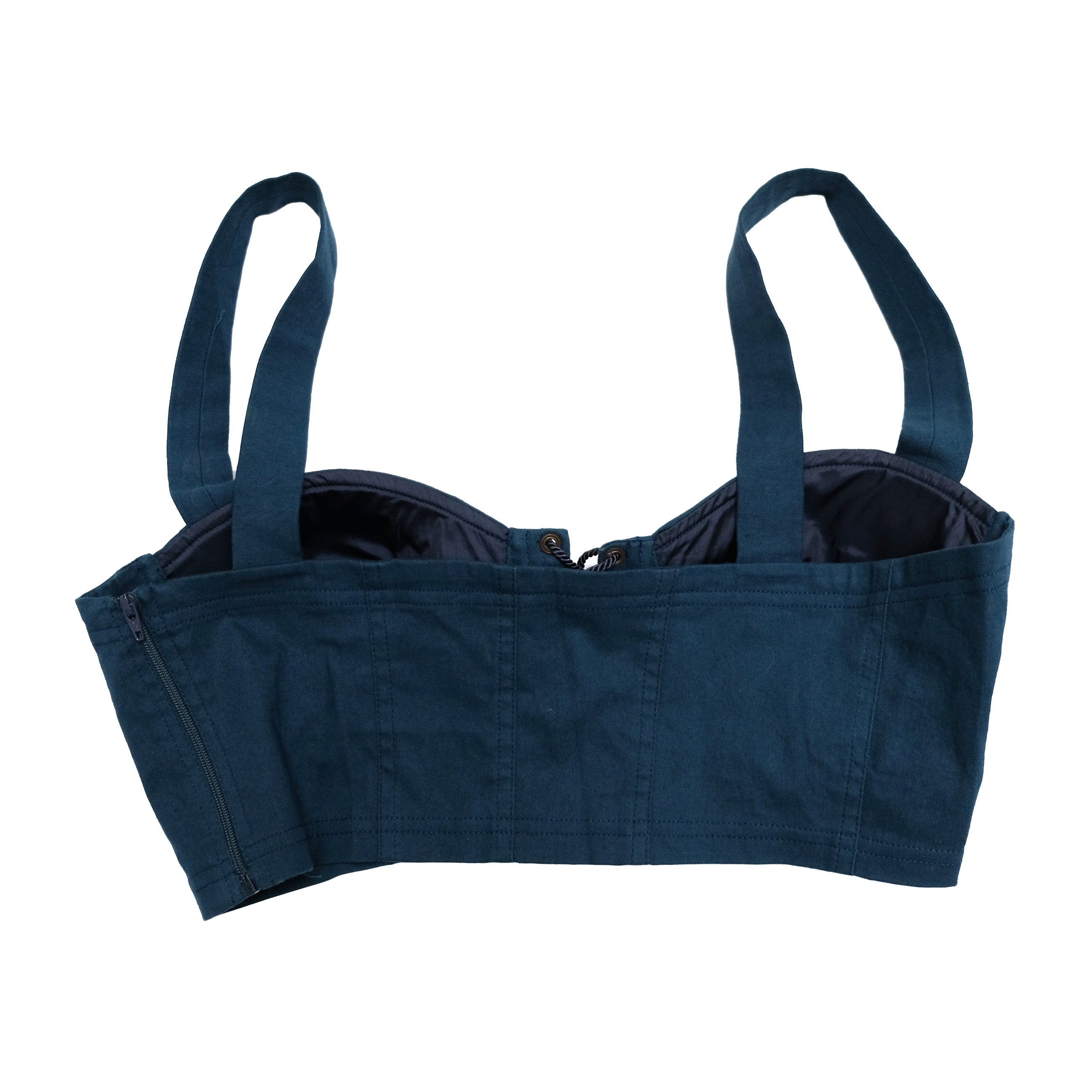 A super cute 1990s vintage cropped bustier sun top by Ozbek, in navy cotton.