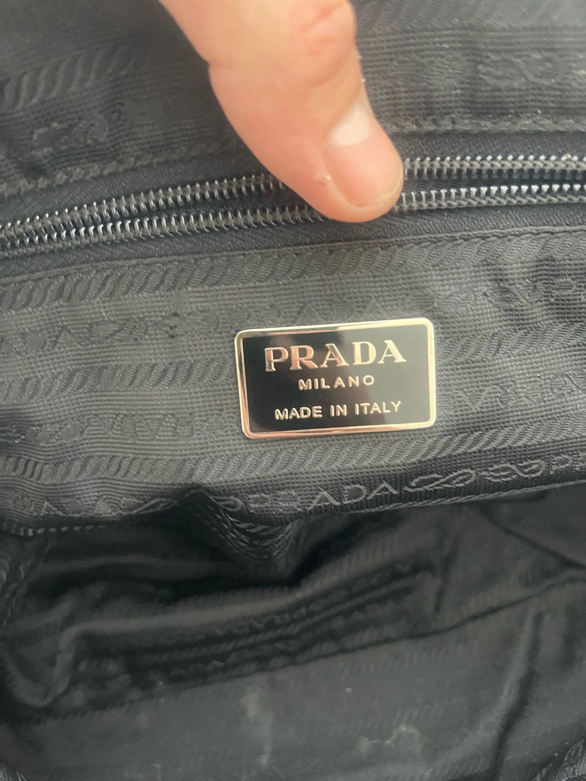 Hardware: Polished silver-tone accents with Prada’s iconic enamel triangle logo plaque