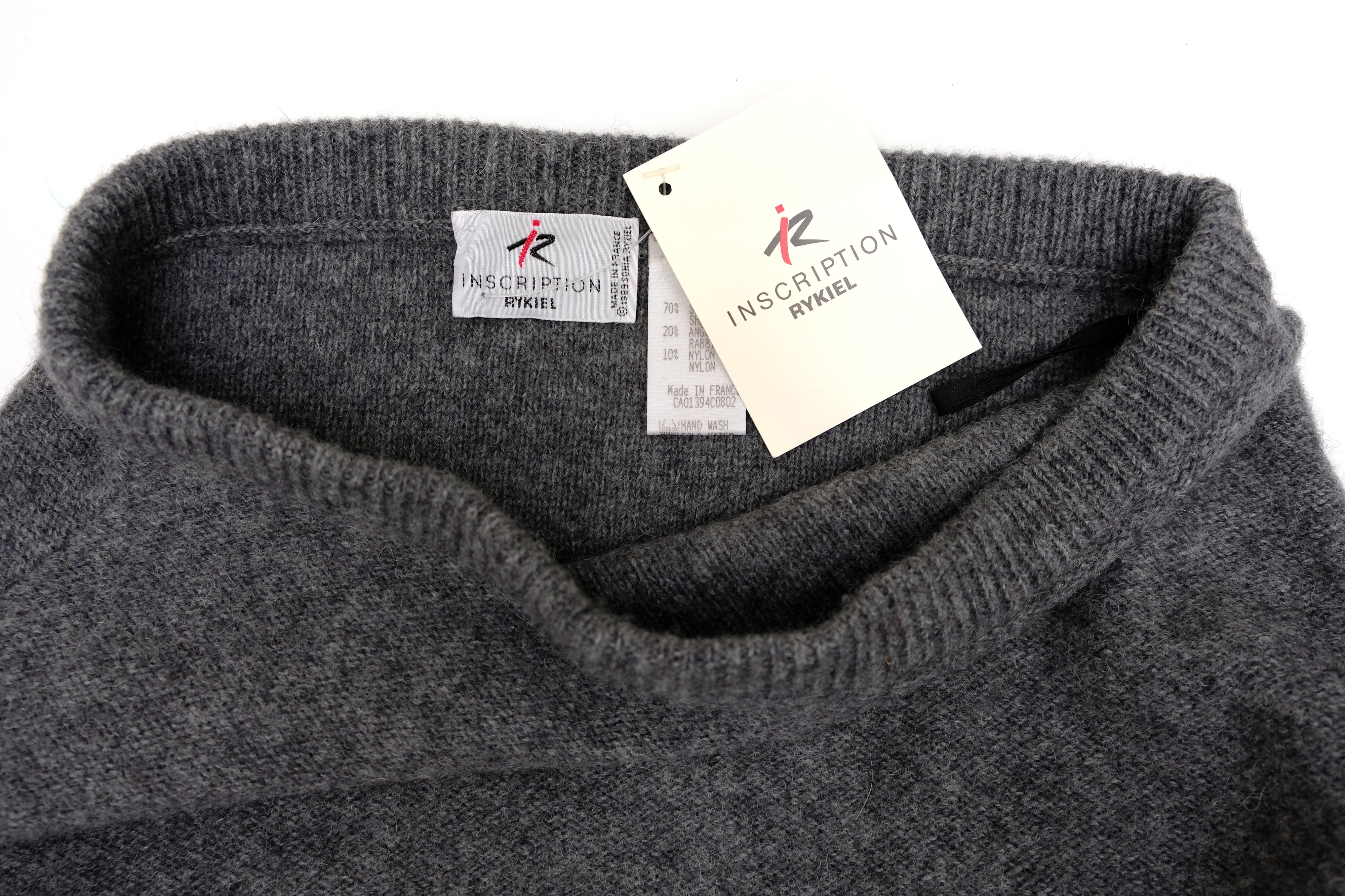 A wonderful and rare 1990s vintage knitted 2-piece outfit by Sonia Rykiel's Inscription label, in pale and slate grey wool and Angora mix.