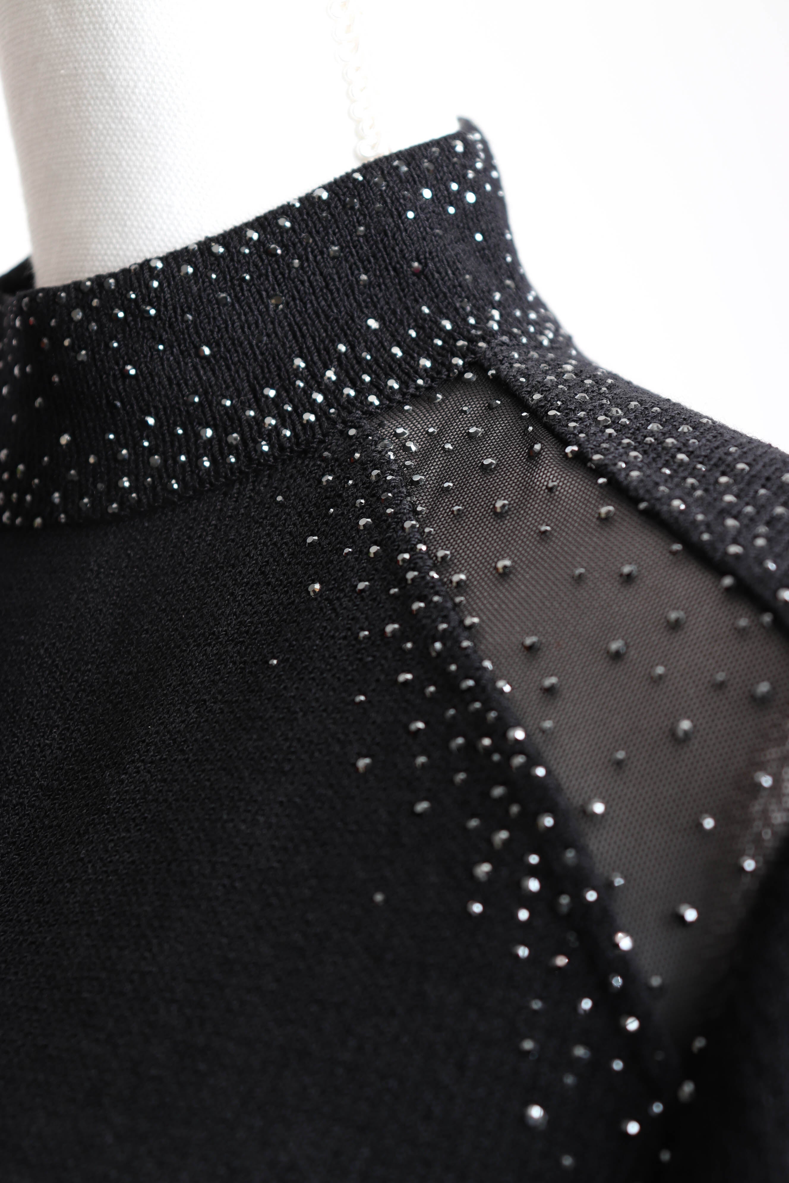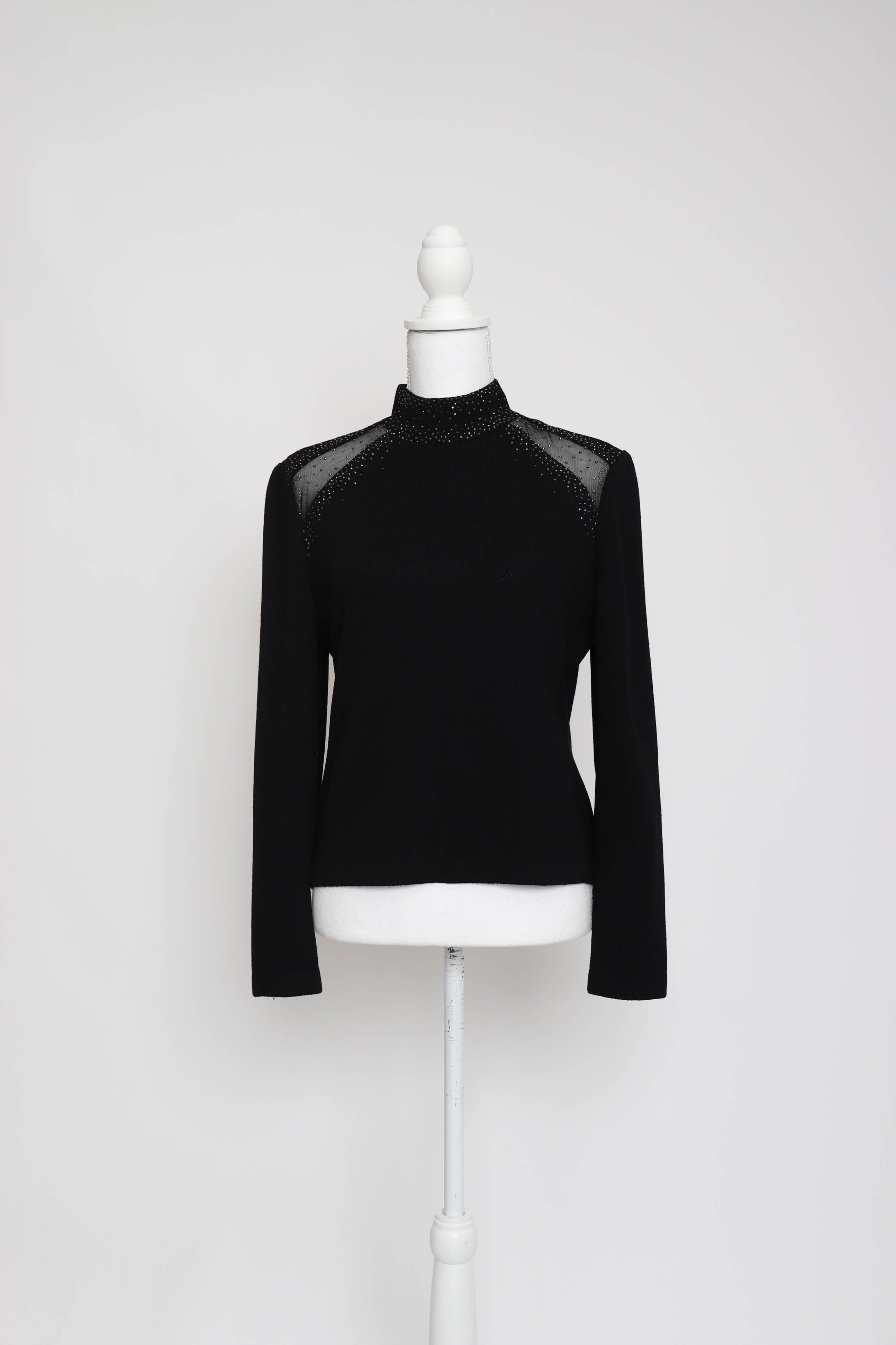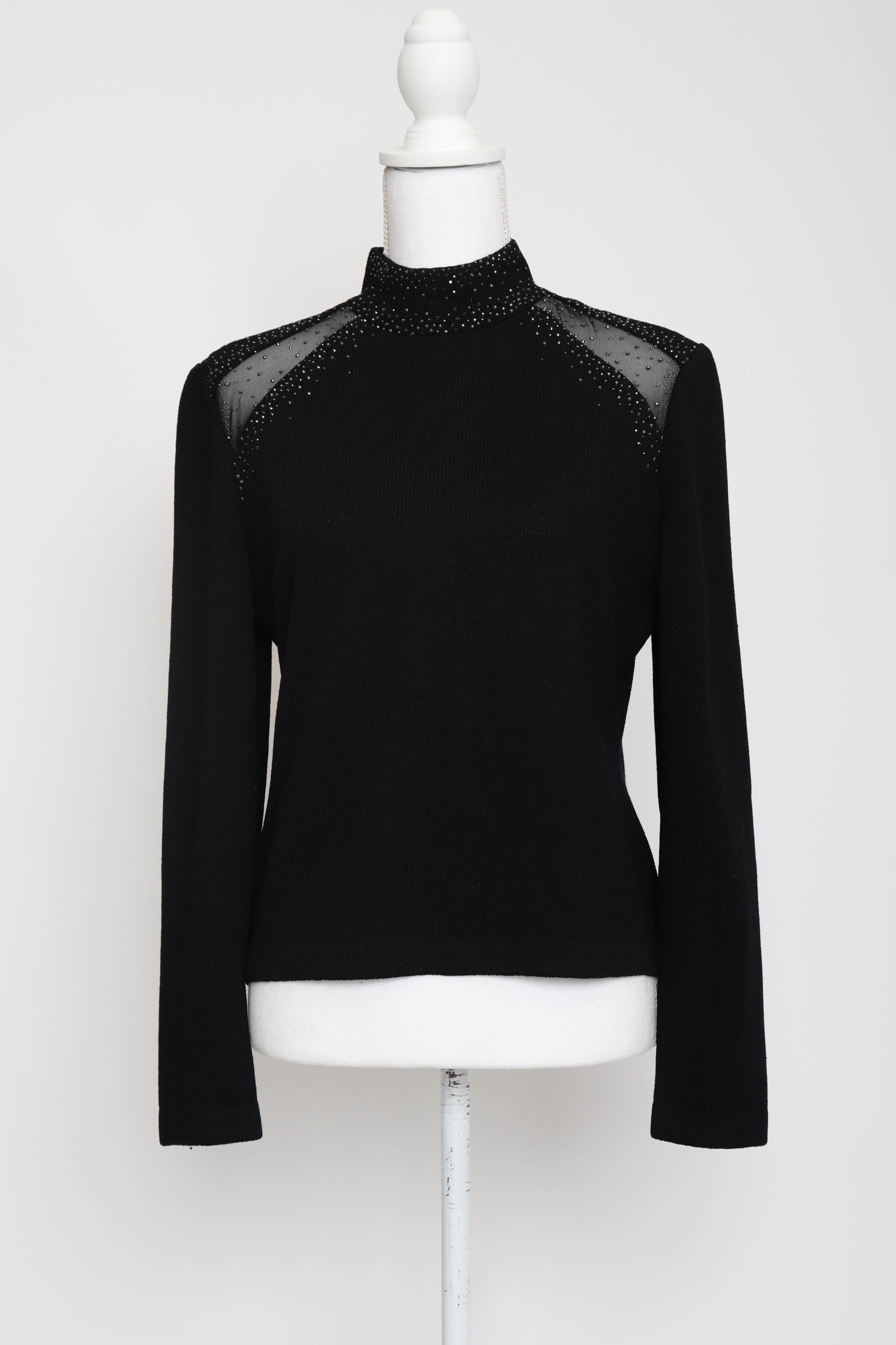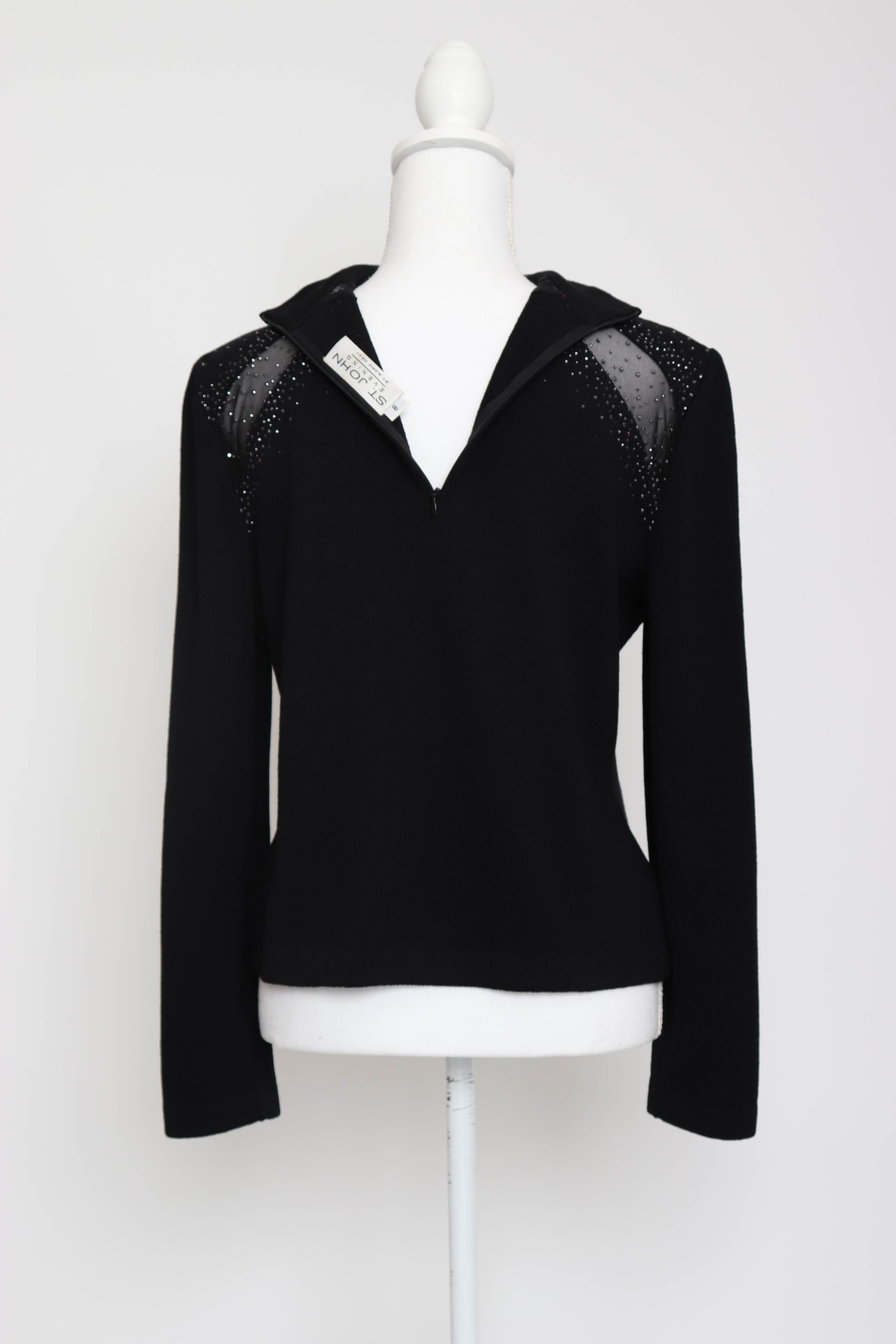 2000's Black Mock-Neck Sweater with Swarovski Crystal Detail by St. John Evening by Marie Gray.