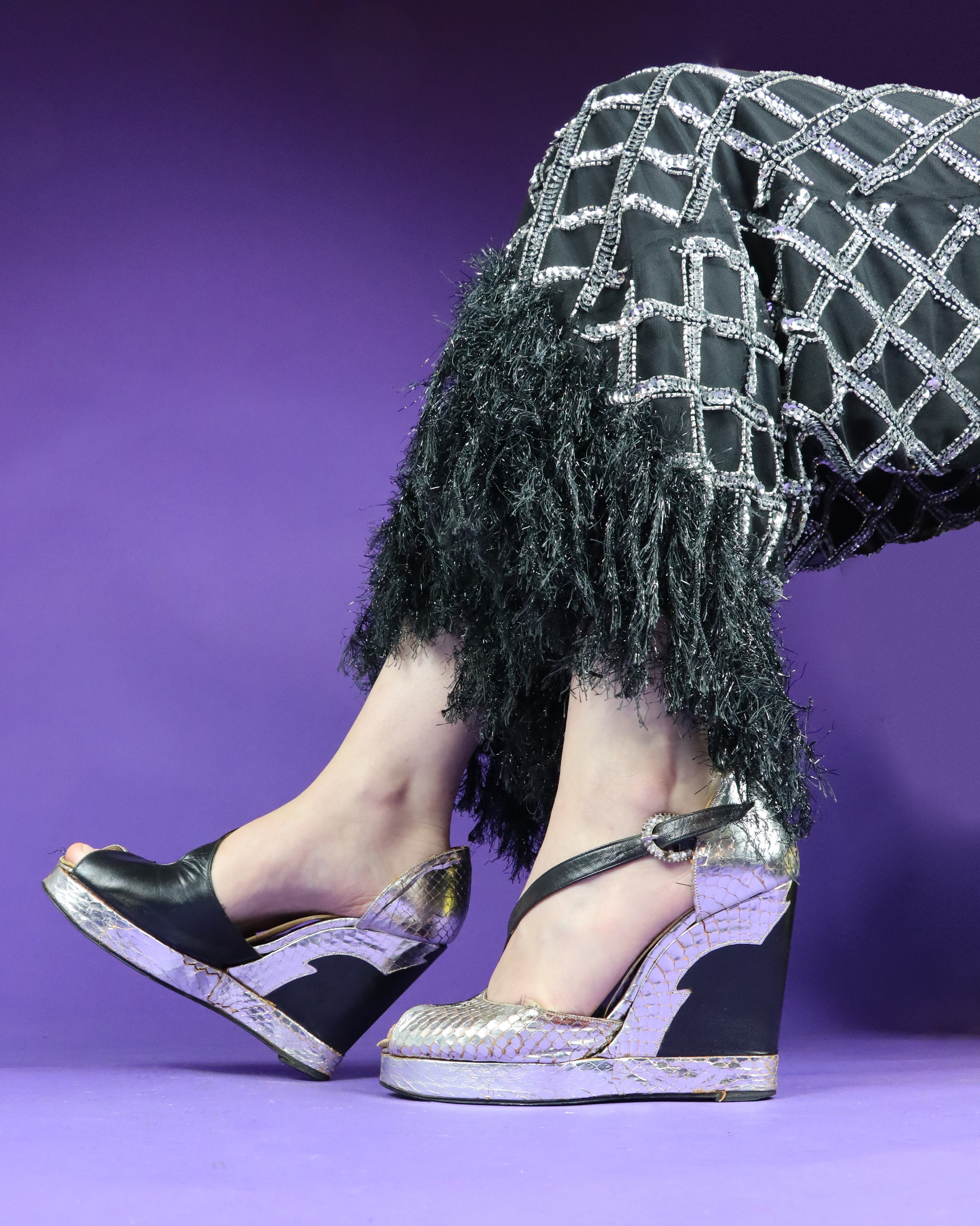 Terry was a pioneer and an artist- he made fantastical shoes for the stars of the 70s and beyond. These platform heels are so beautifully made and are the perfect party piece. A collector's piece!