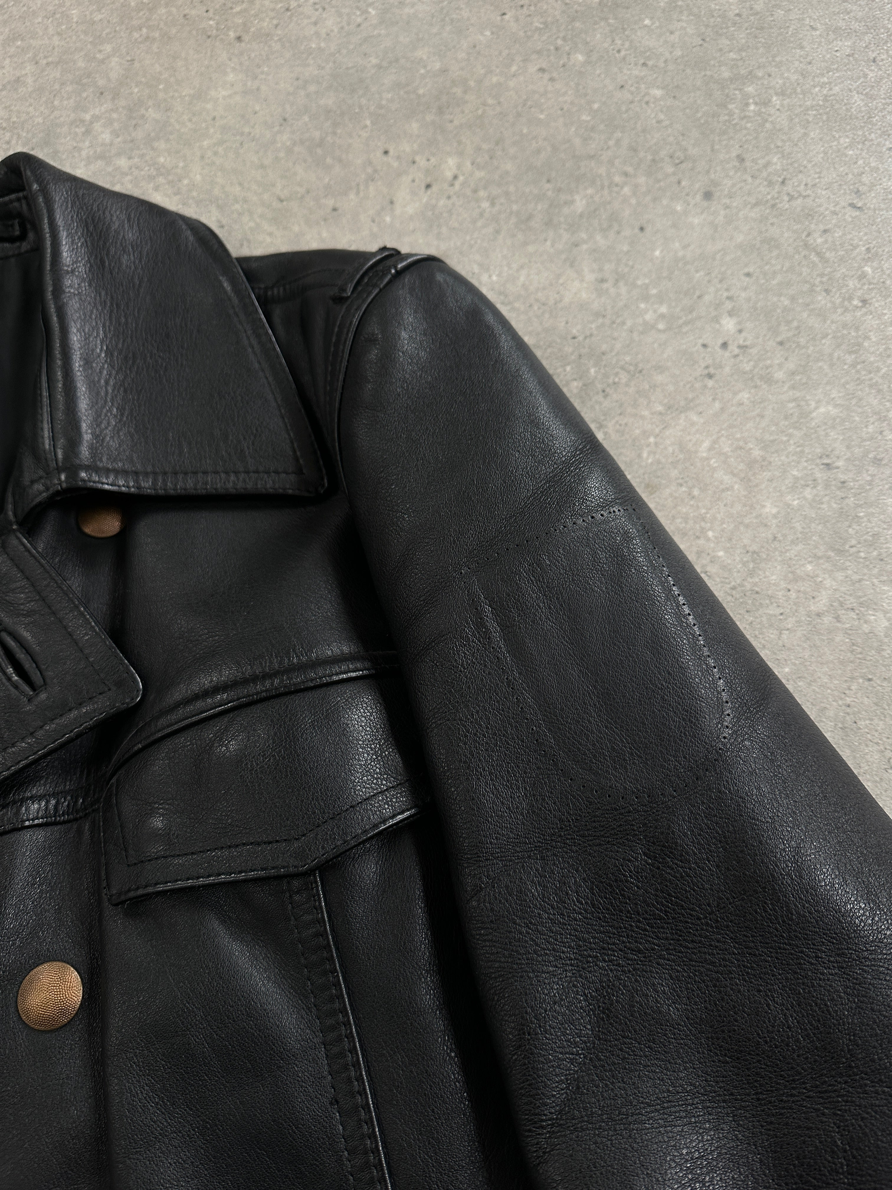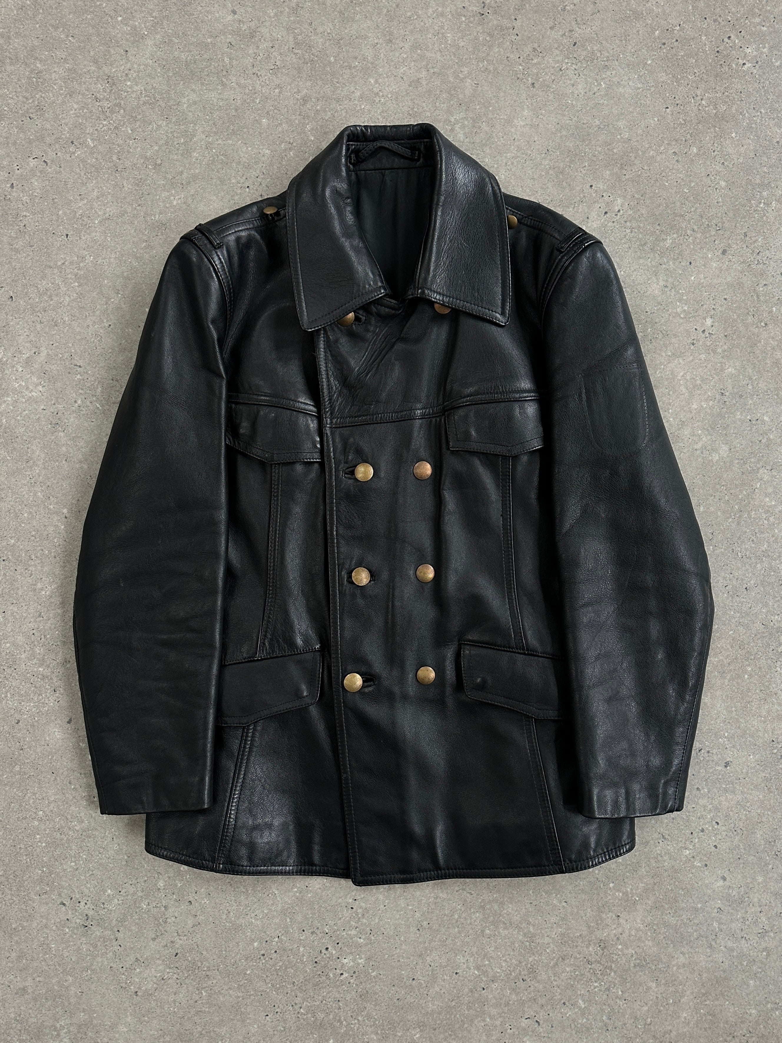 Vintage 1980s Double Breasted Military Leather Jacket - M/L