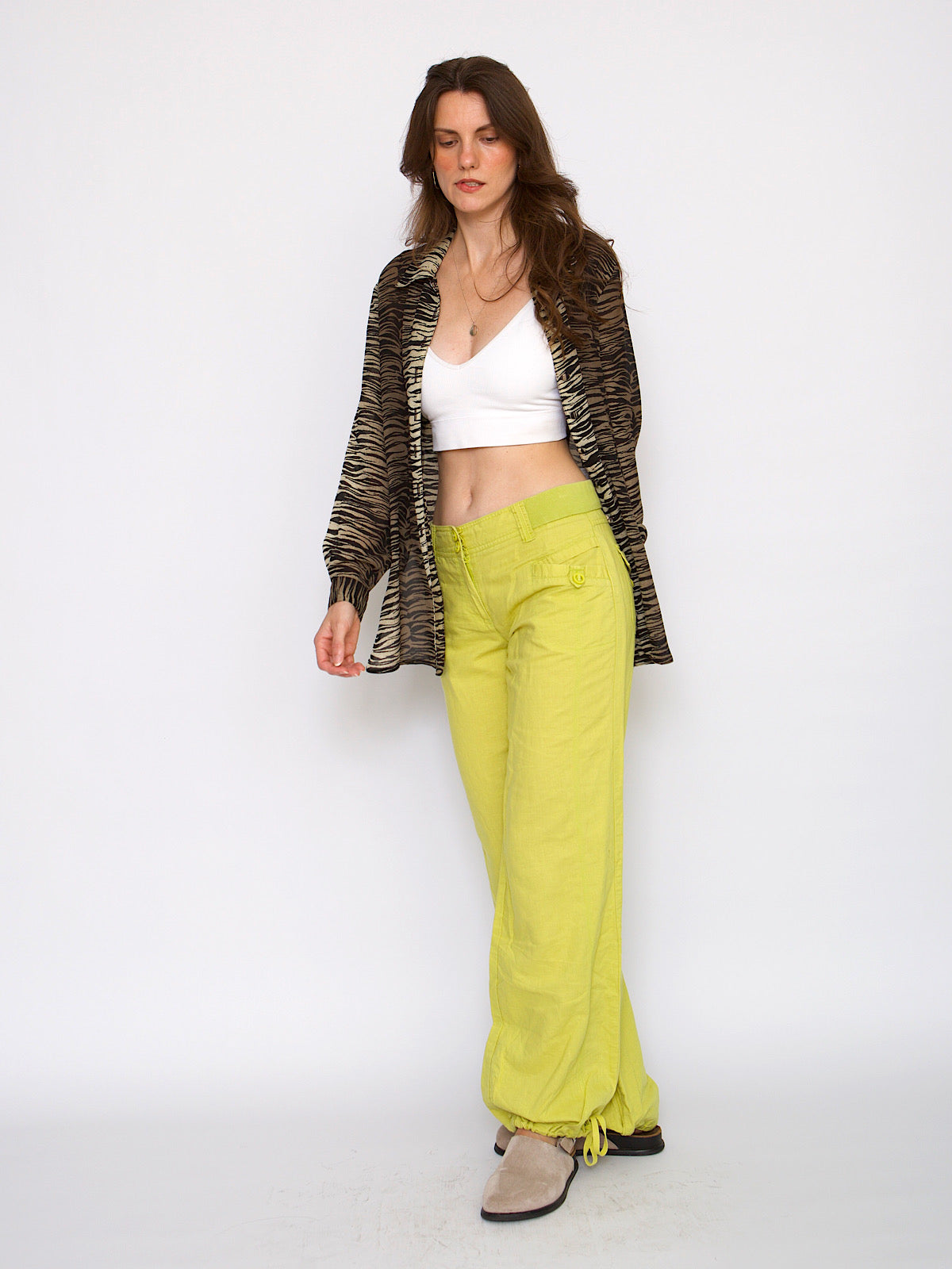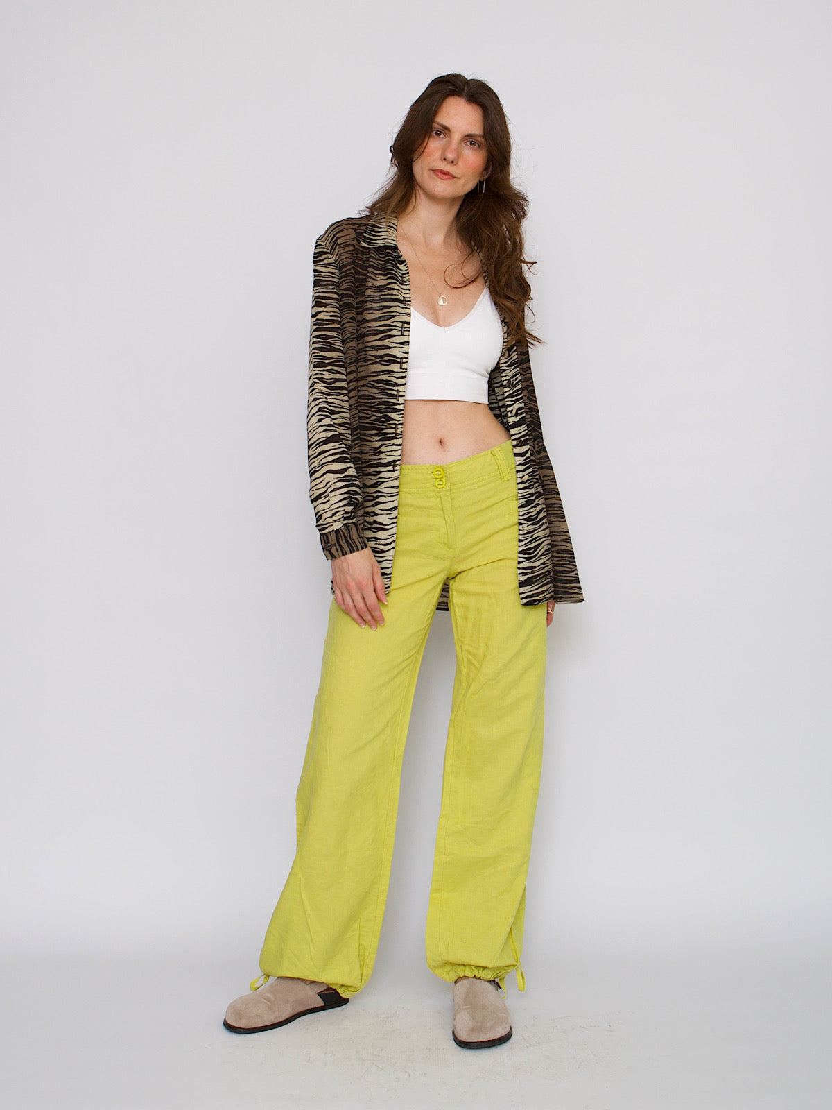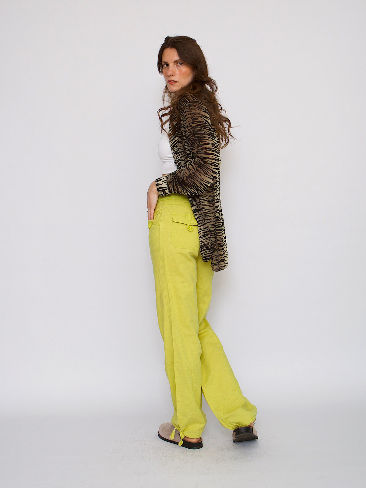 Y2K summer mid rise trousers in lime green, linen & cotton blend.